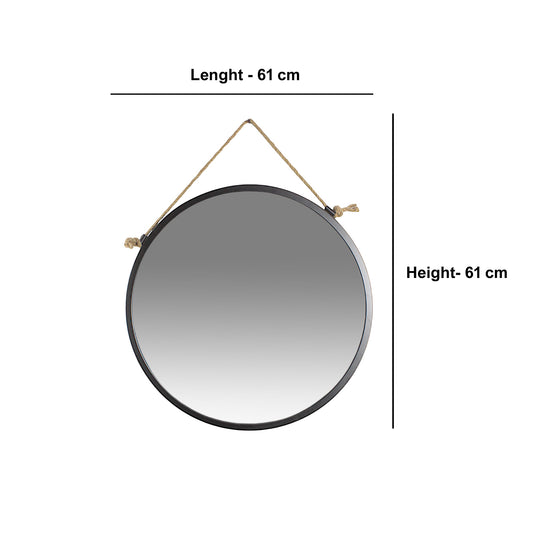 24 Inch Round Black Wall Mirror with Rope Hanger – Rustic Metal Frame Mirror for Bathroom, Bedroom, Entryway & Living Room