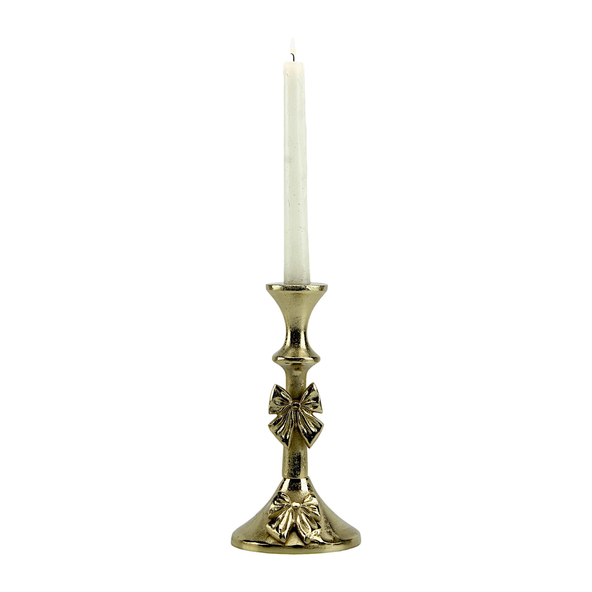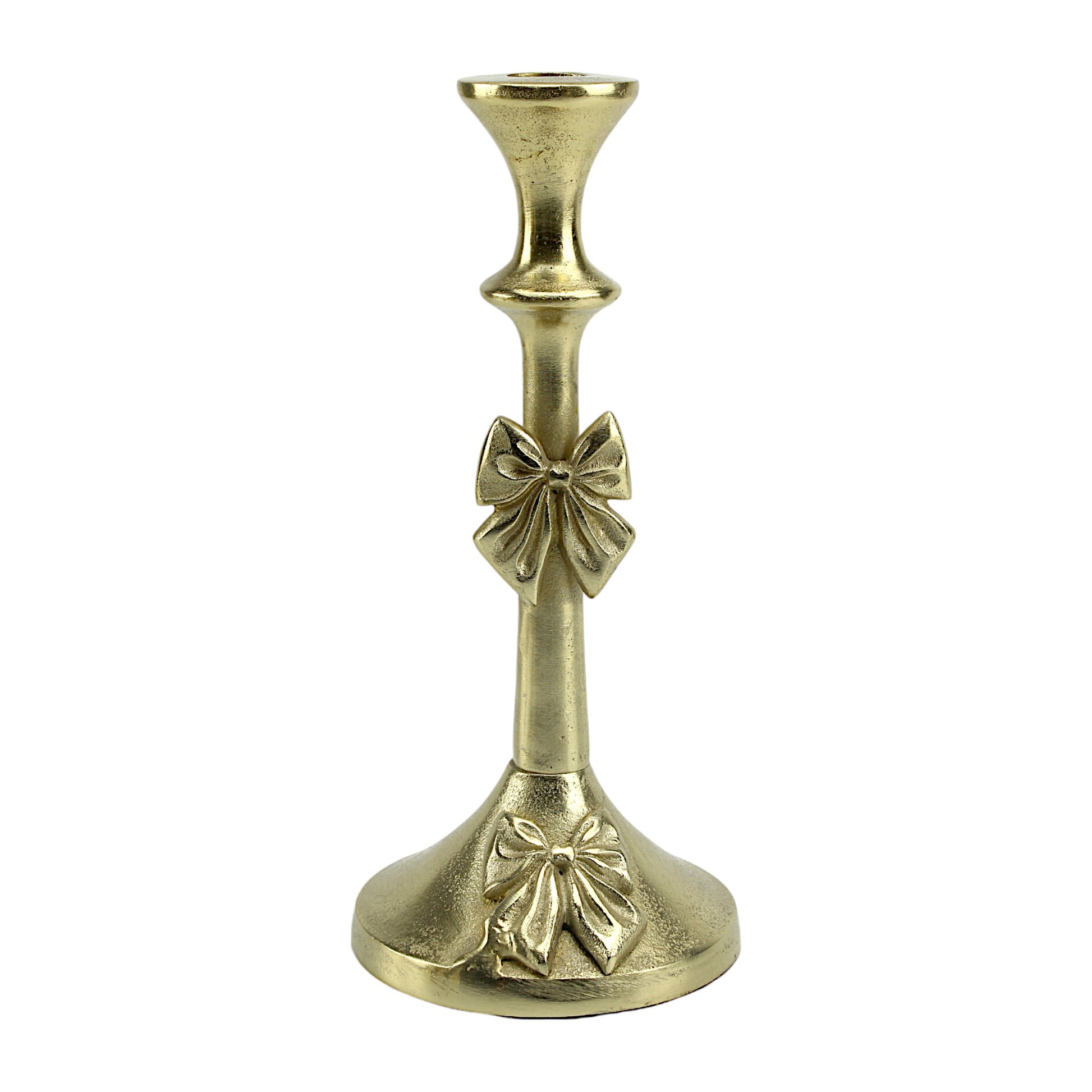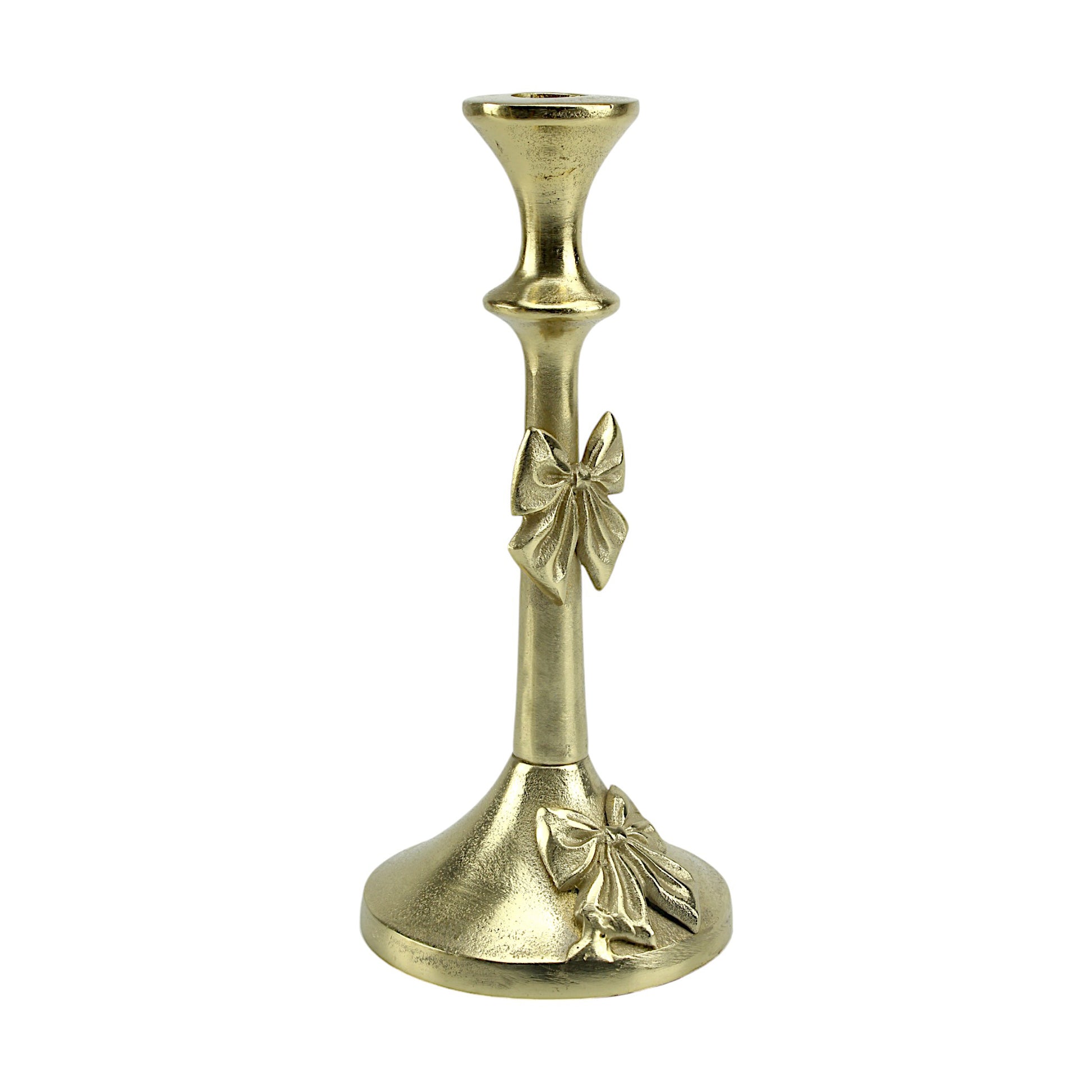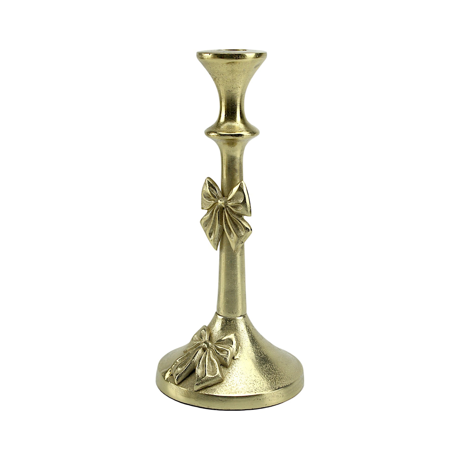 Artisan Golden Aluminum Medium Bow-Decorated Candle Holder | Elegant Home Accent