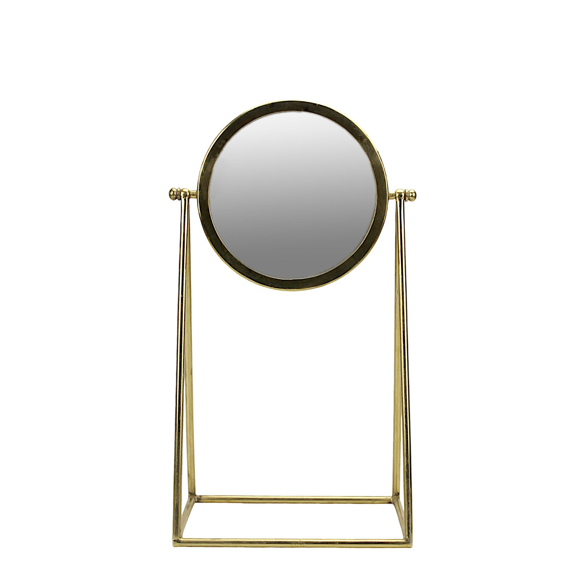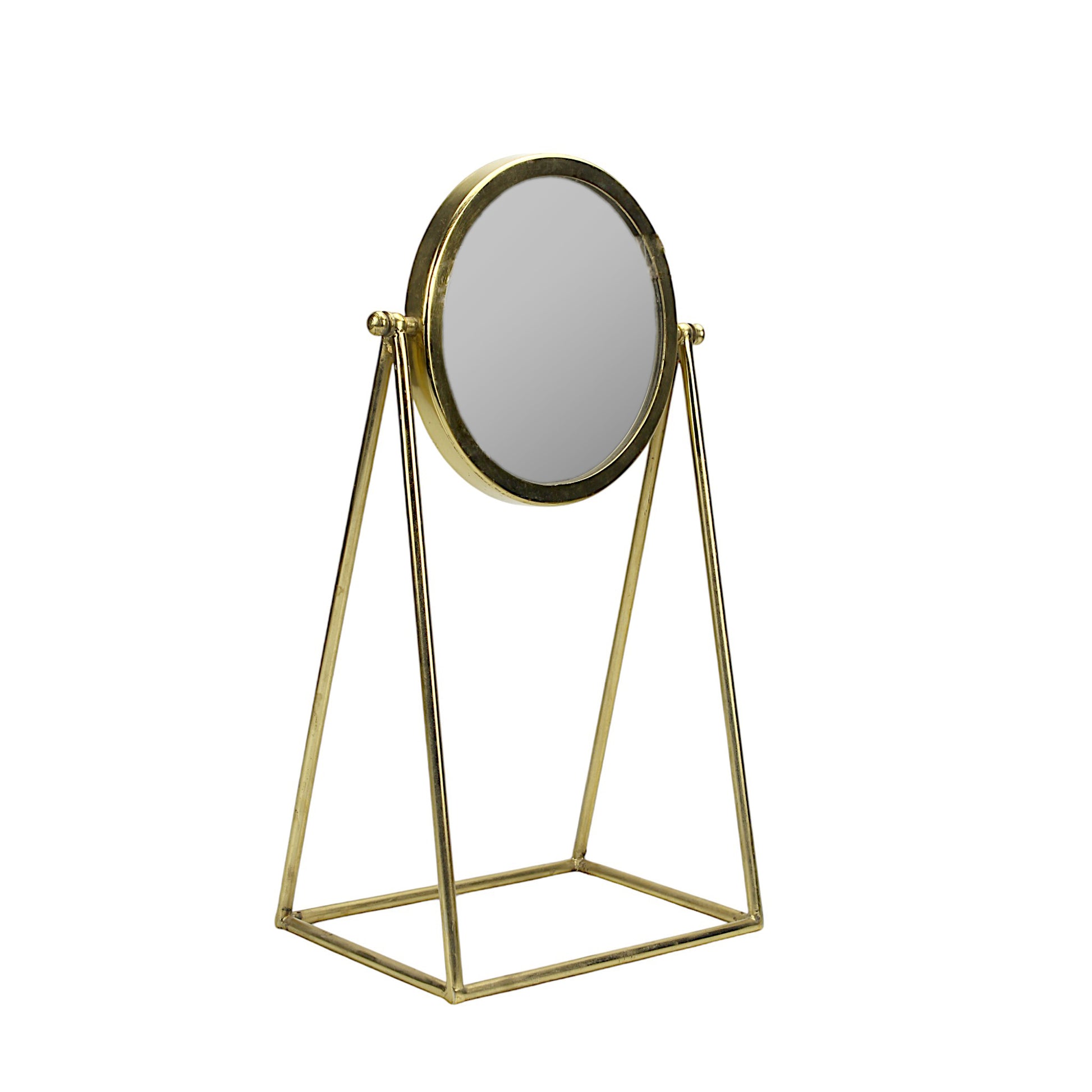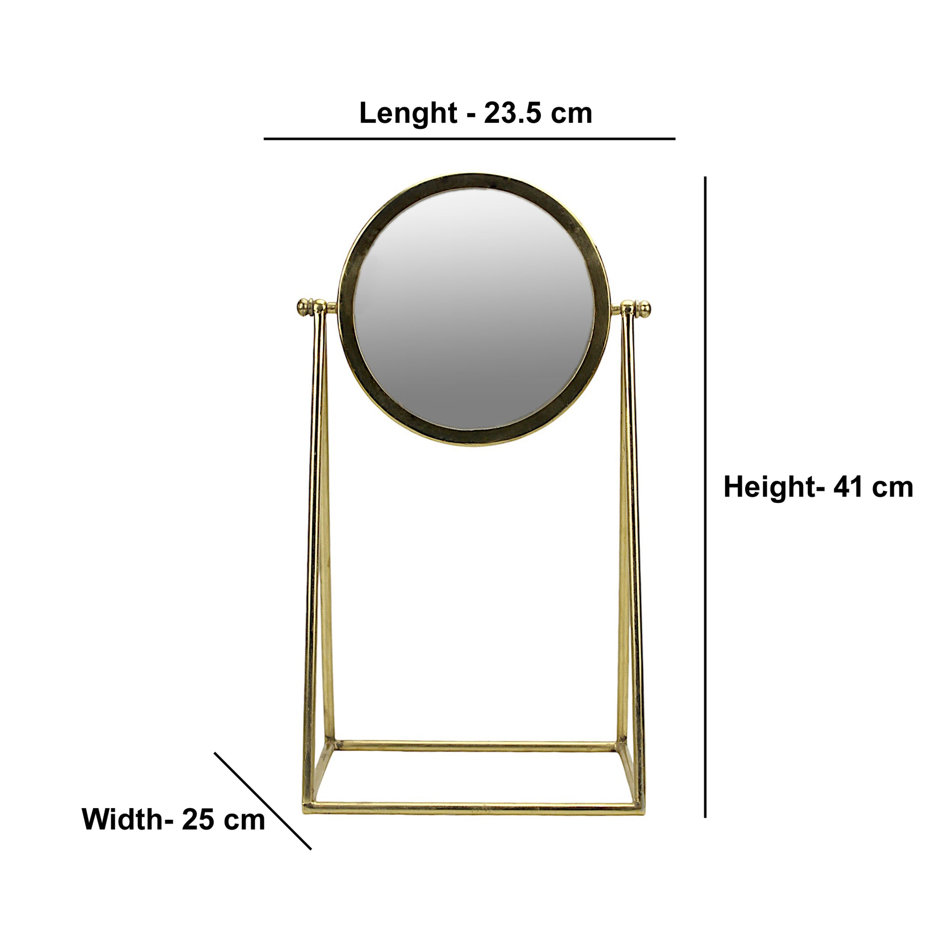 A Round Rotatable Vanity Mirror in Metal Frame with Metal Stand