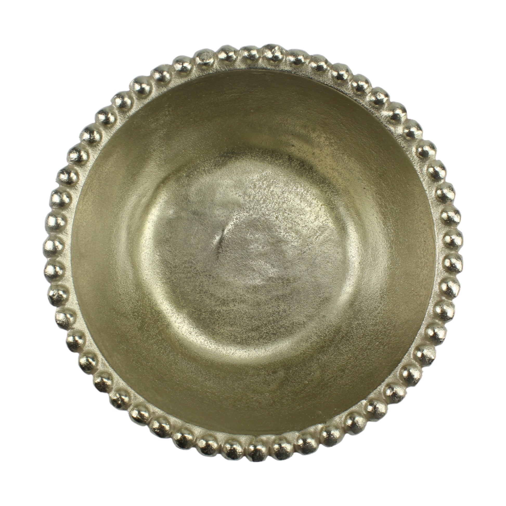 - Intricate Beaded Border: Our Aluminum Beaded Border Decorative Bowl features a meticulously crafted beaded border, adding texture and visual interest to its design and elevating its aesthetic appeal.