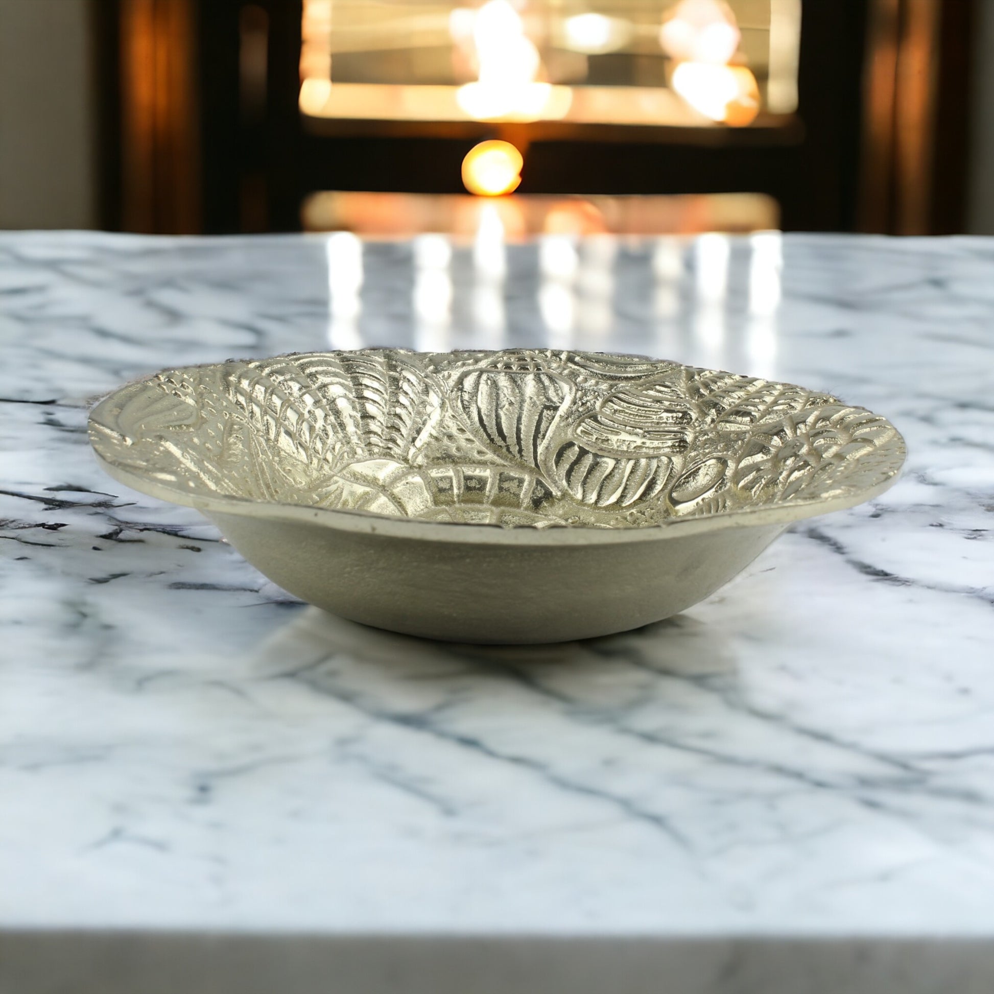 Antique Gold Handcrafted Aluminium Sea Creatures Decorative Bowl: Artisanal Elegance for Your Home