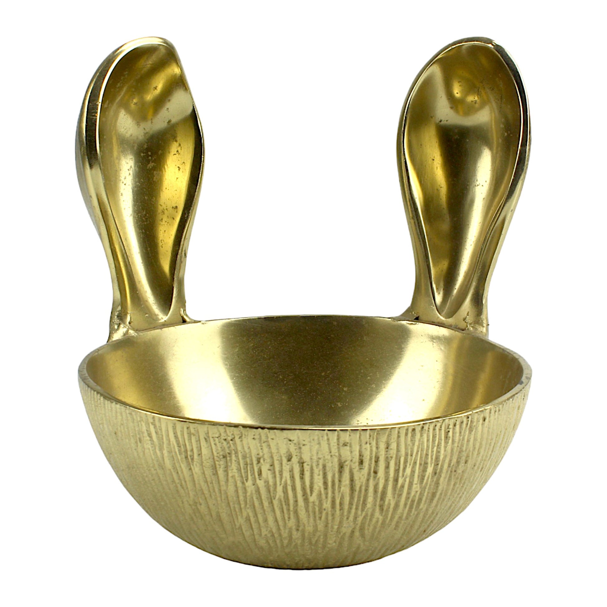 Artisan-Crafted Golden Aluminum Bowl with Delightful Bunny Ears Handle - Add Whimsical Sophistication to Your Space!