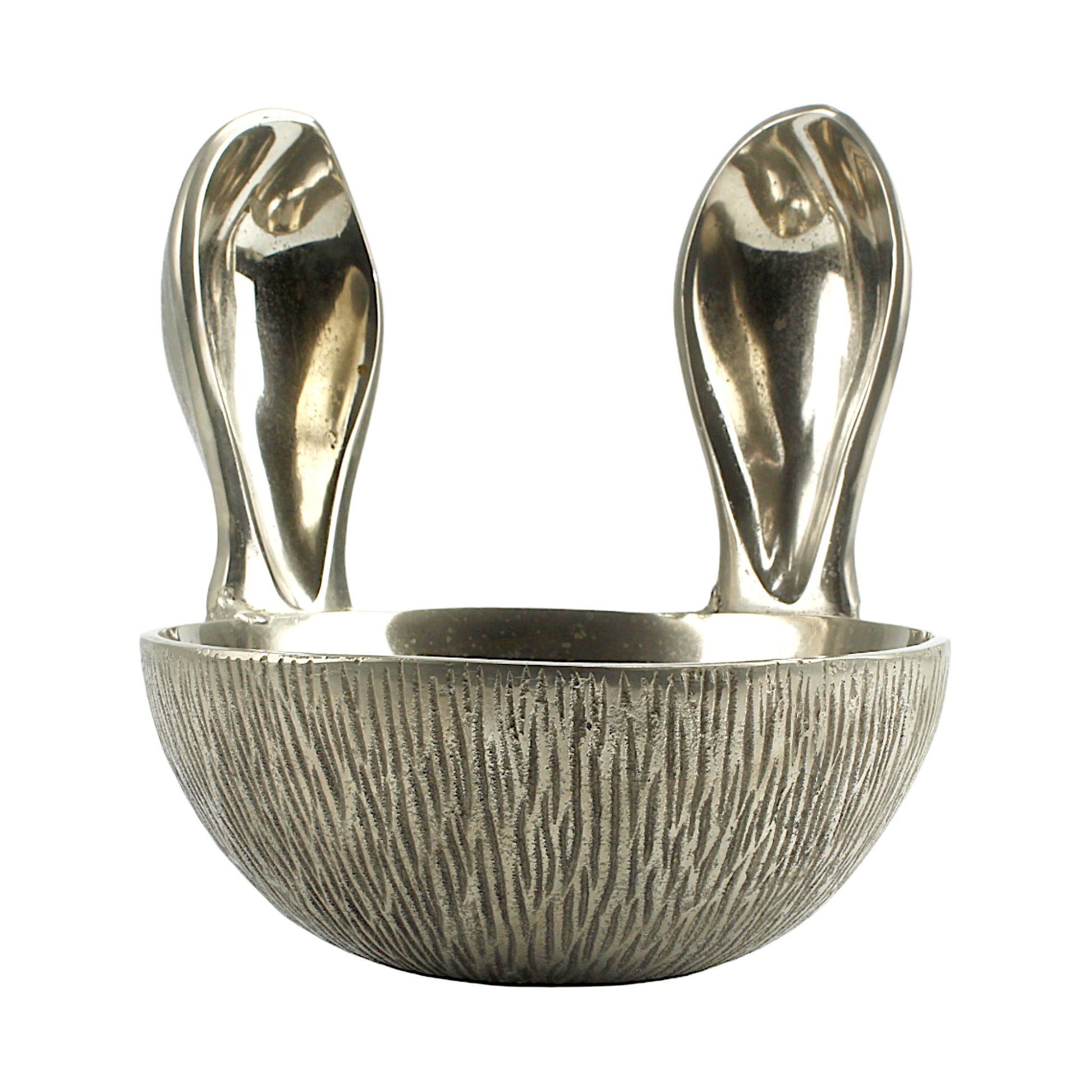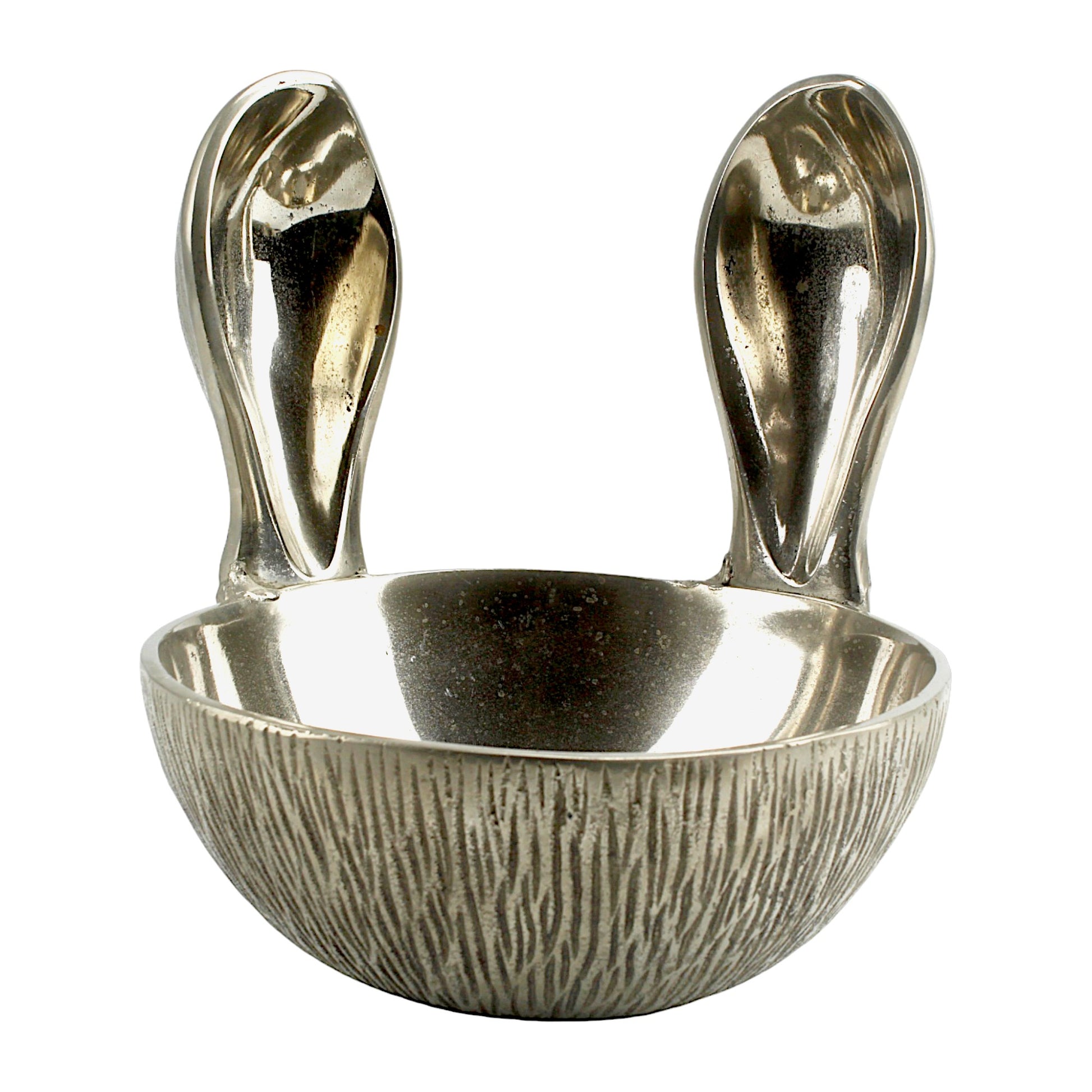 Introducing our Artisan-Crafted Silver Aluminum Bowl with Delightful Bunny Ears Handle, a charming addition to elevate your home decor with its unique blend of craftsmanship and whimsy. Meticulously crafted by skilled artisans, this bowl features a sleek silver aluminum construction and adorable bunny ears handle, bringing a touch of playful elegance to any space.