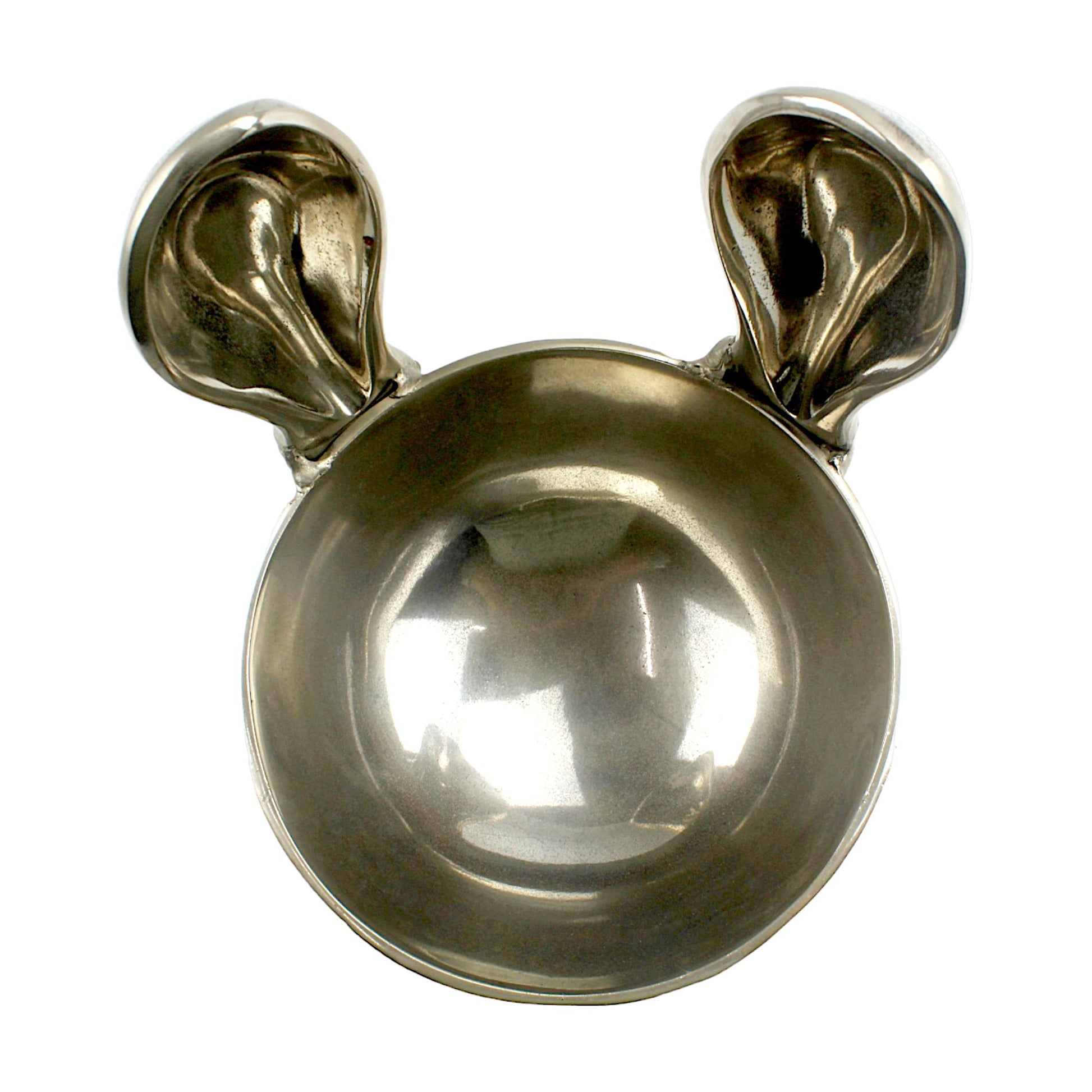 Artisan-Crafted Silver Aluminum Bowl with Delightful Bunny Ears Handle