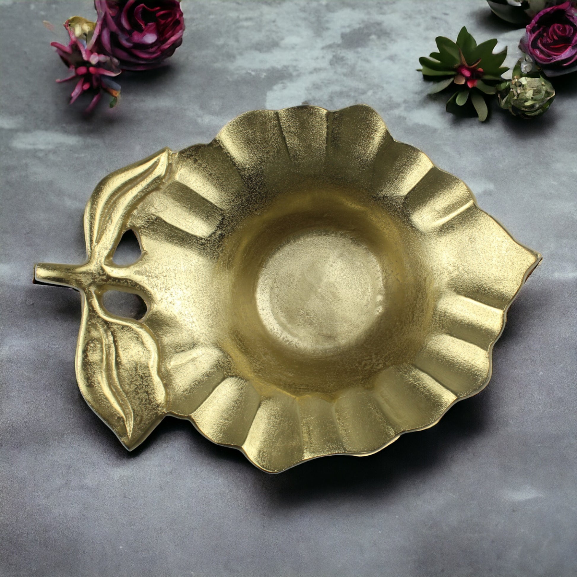 Artisan Handcrafted Golden Aluminum Leaf Bowl: Elegant Décor Accent