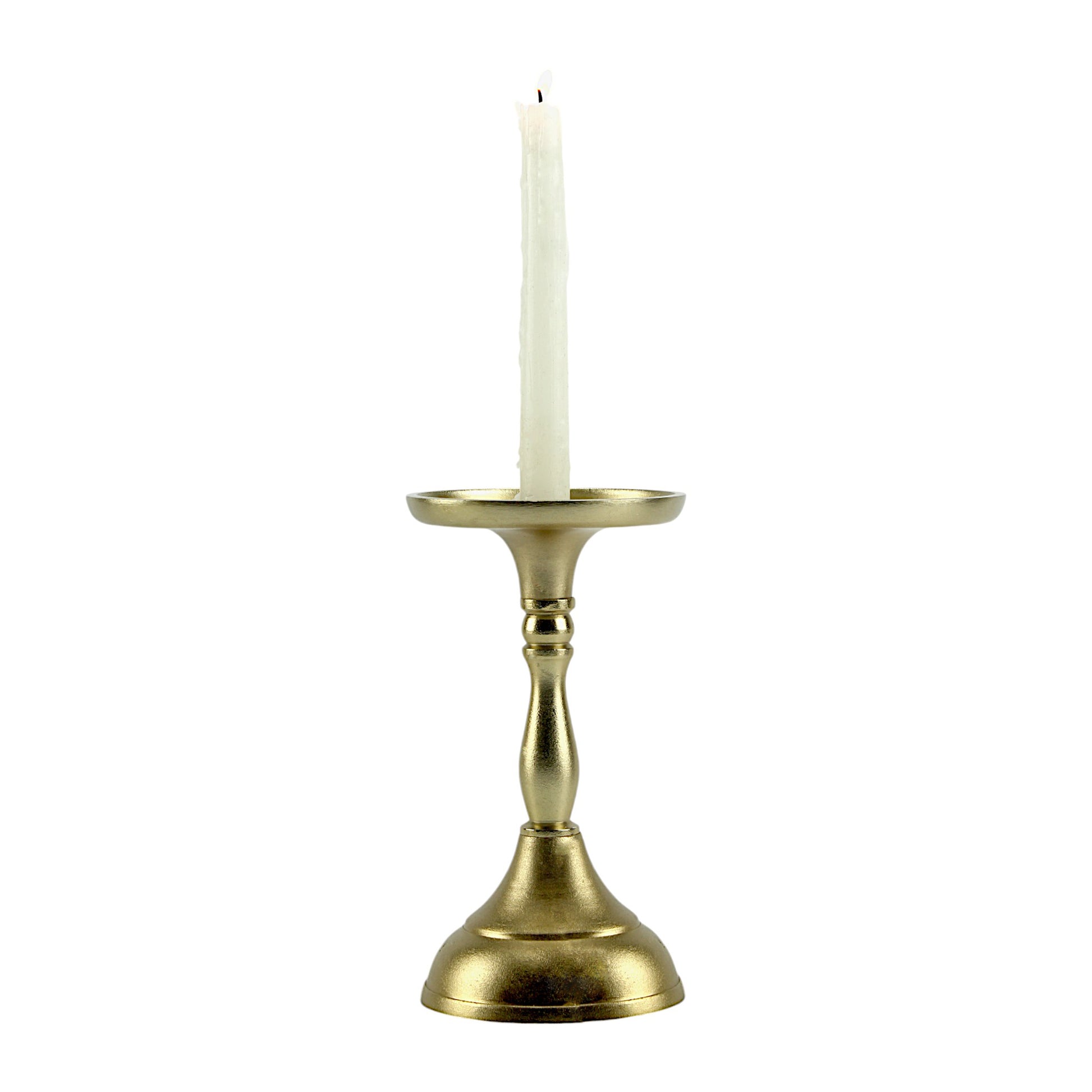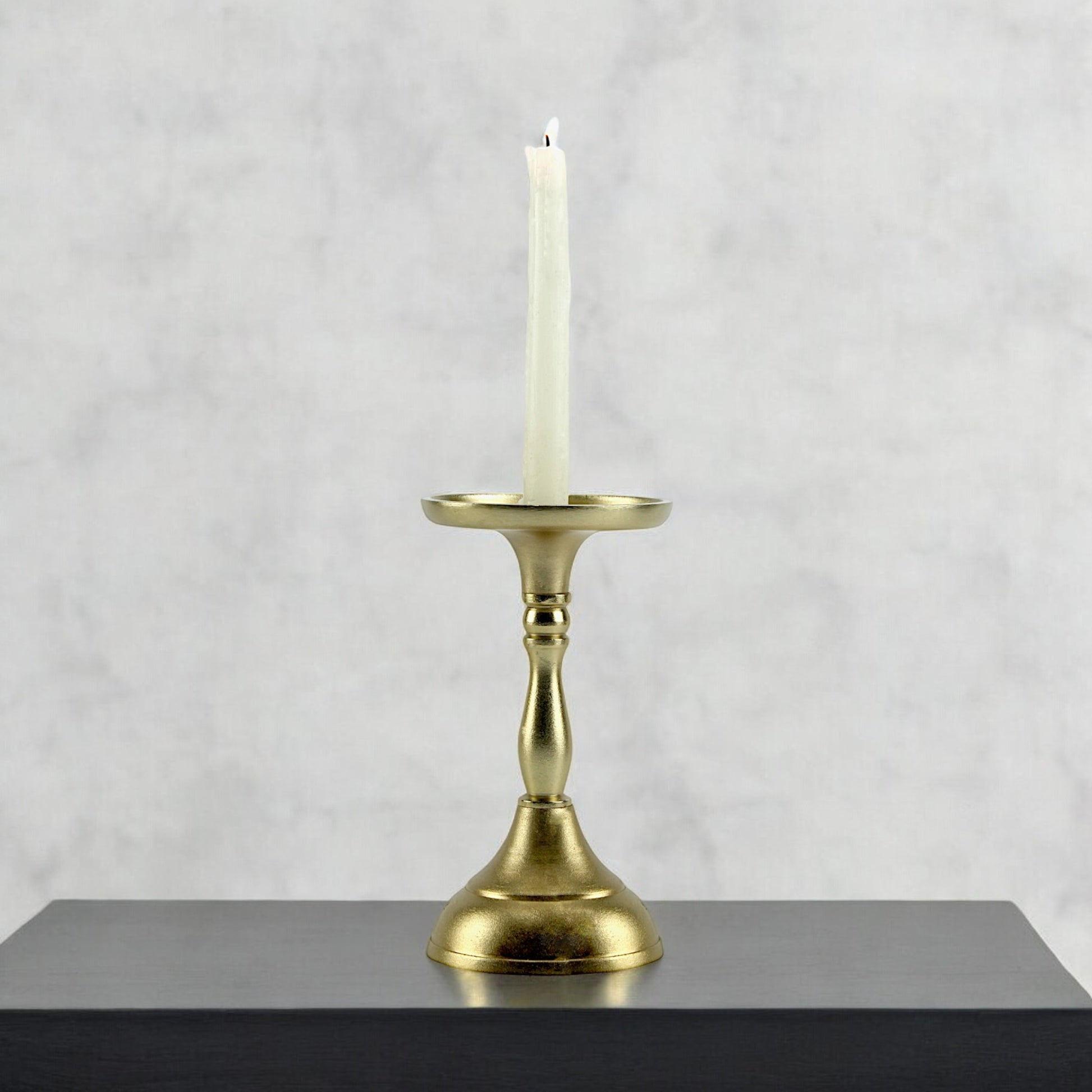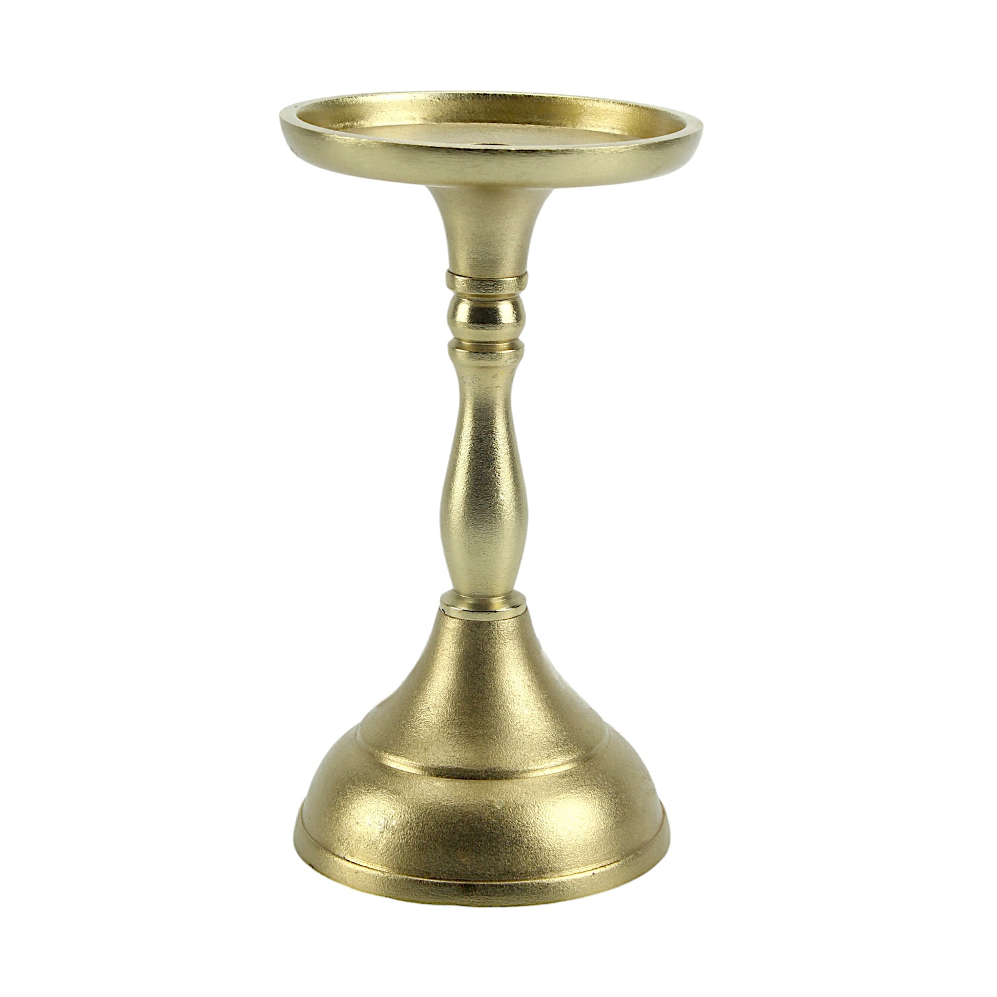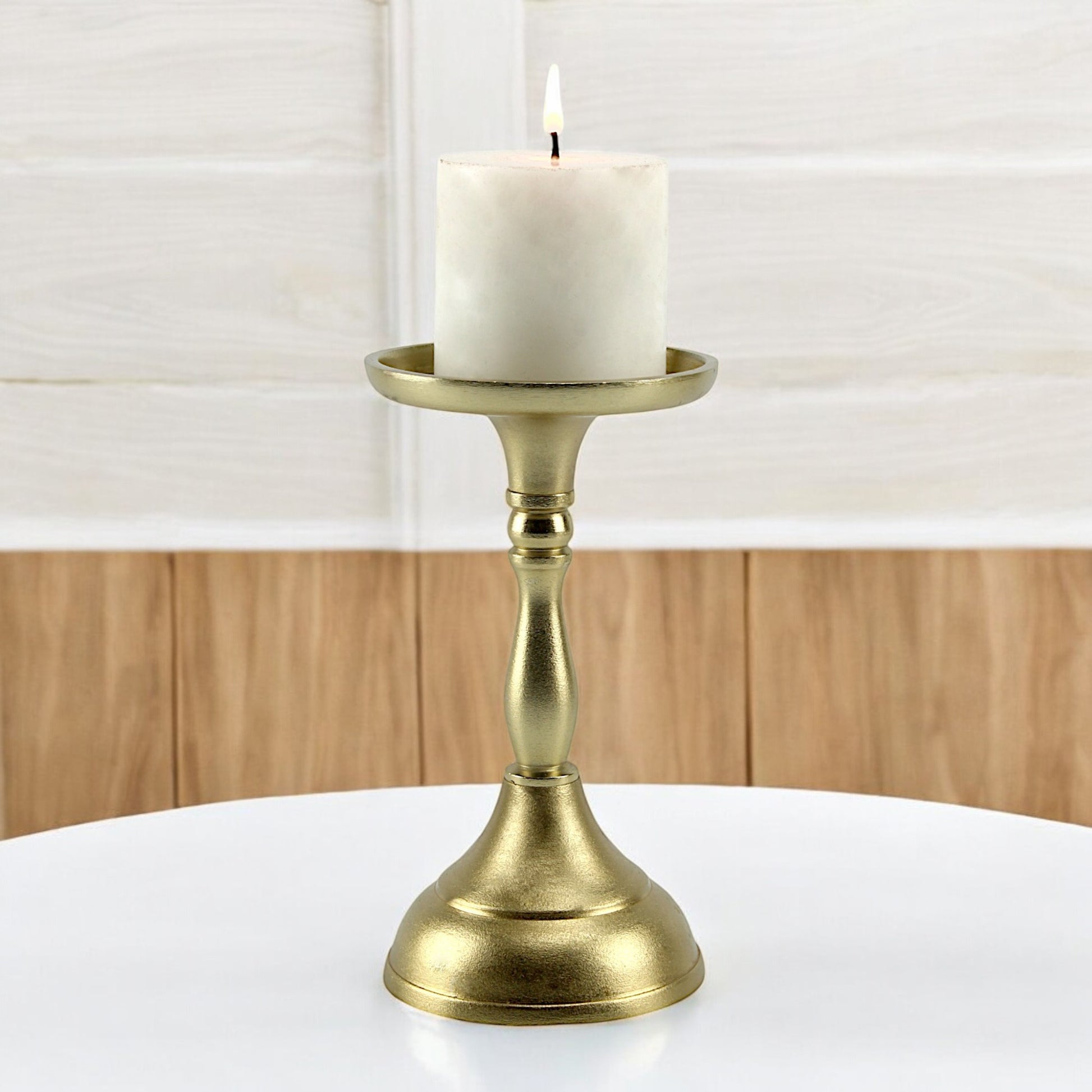 Luxe Golden Aluminum Large Pillar Candle Holder | Elegant Home Accent