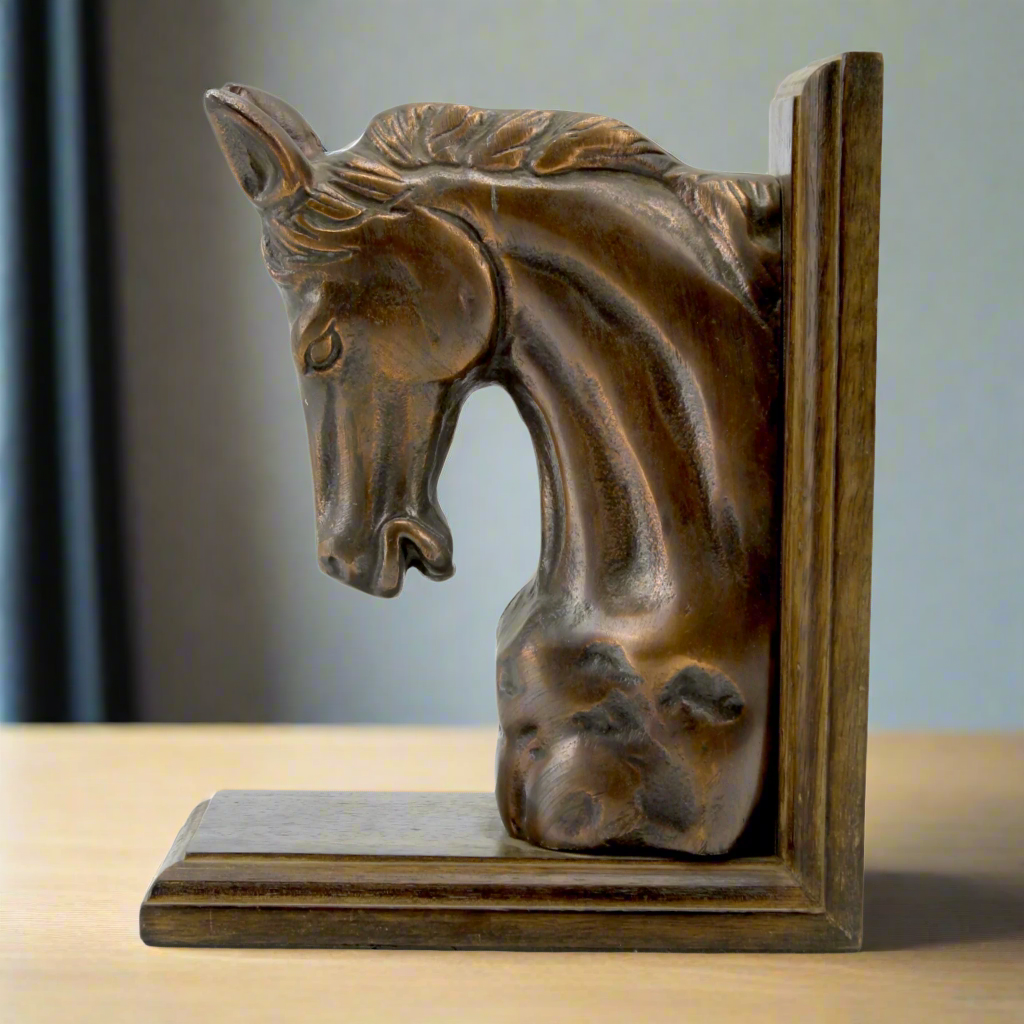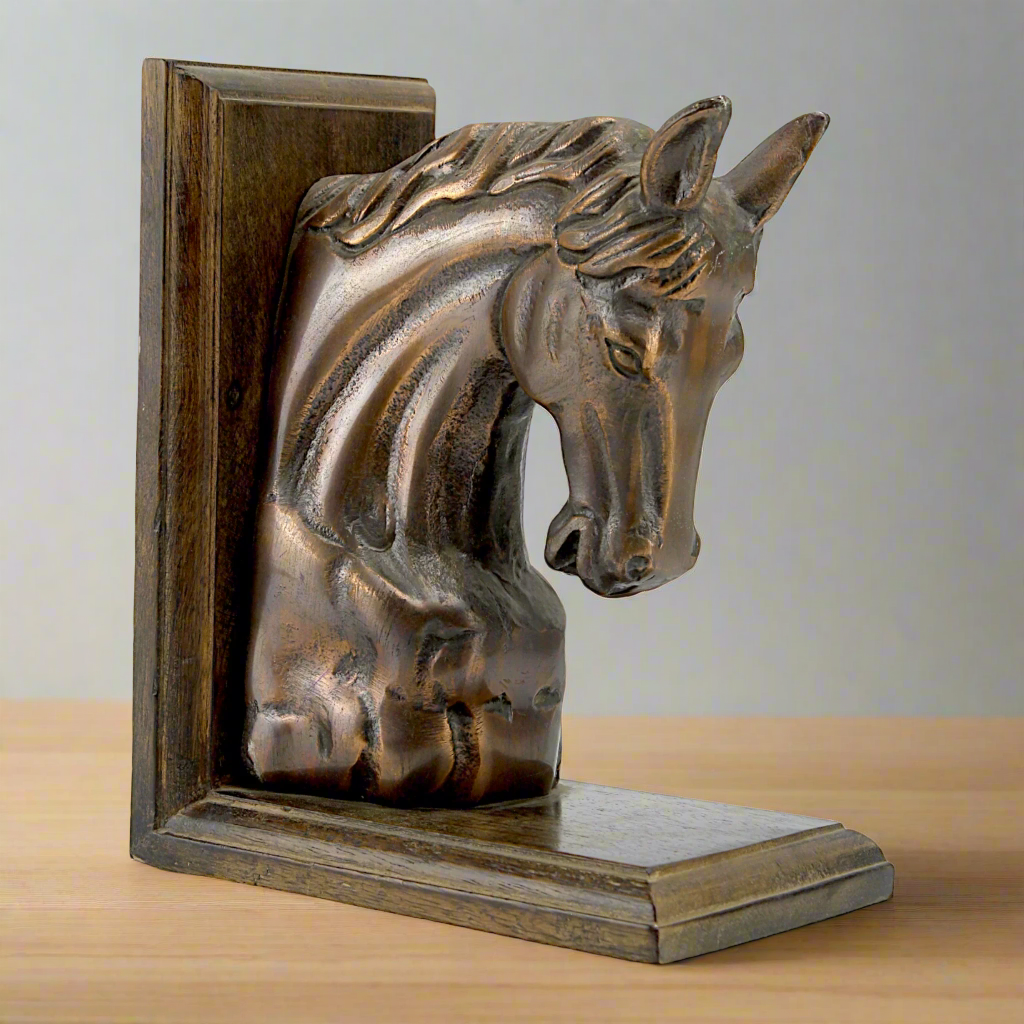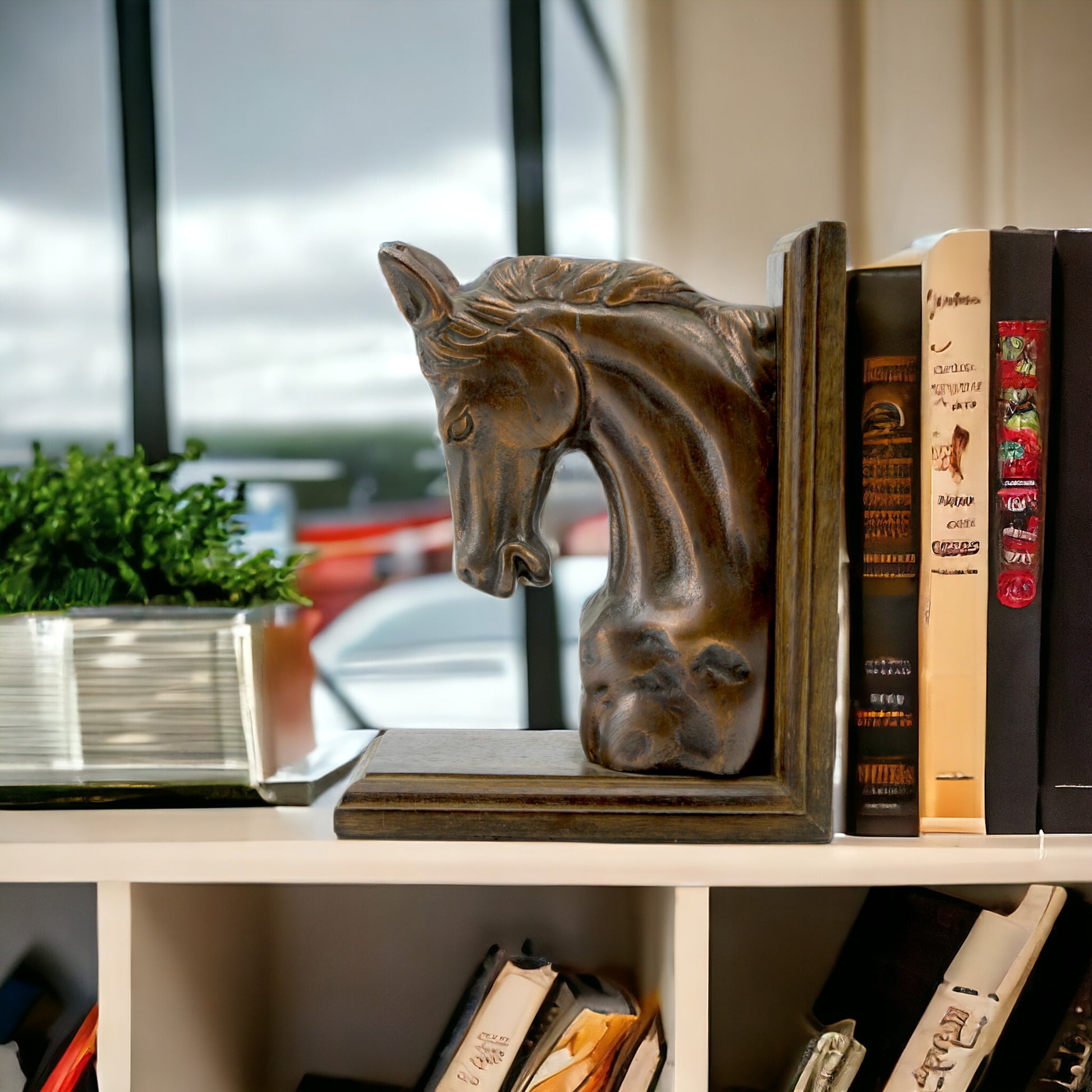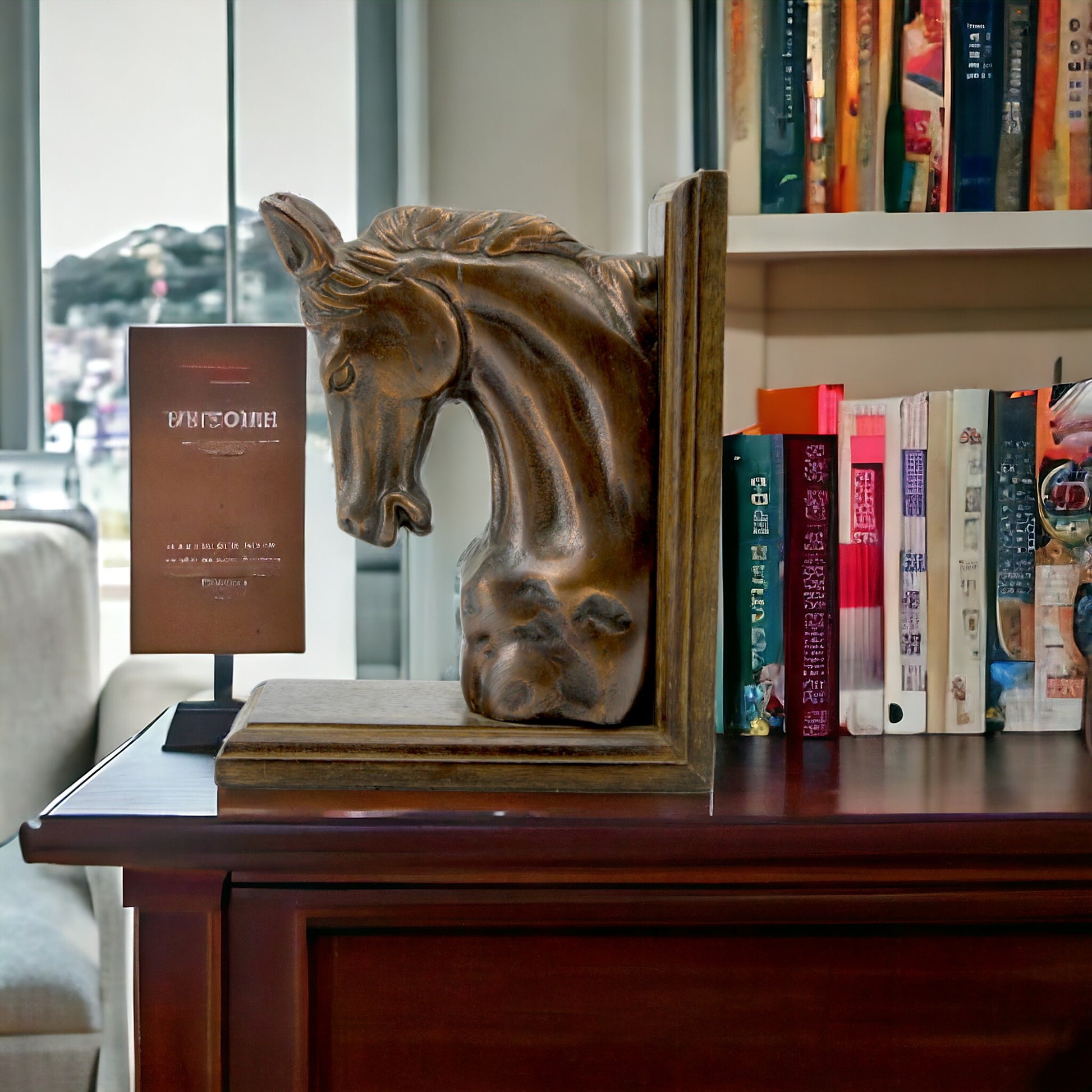 Bronze Elegance: Aluminium Horse Head Sculpture Bookend