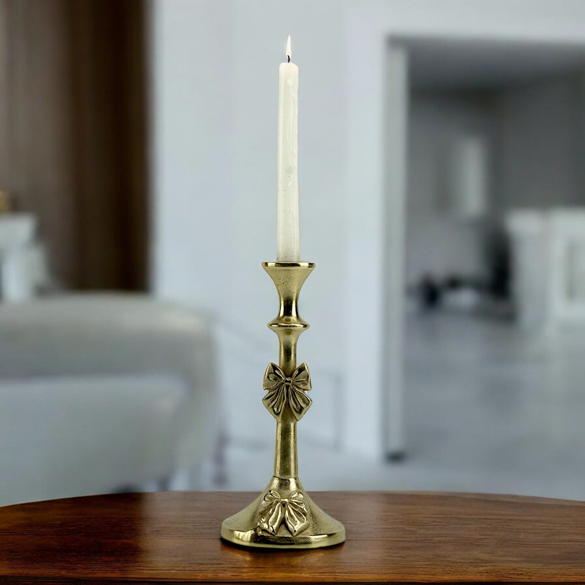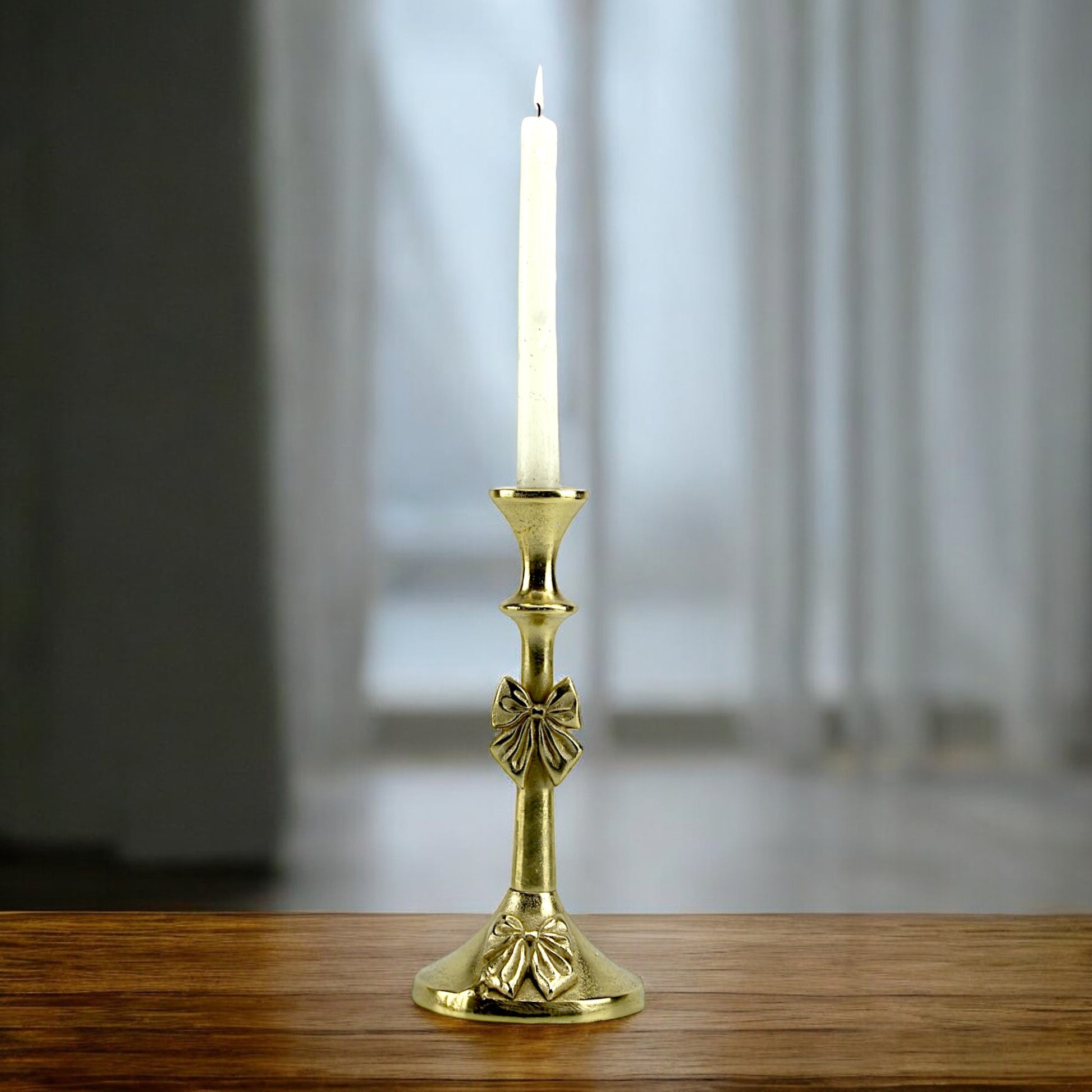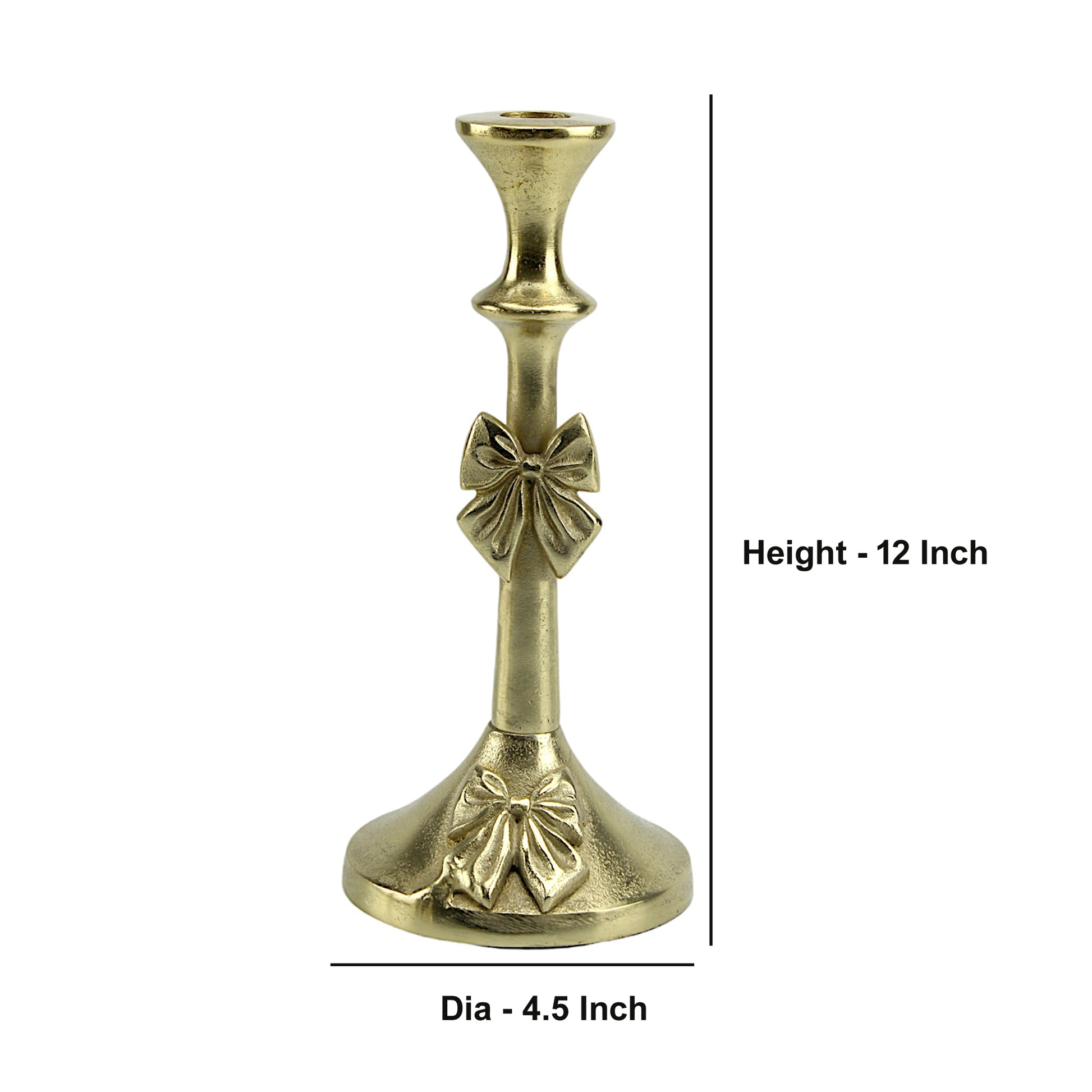 Artisan Golden Aluminum Large Bow-Decorated Candle Holder | Elegant Home Accent