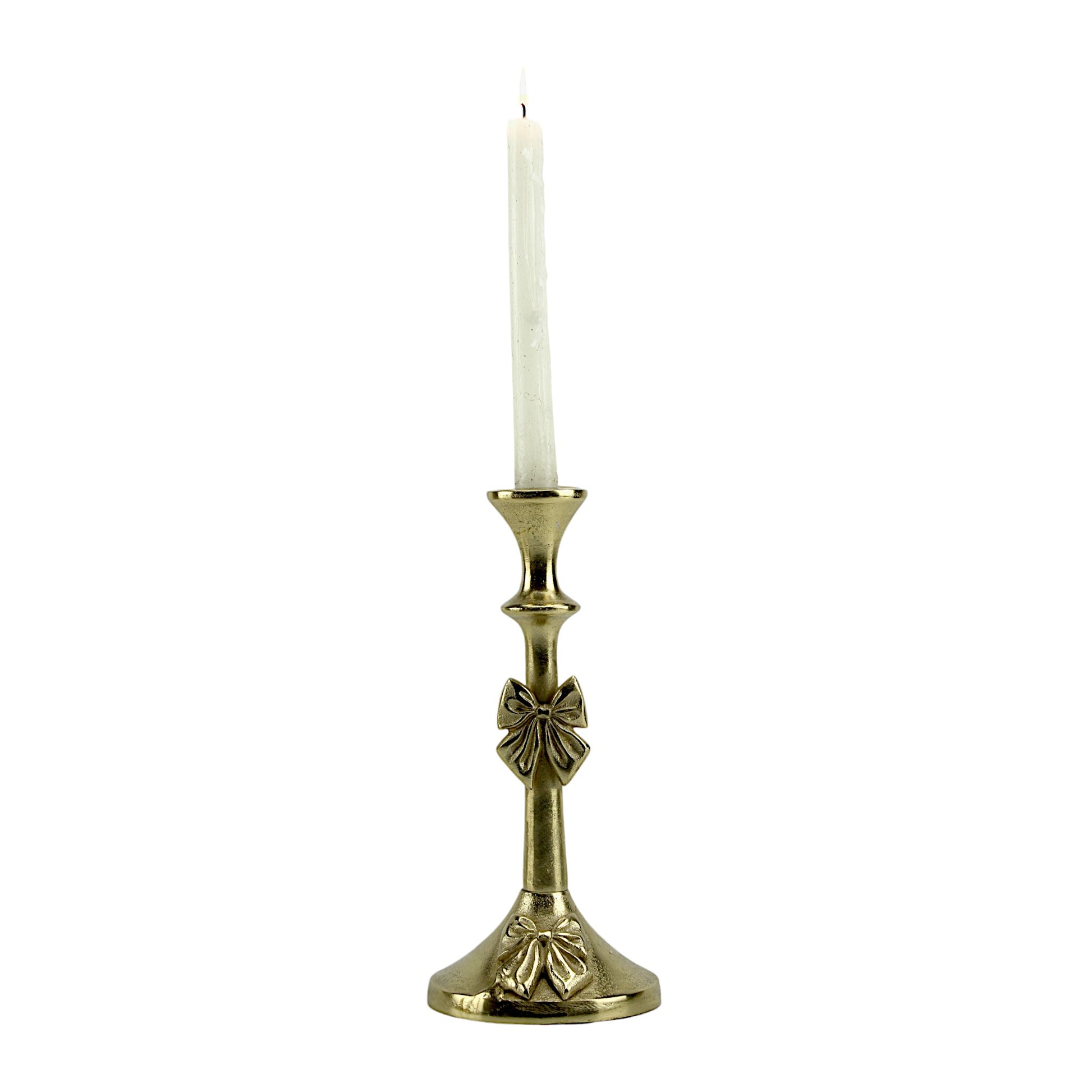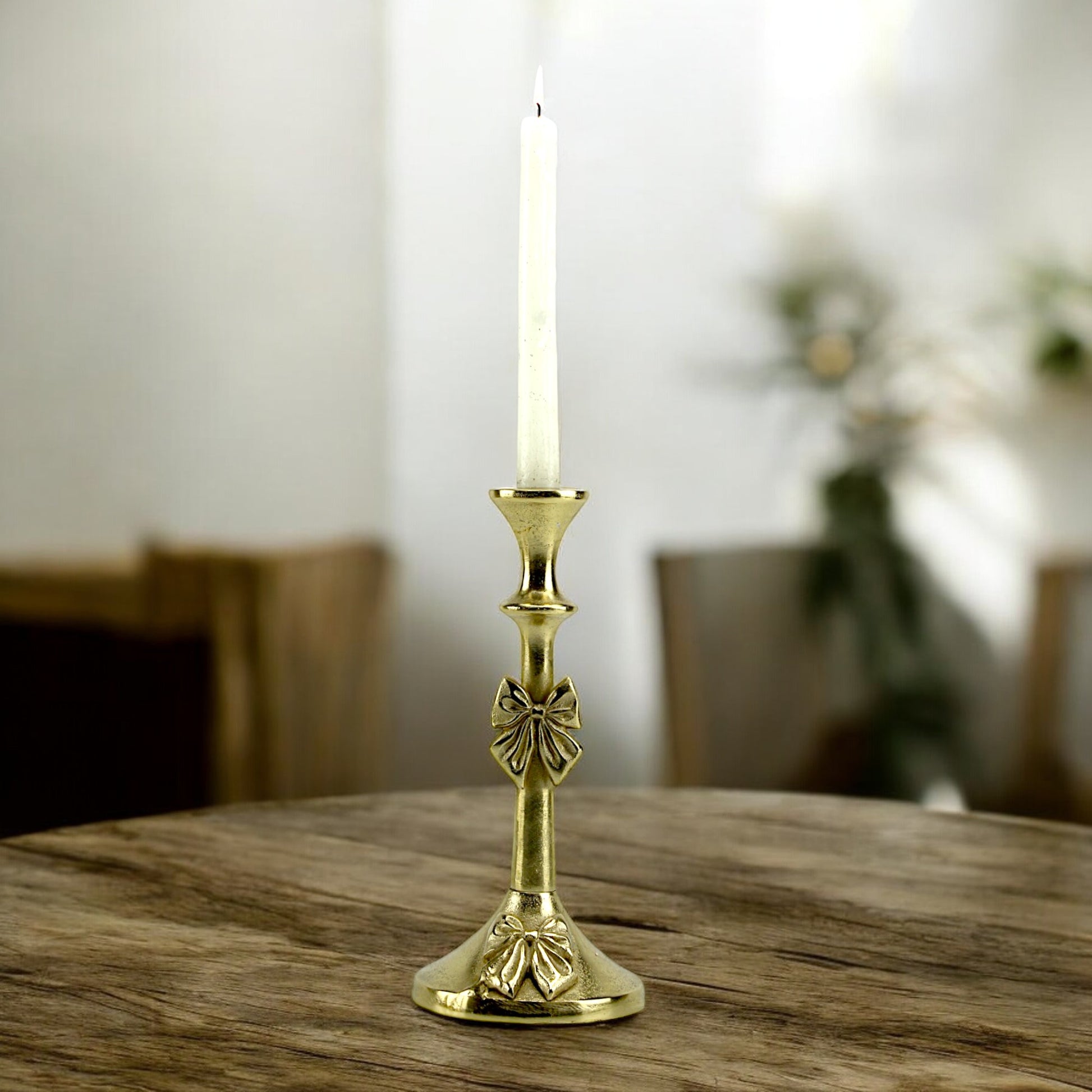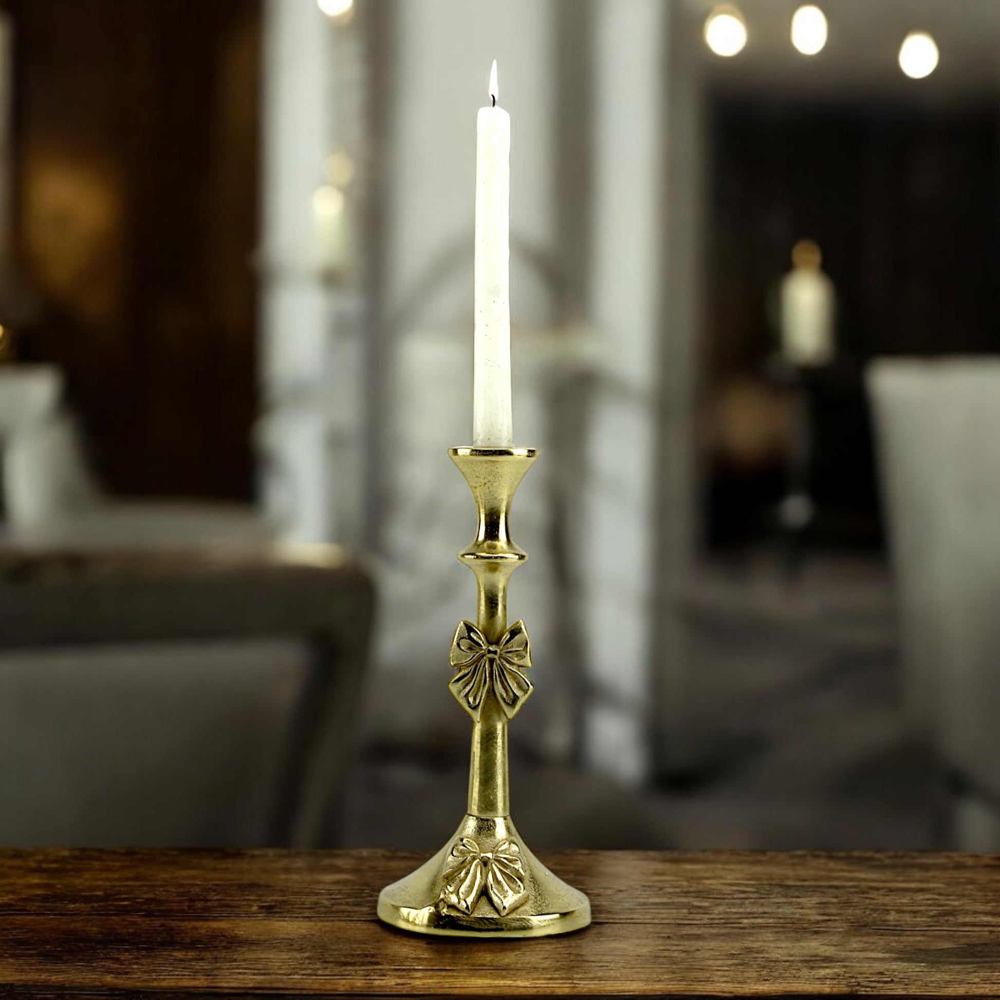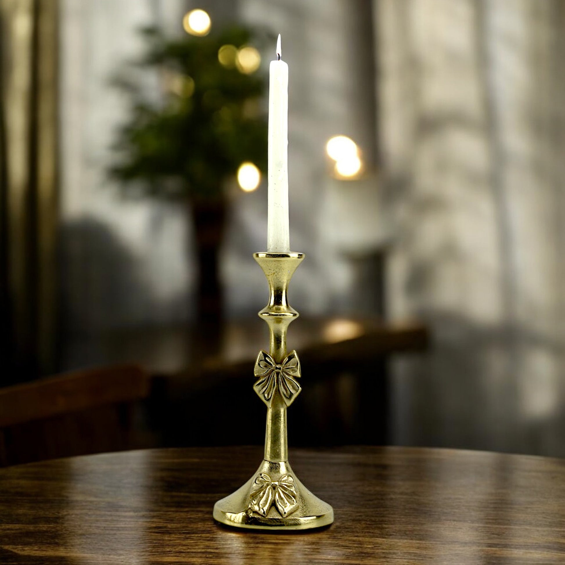 Artisan Golden Aluminum Large Bow-Decorated Candle Holder | Elegant Home Accent
