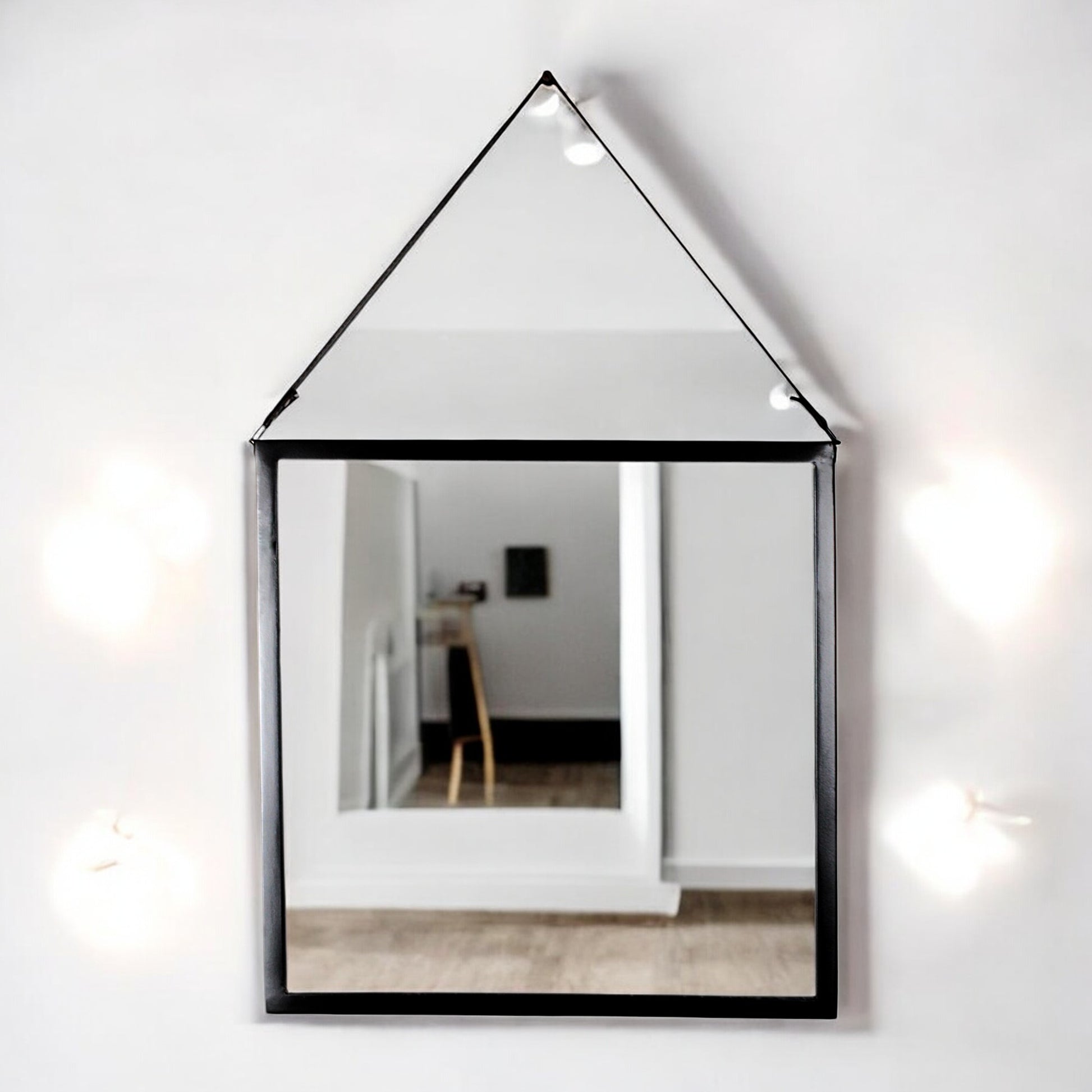 Elevate your interior design with our Square Shape Hanging Mirror, framed in a sleek metal finish. This mirror is perfect for adding a touch of modern elegance to any room. Its geometric design and durable construction make it a stylish and practical addition to your home.