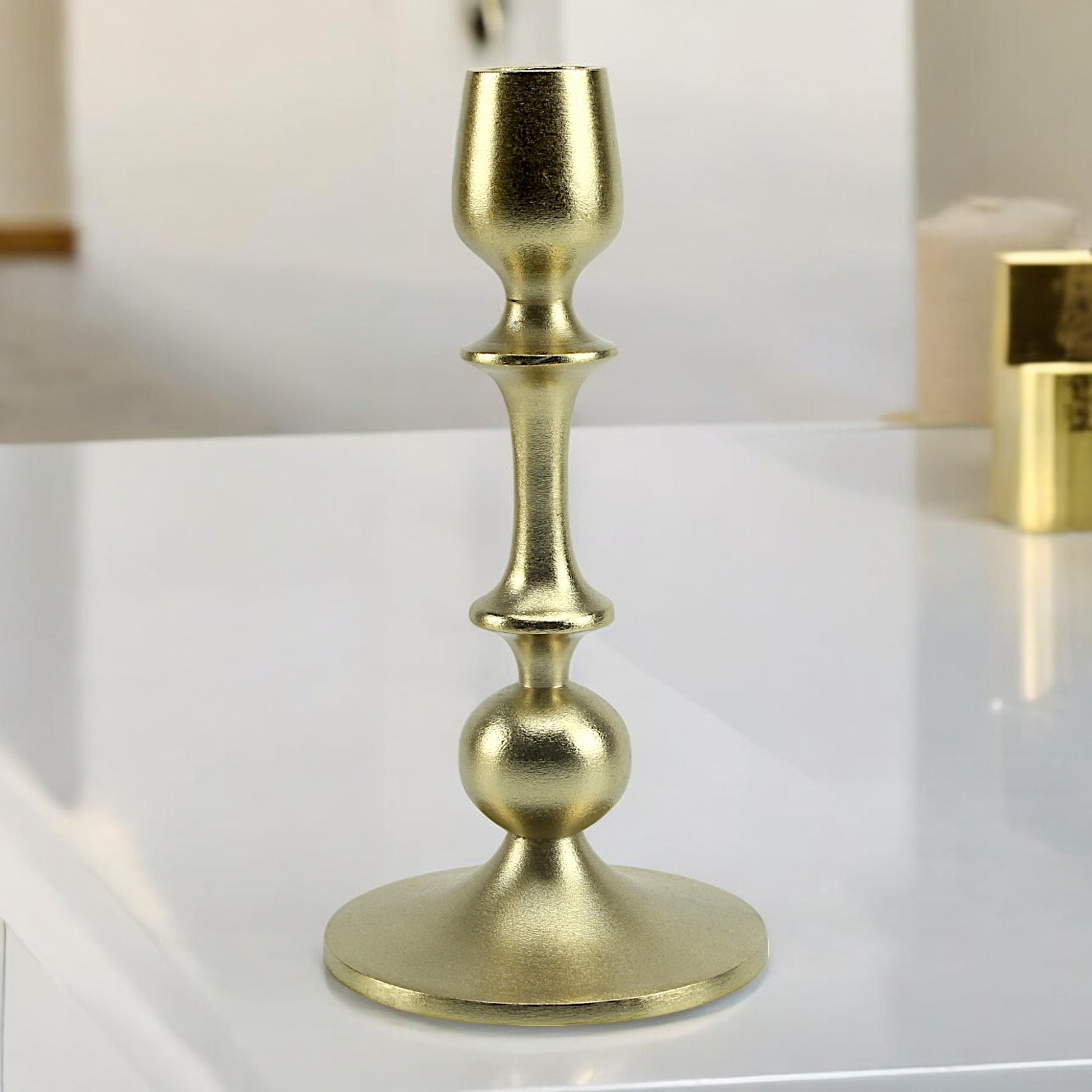 Radiant Waterdrop: Golden Aluminum Small Candle Holder | Elegant Home Accent