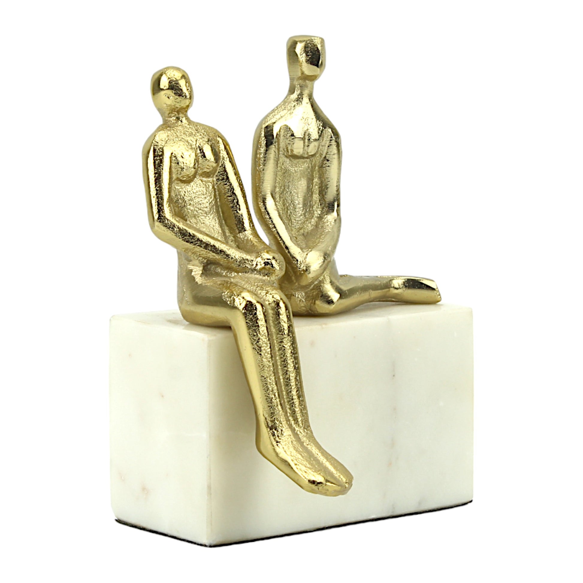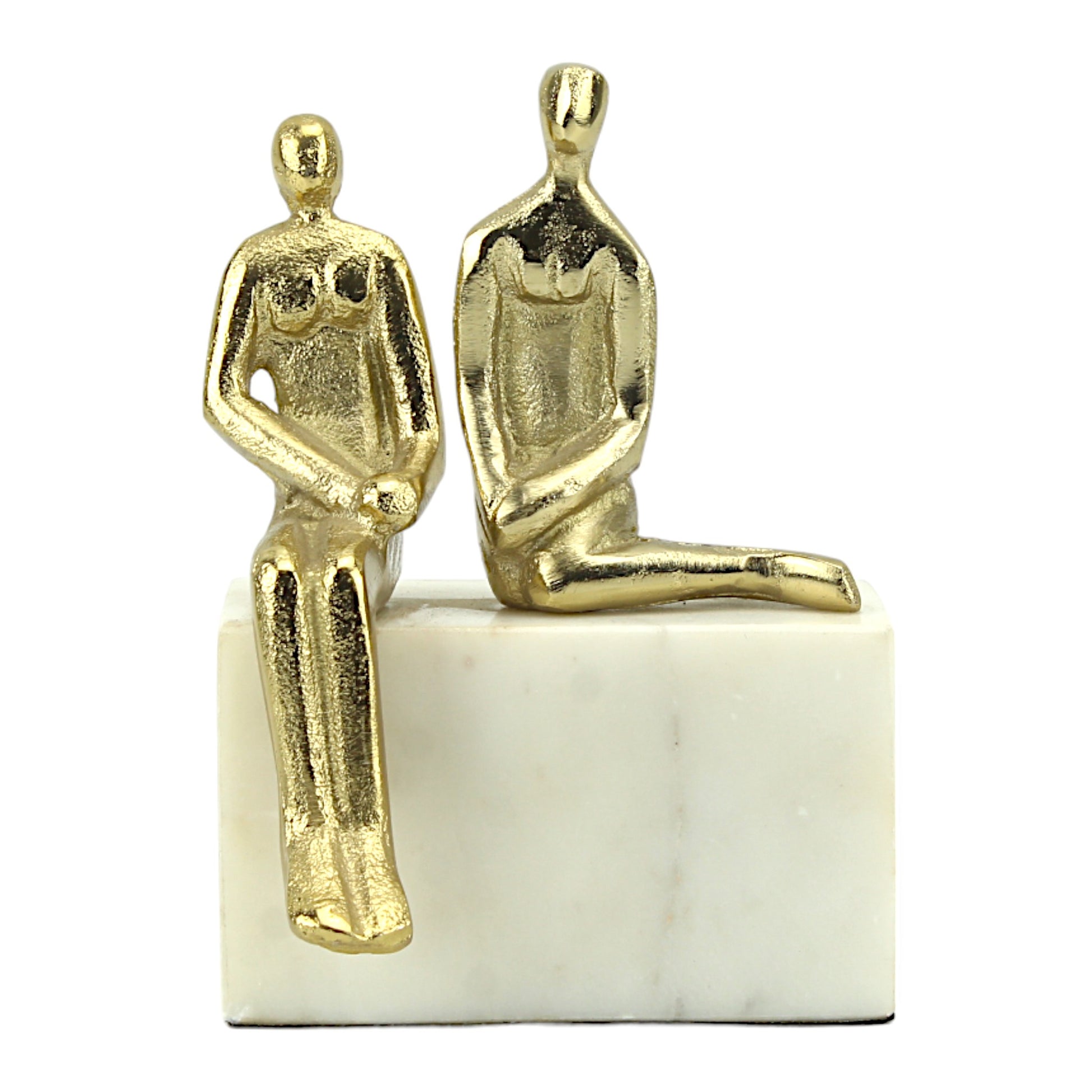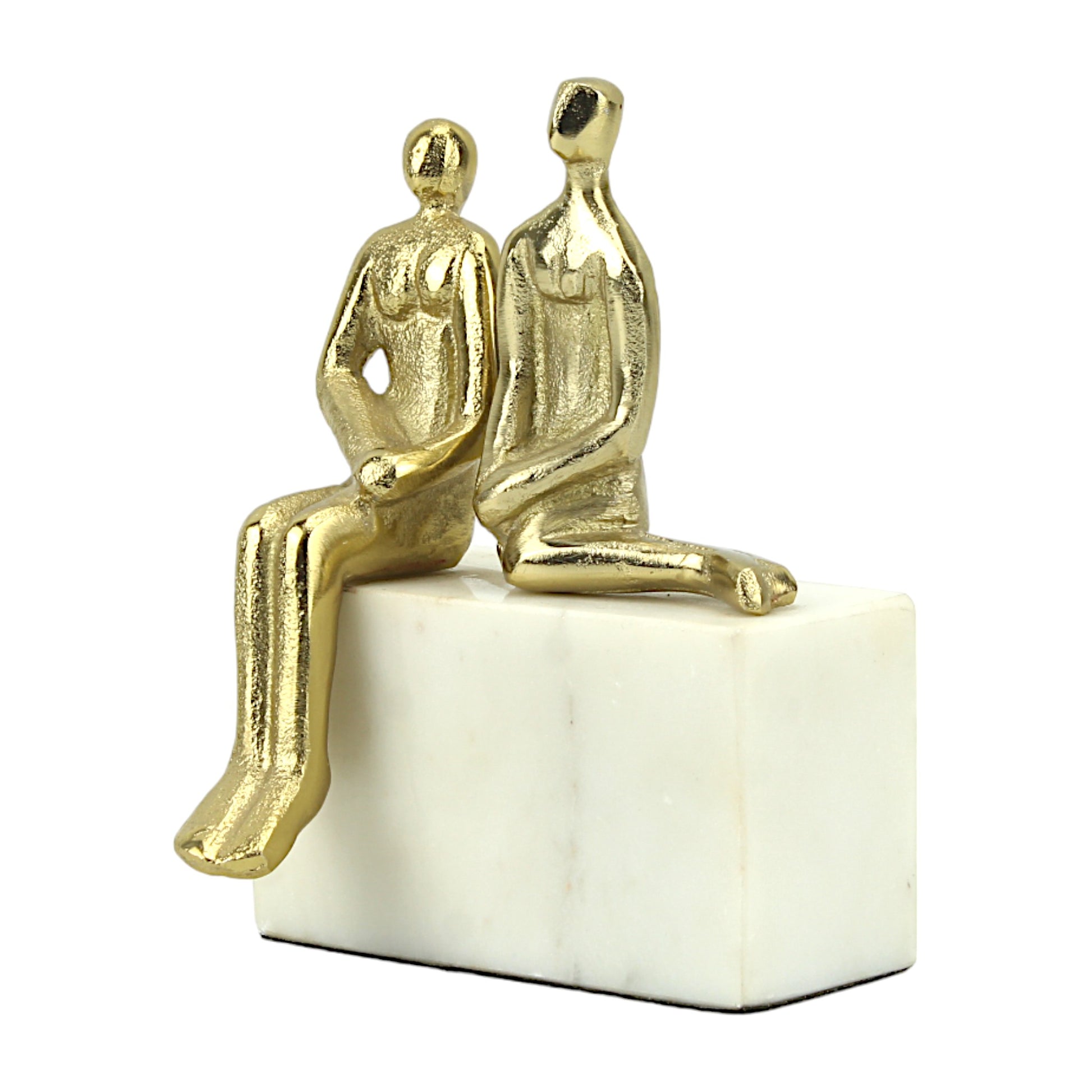 Golden Aluminum Couple Sculpture: Handcrafted Art on White Marble Block Base