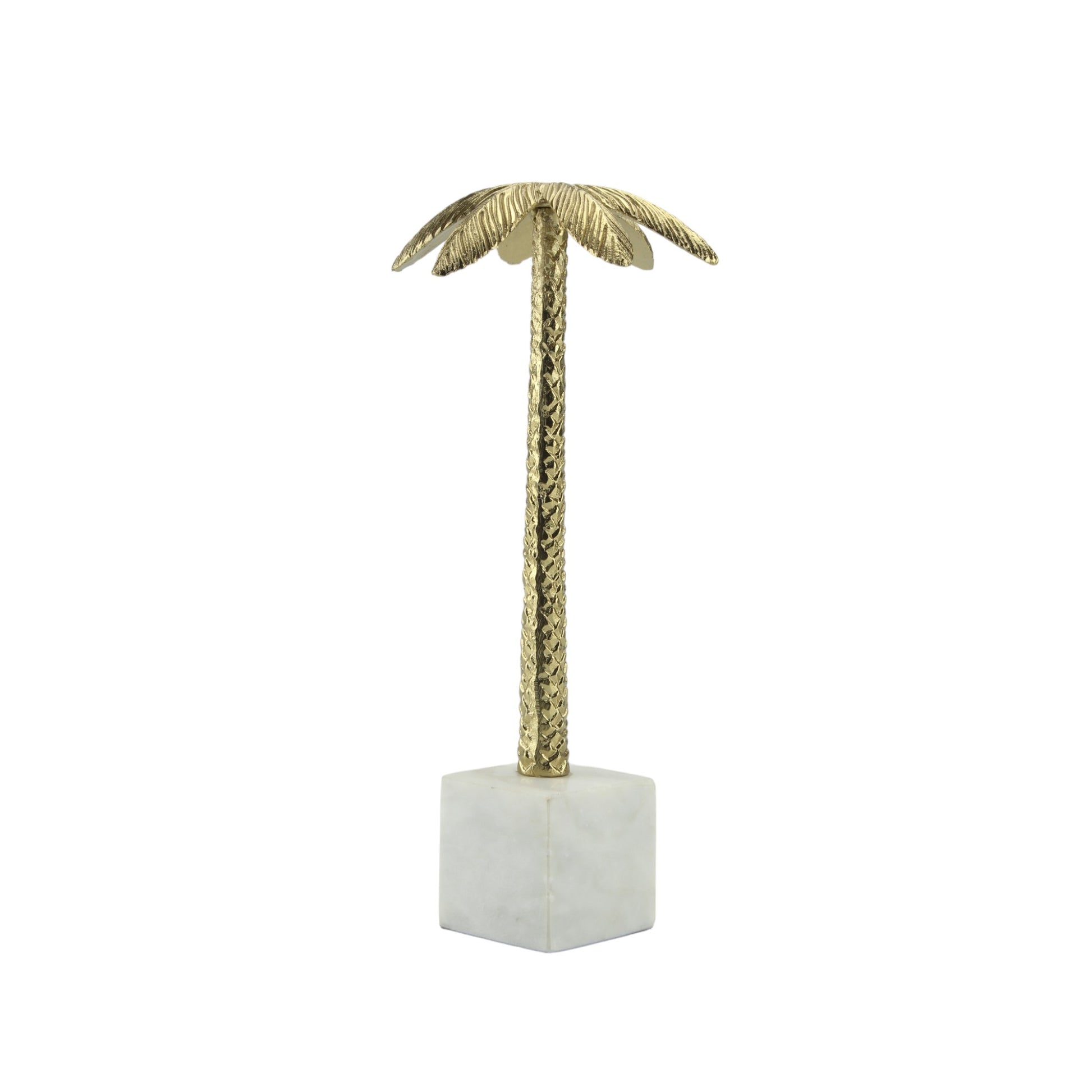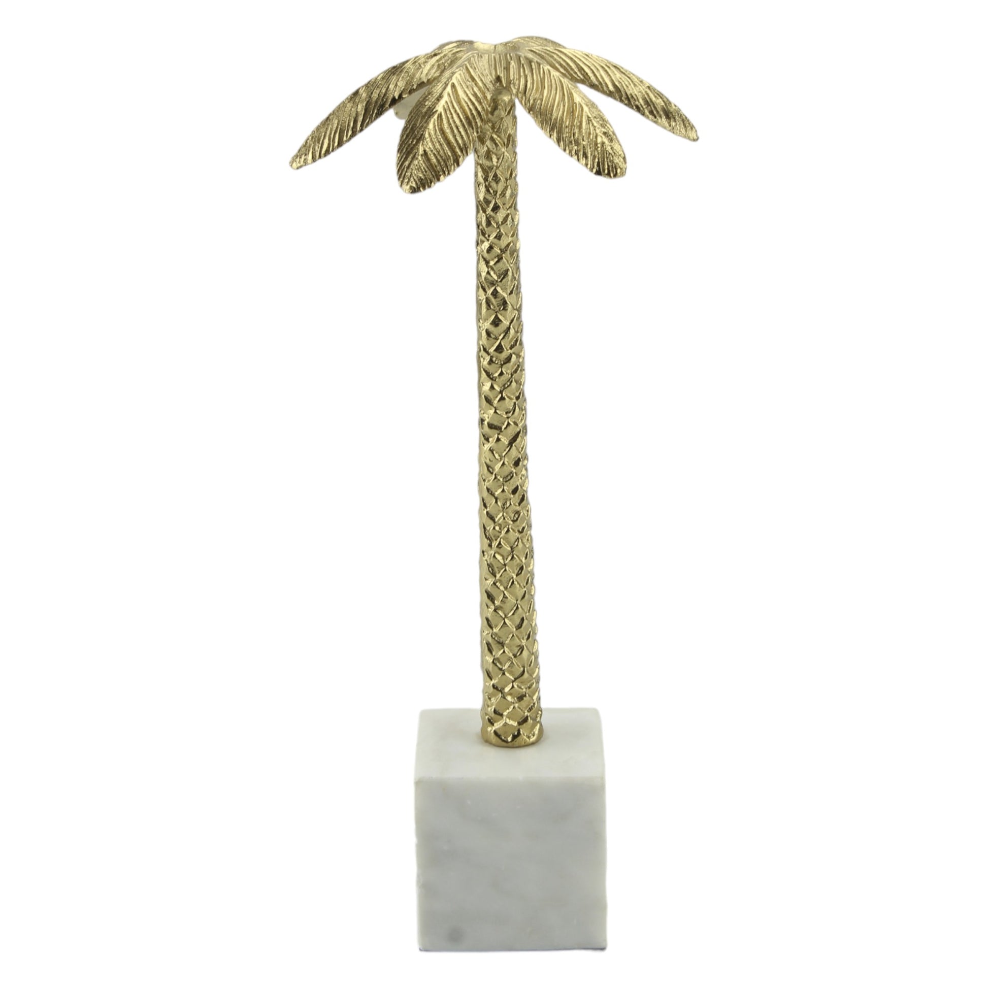 Golden Aluminum Handcrafted Coconut Tree on Marble Base: Elegant Sculptural Ornament