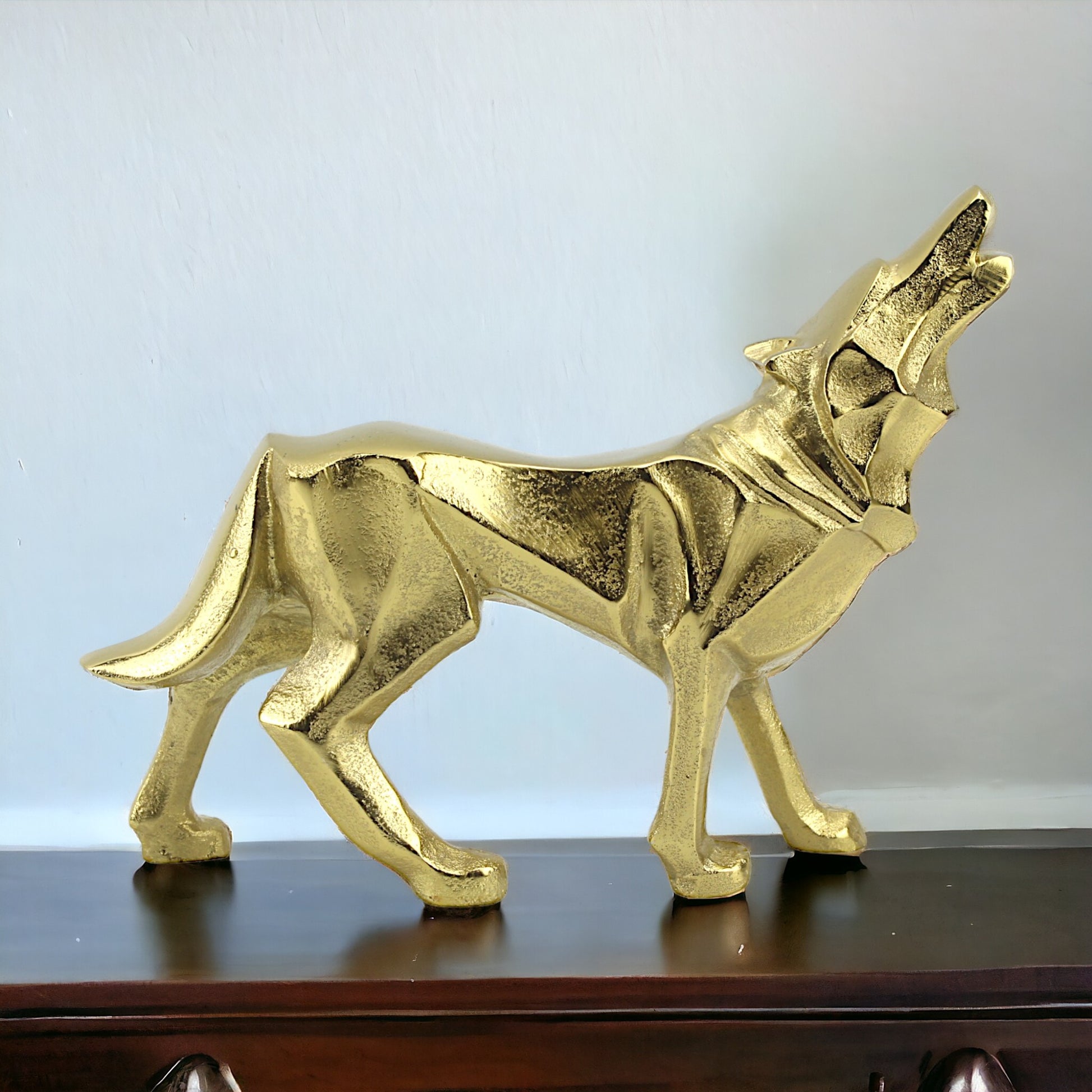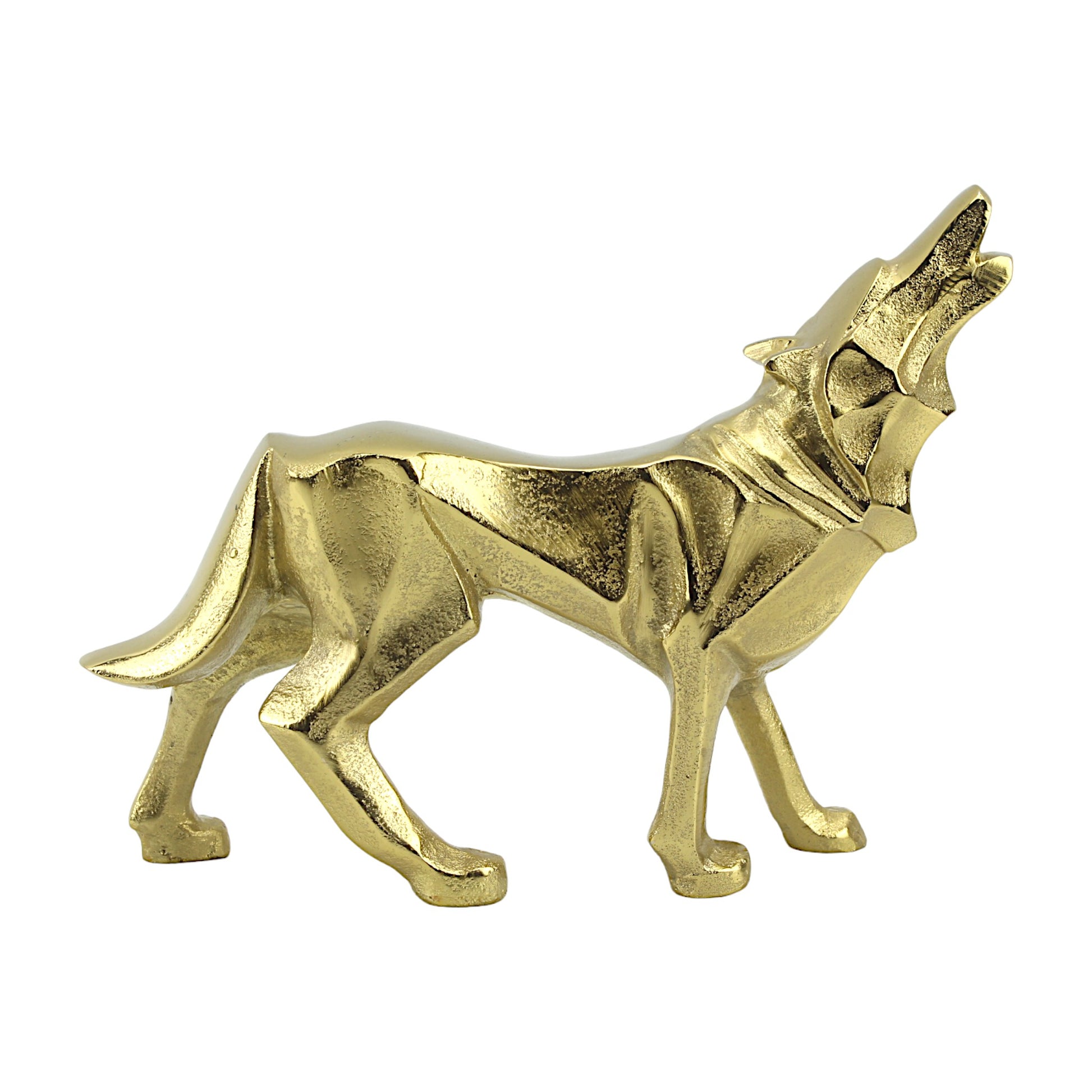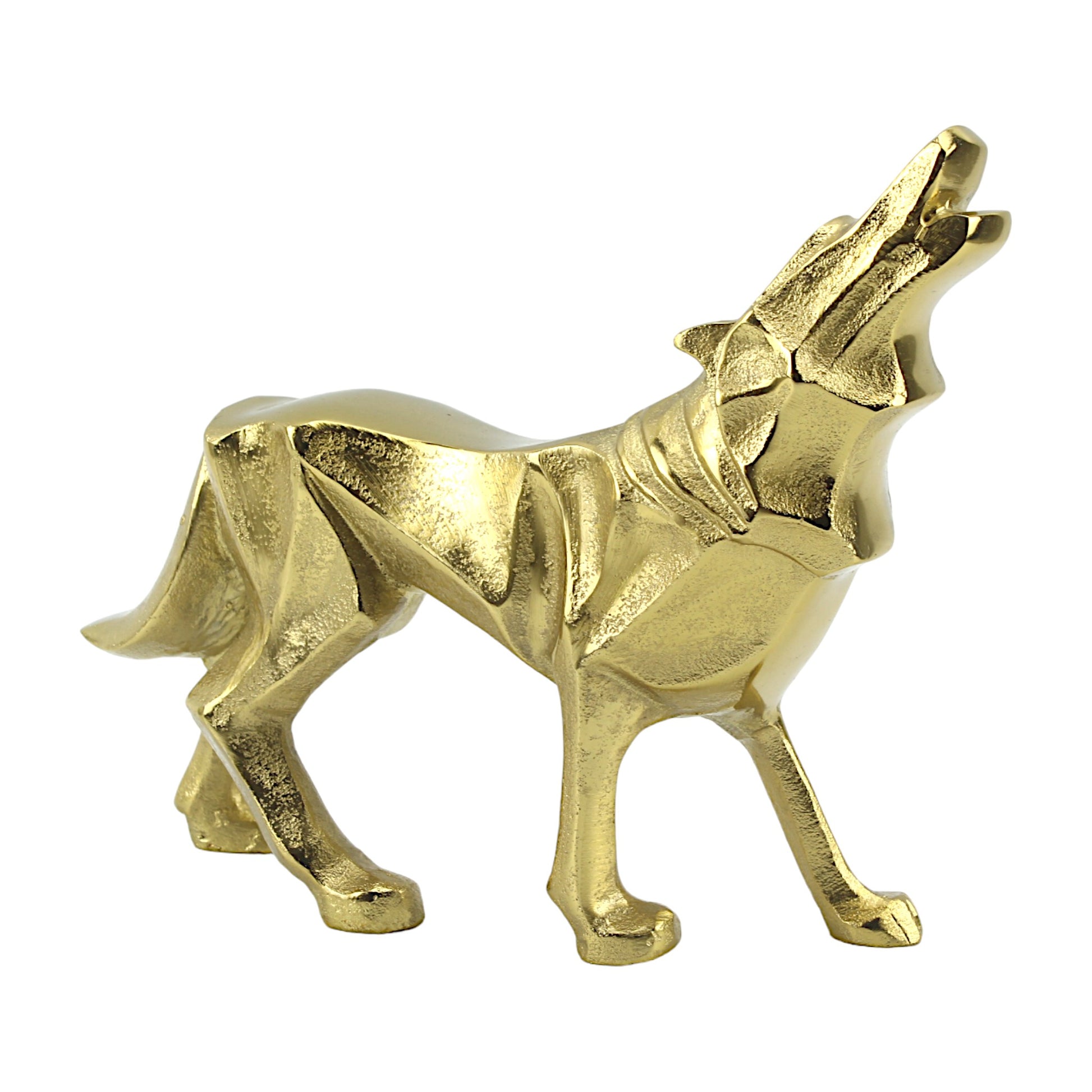 Golden Aluminum Howling Wolf Sculpture: Handcrafted Ornament for Wilderness Enthusiasts