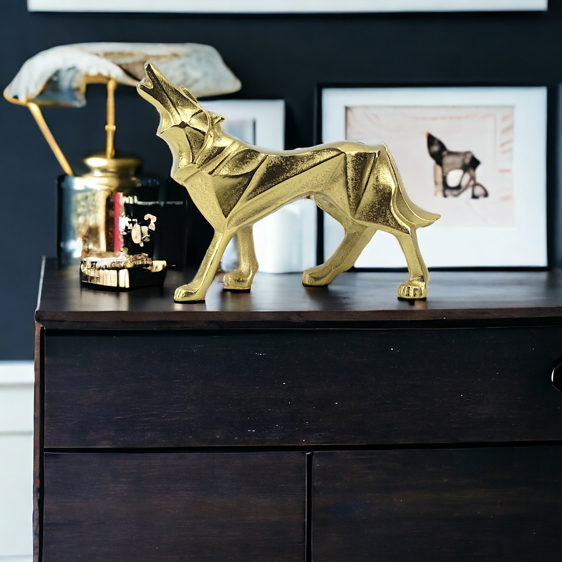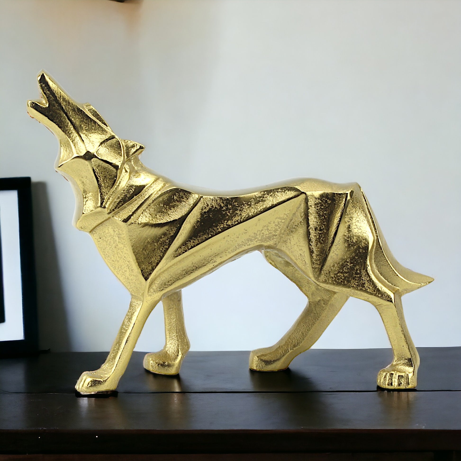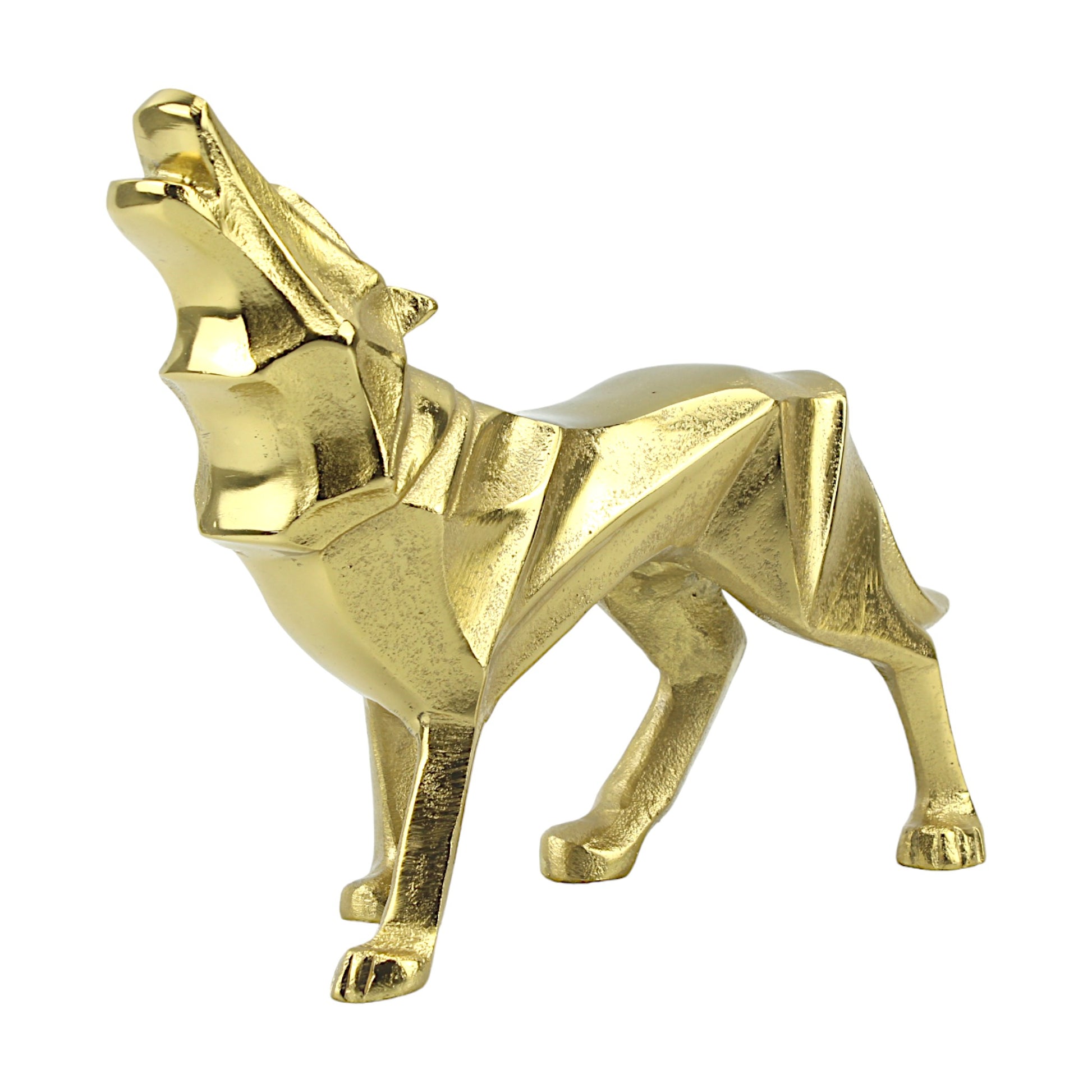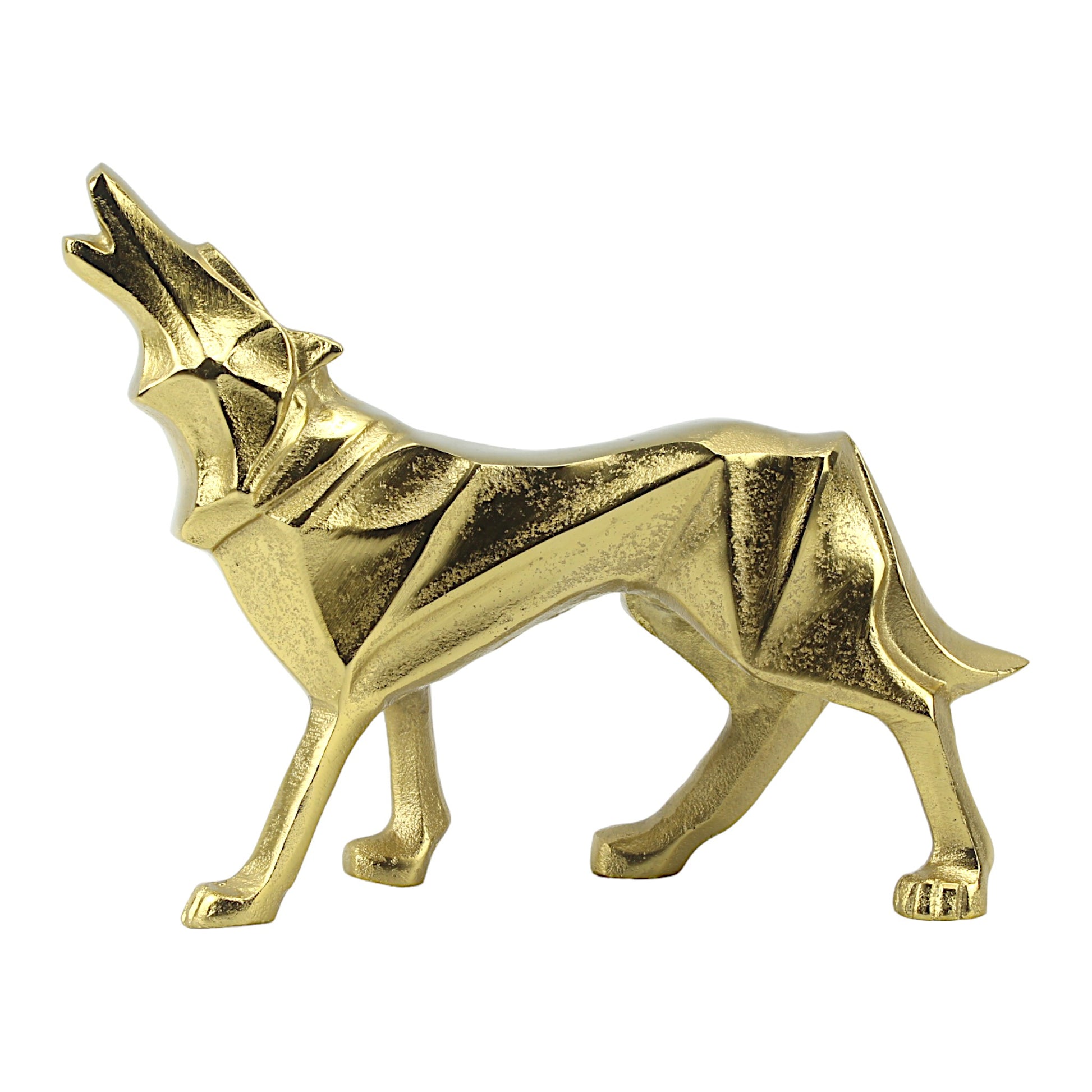 Golden Aluminum Howling Wolf Sculpture: Handcrafted Ornament for Wilderness Enthusiasts