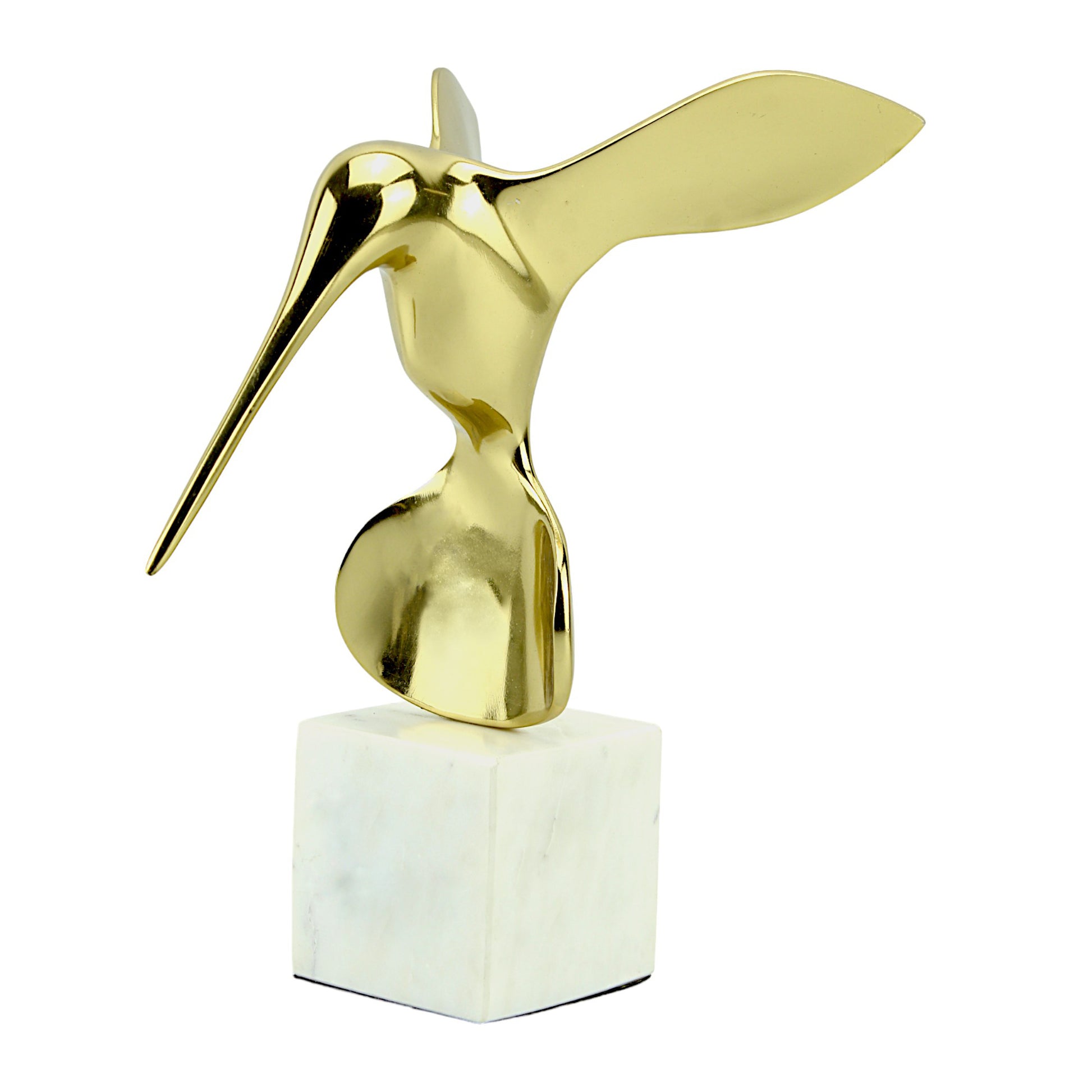 Introducing our stunning Golden Aluminum Long Beak Bird Sculpture, a masterpiece of avian elegance, delicately handcrafted to perfection. This exquisite piece rests majestically on a pristine white marble base, adding a touch of refined charm to any space.