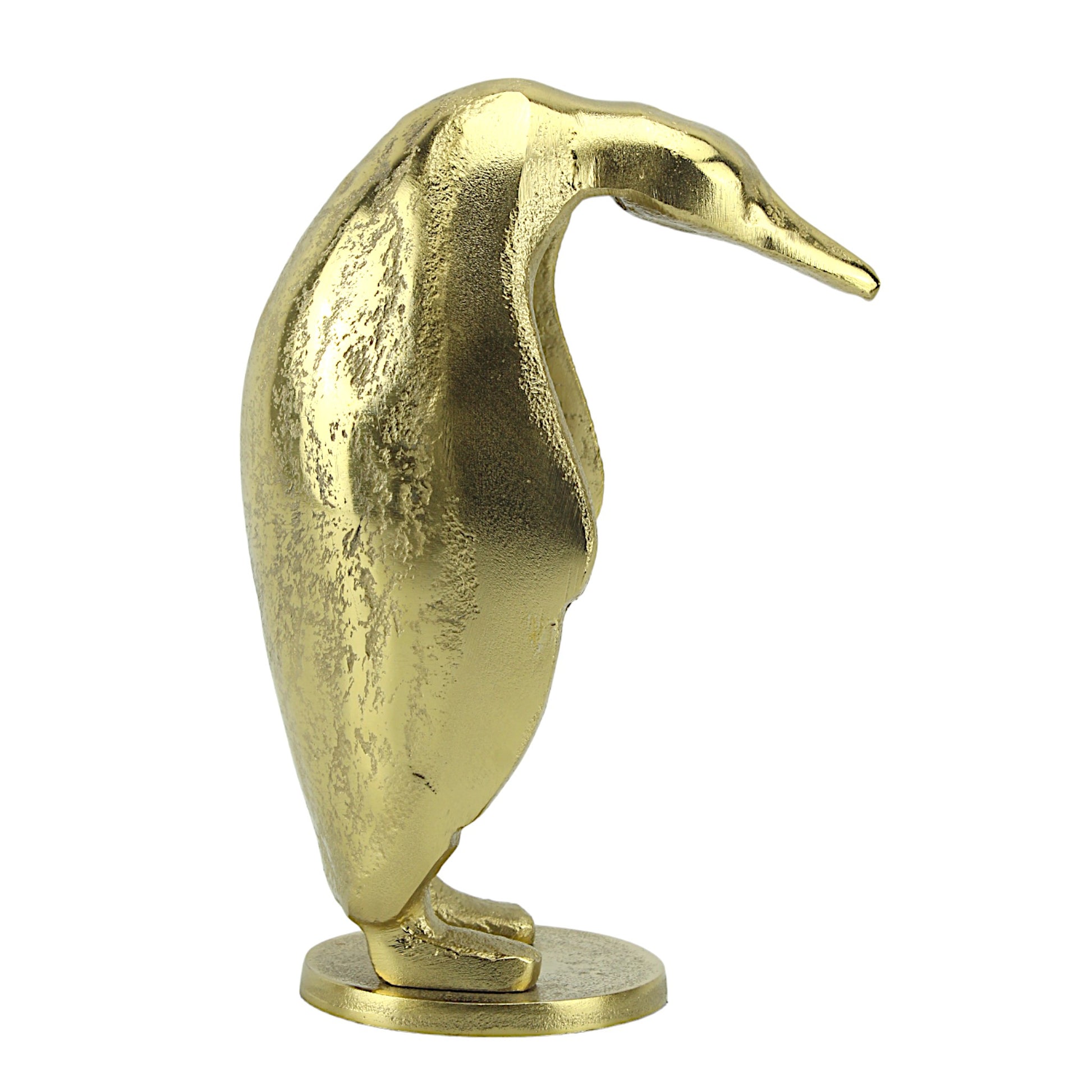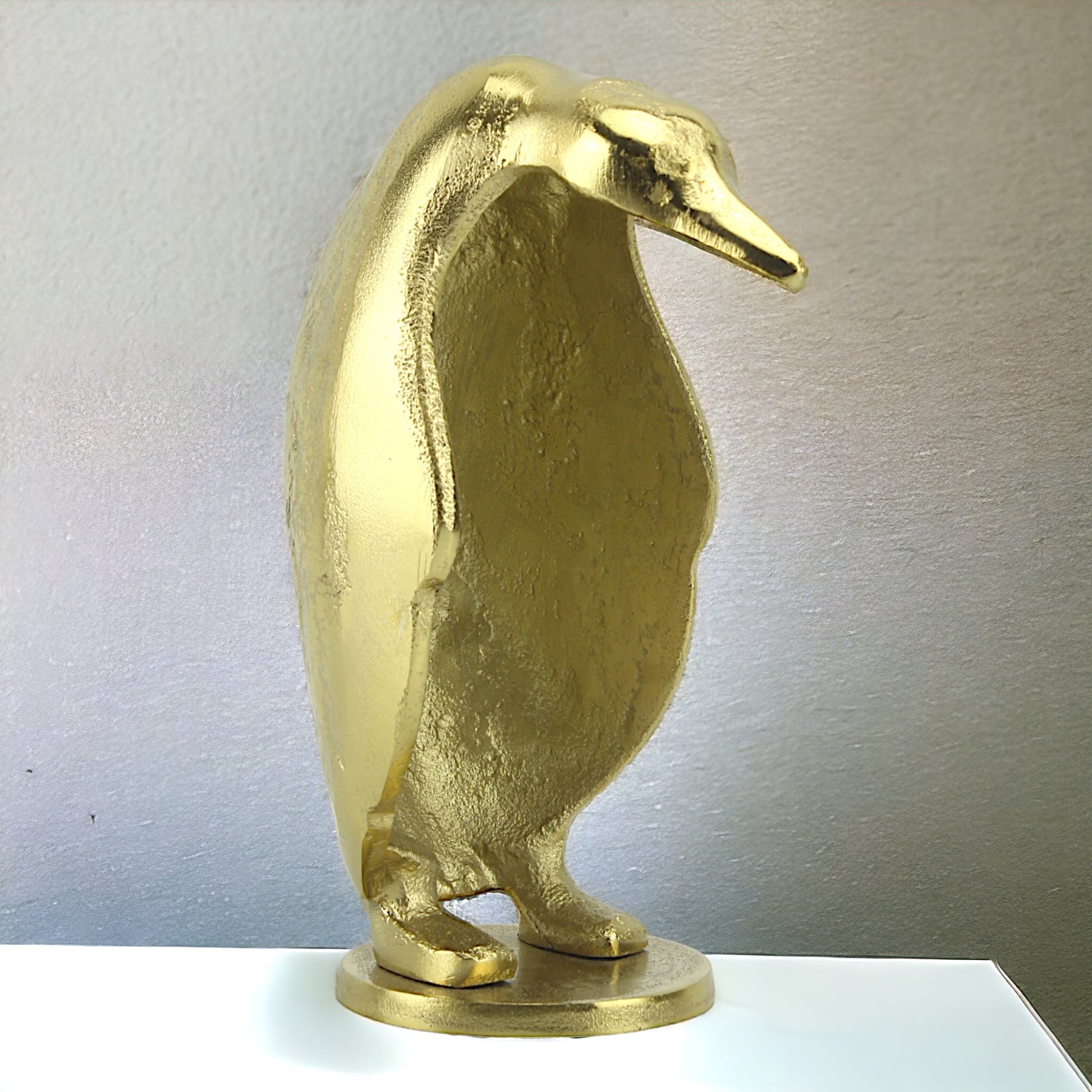 Introducing our Golden Arctic Charm Handcrafted Aluminum Penguin Sculpture, a whimsical addition to your home decor collection. Meticulously crafted by skilled artisans, this sculpture captures the playful charm of penguins in exquisite detail. Finished in radiant gold, it adds a touch of luxury and personality to any space. Whether displayed on a shelf, desk, or mantel, it brings a smile to your face and evokes the beauty of the Arctic in a stylish and artistic manner.