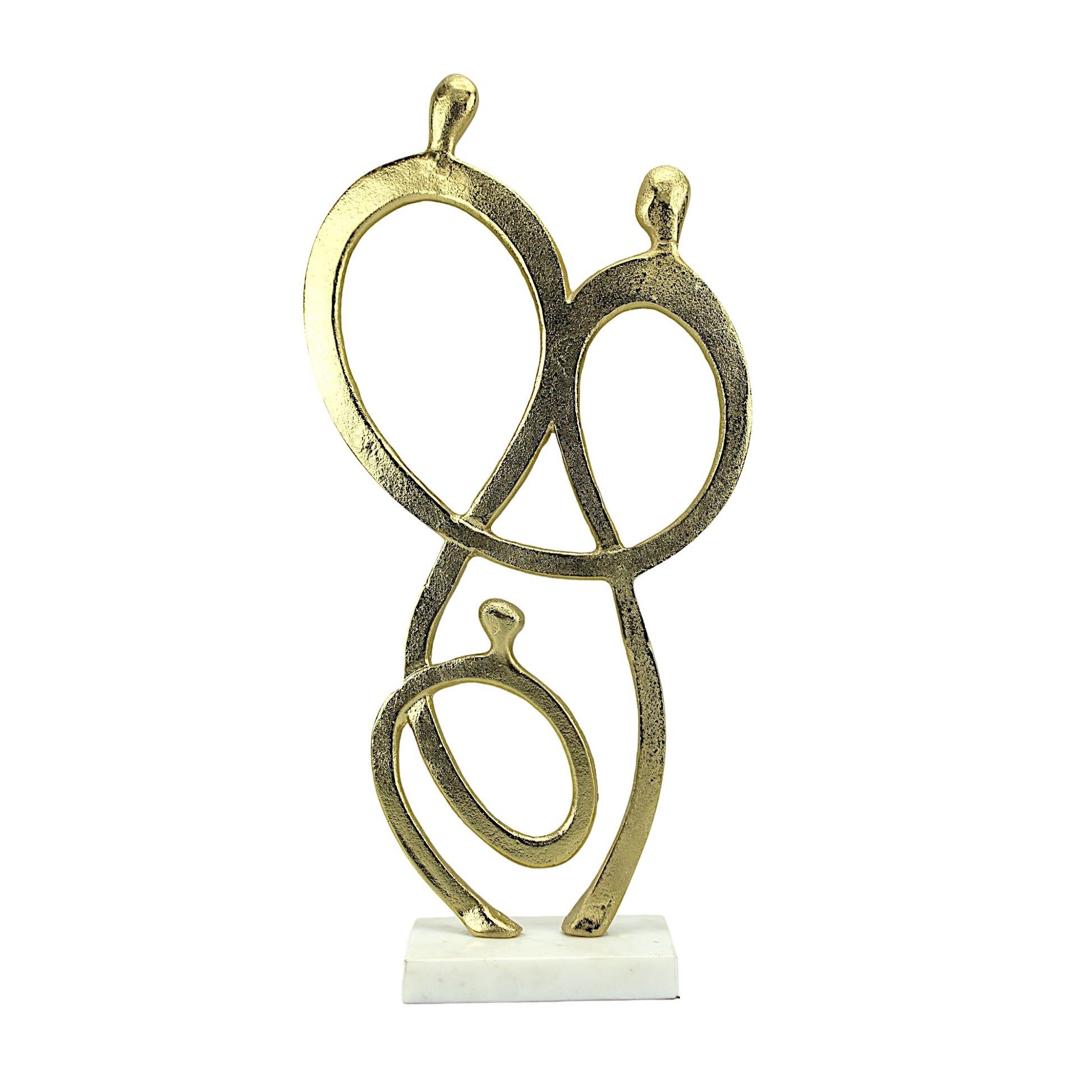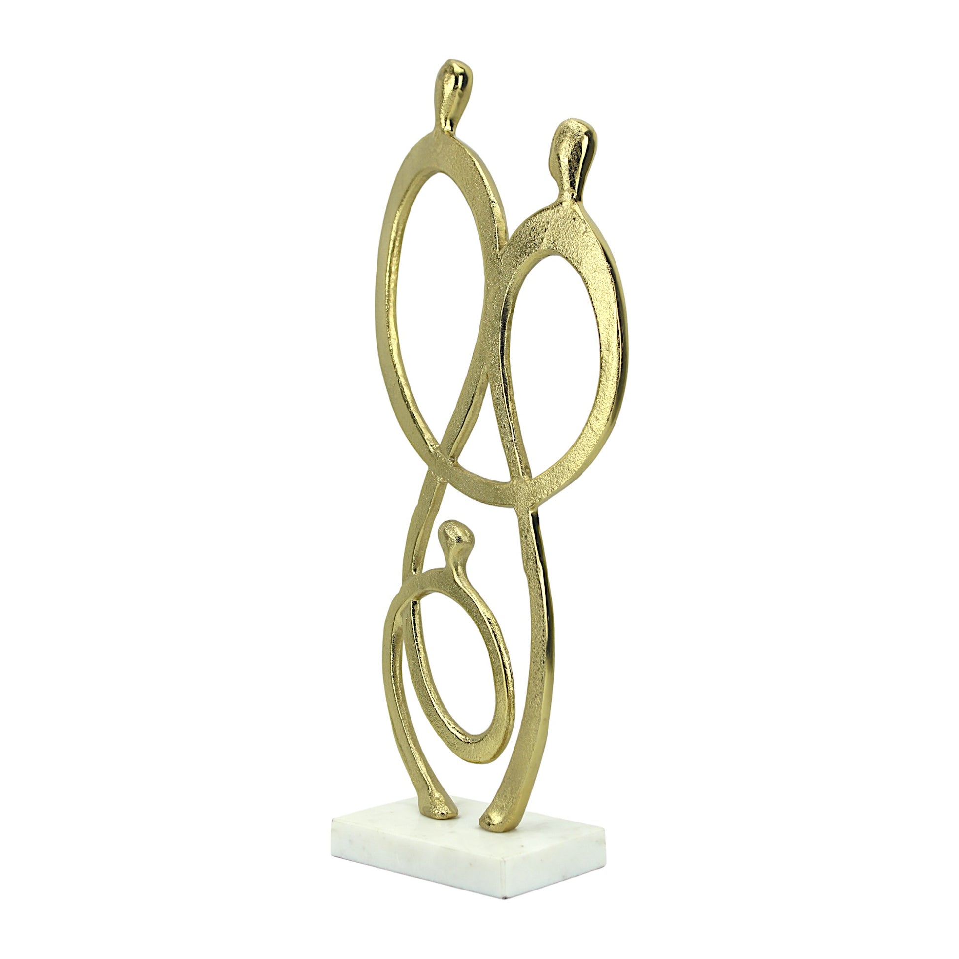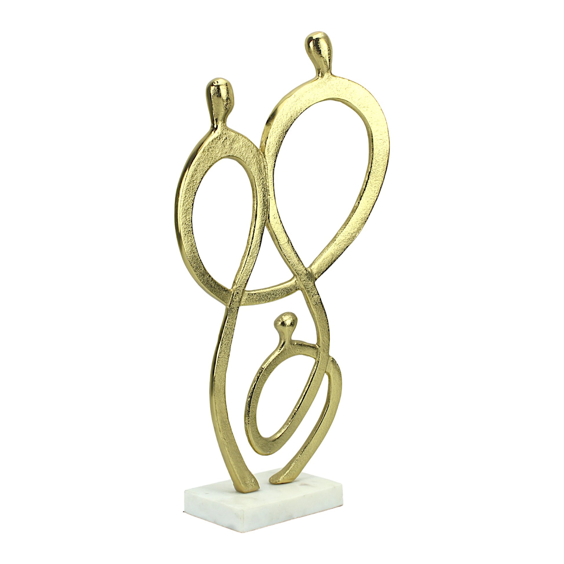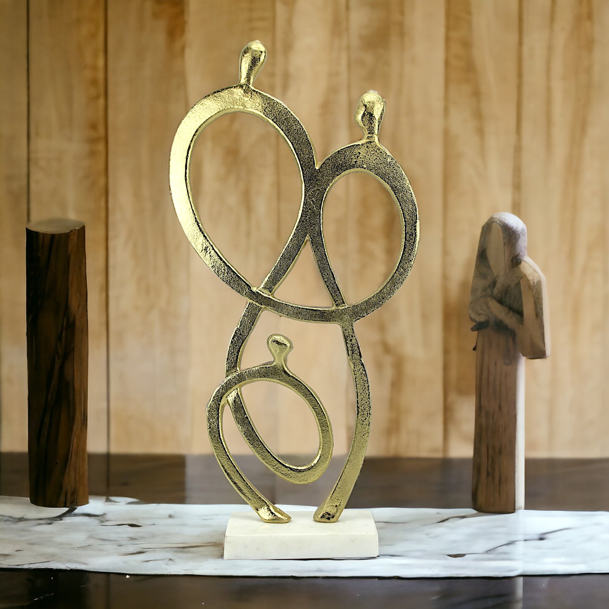 Golden Bonds: Handcrafted Aluminum Human Family Sculpture on White Marble Base