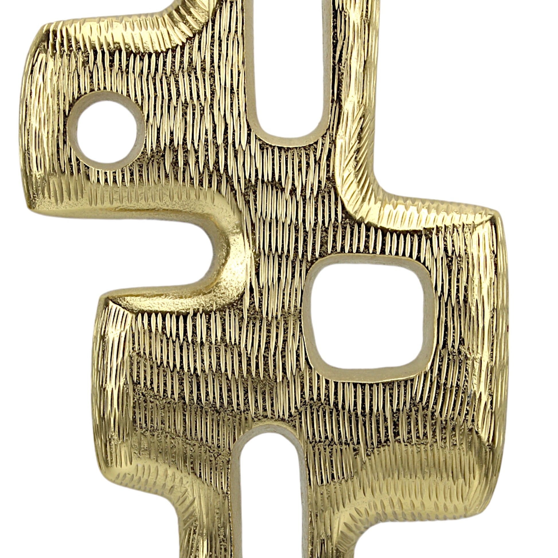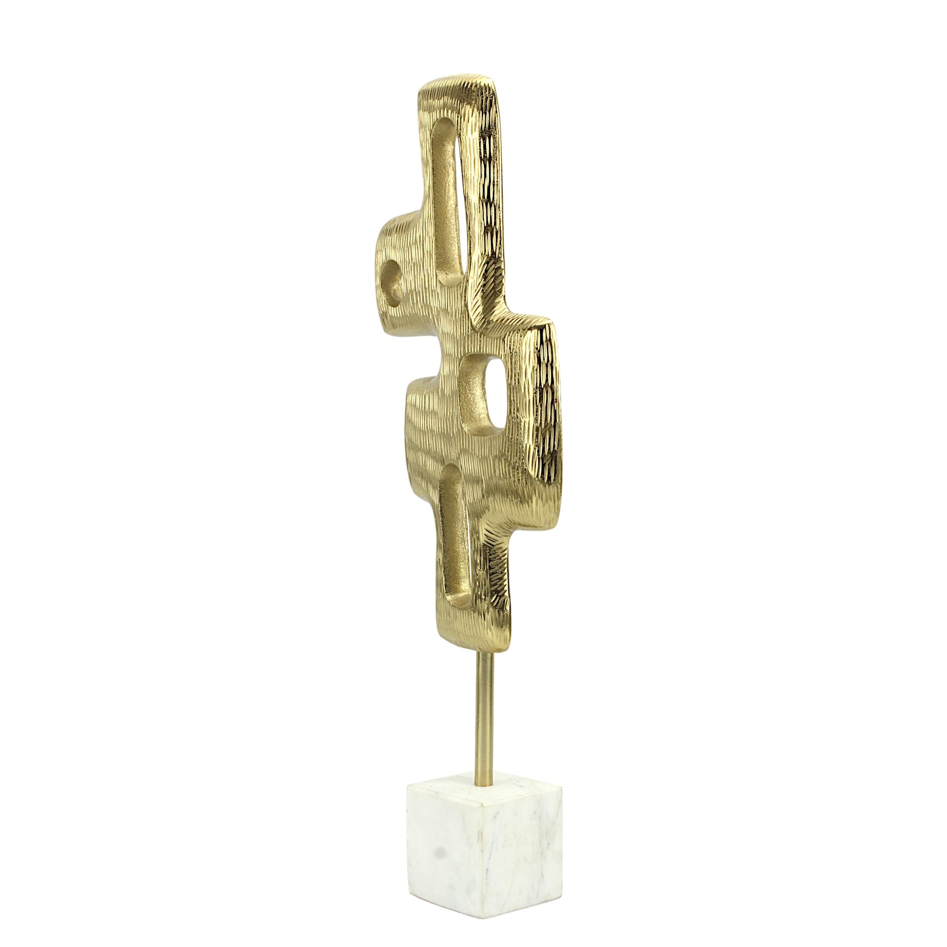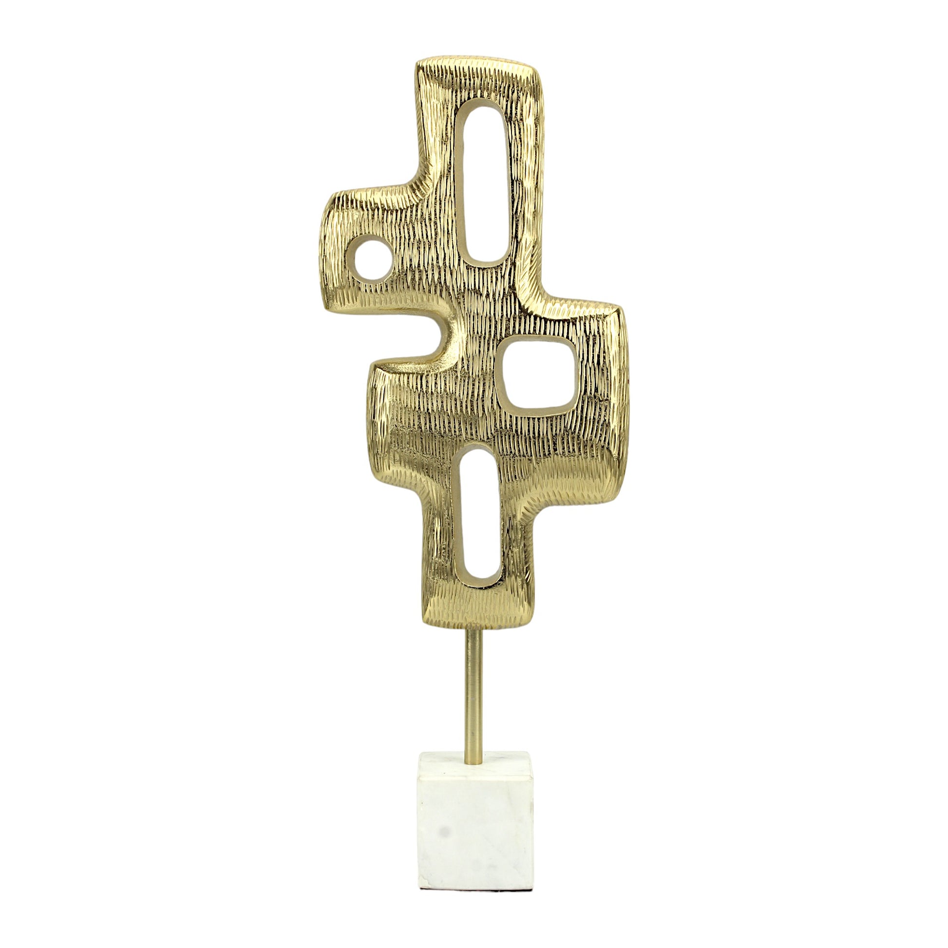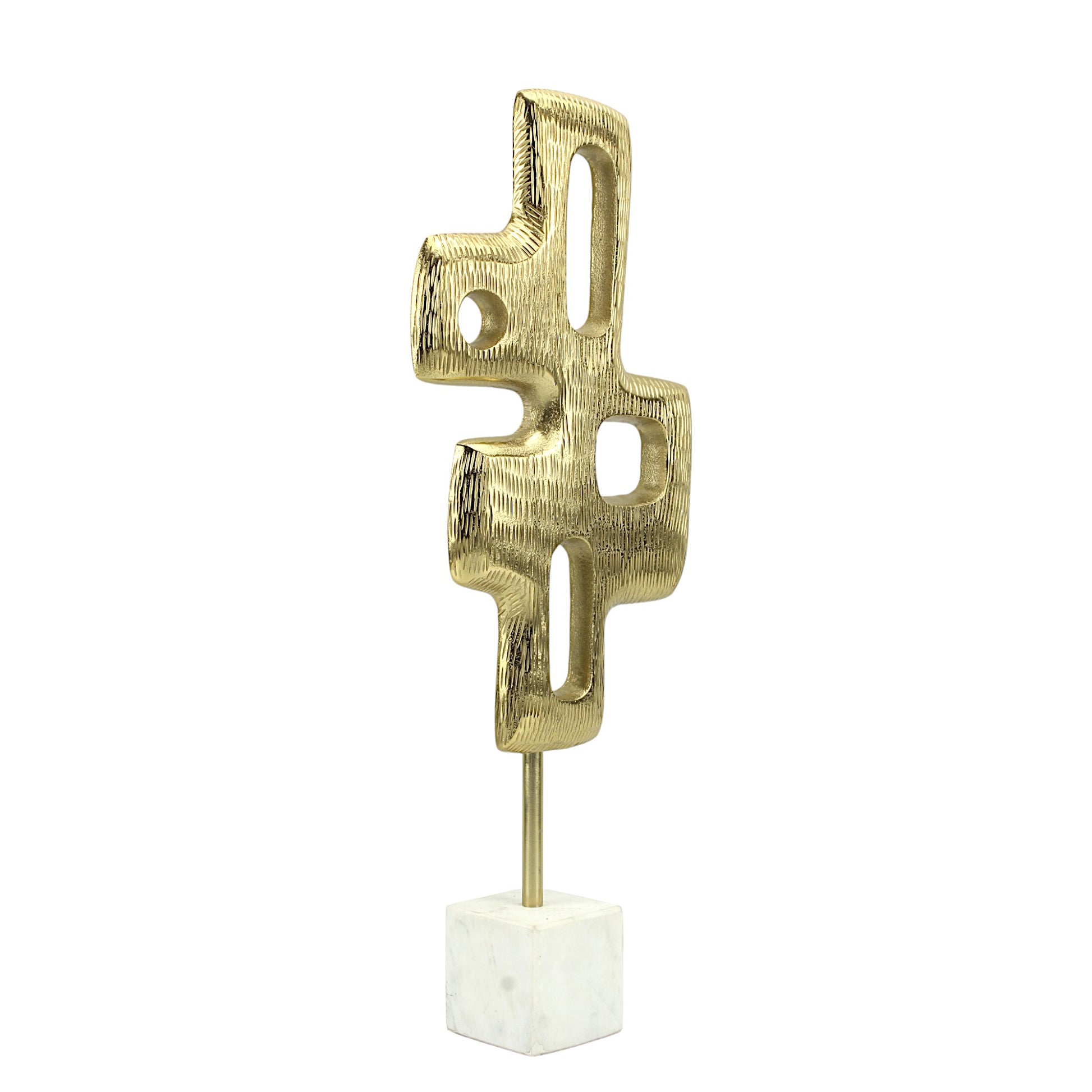 - Elegant Contrast: The juxtaposition of the golden abstract forms against the pristine white marble base creates a visually striking contrast, elevating the aesthetic of the piece.