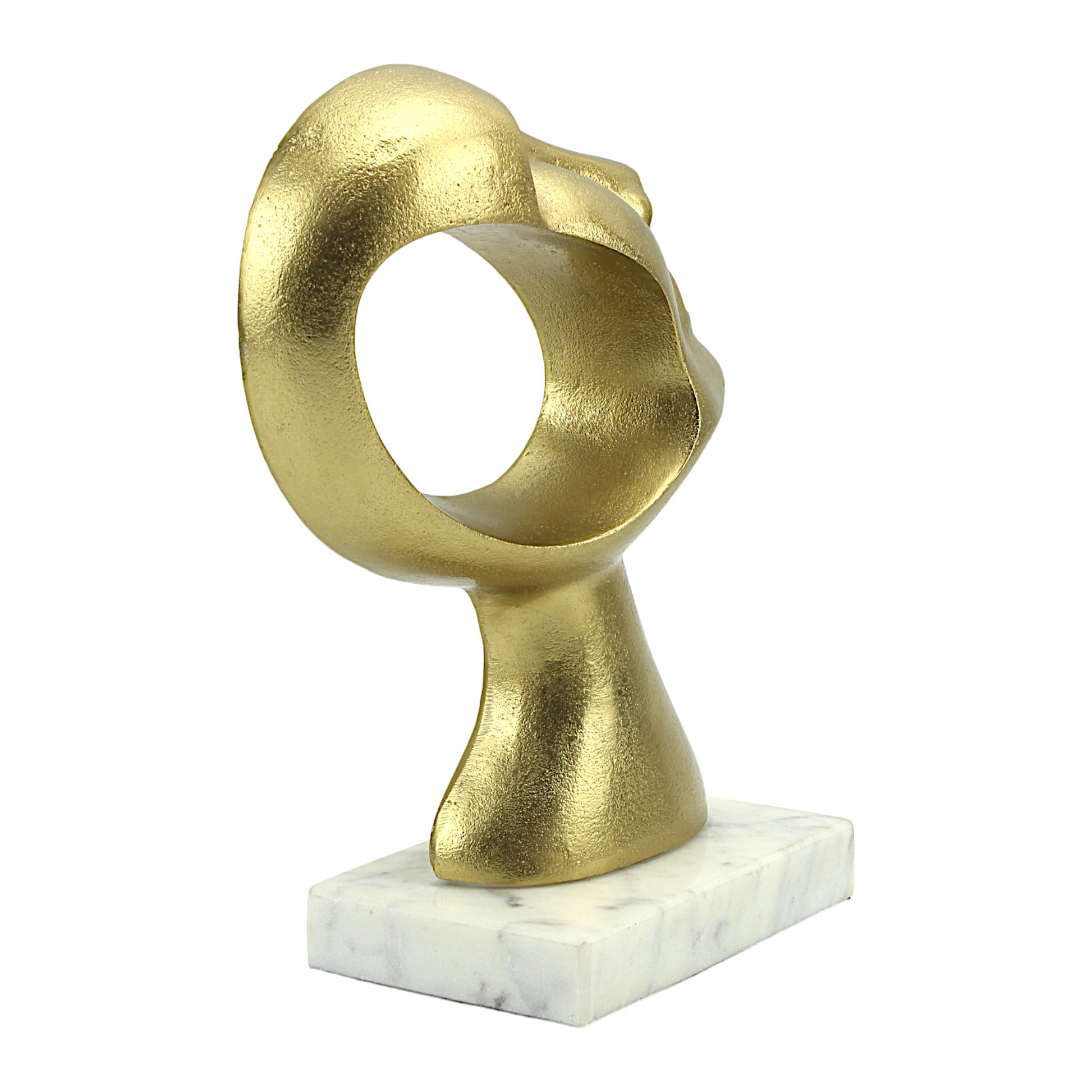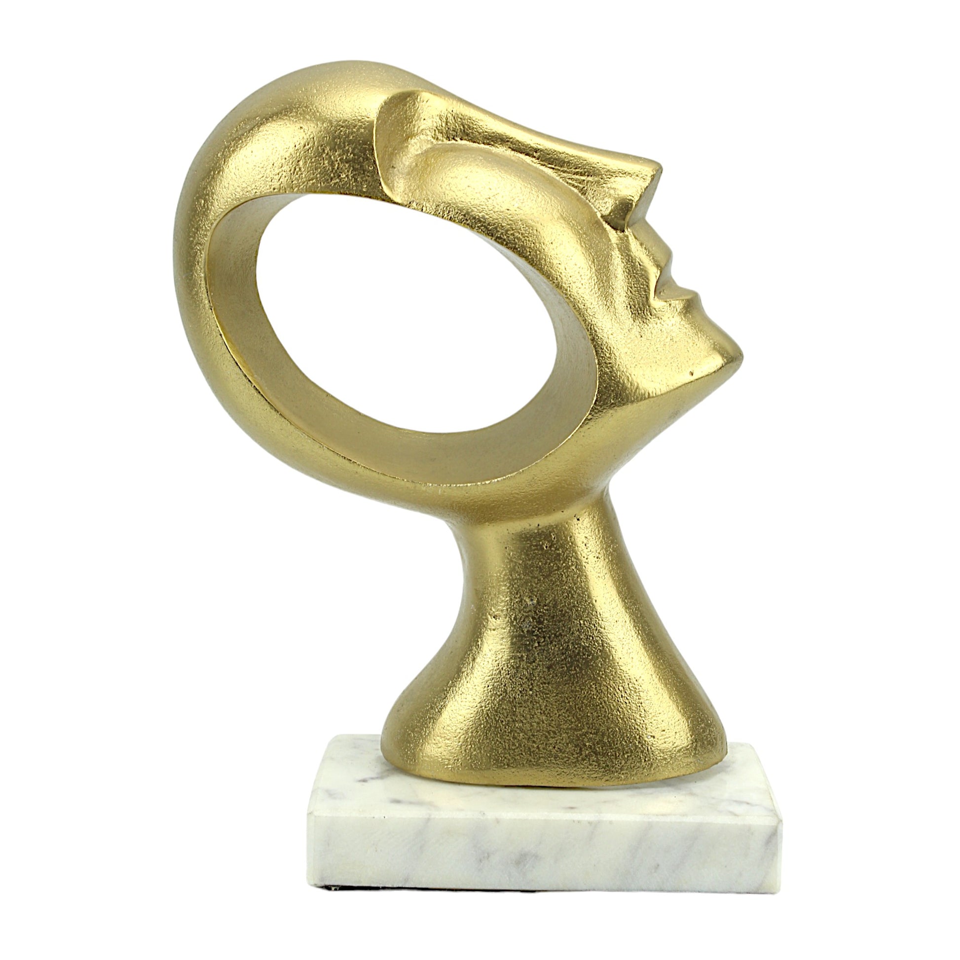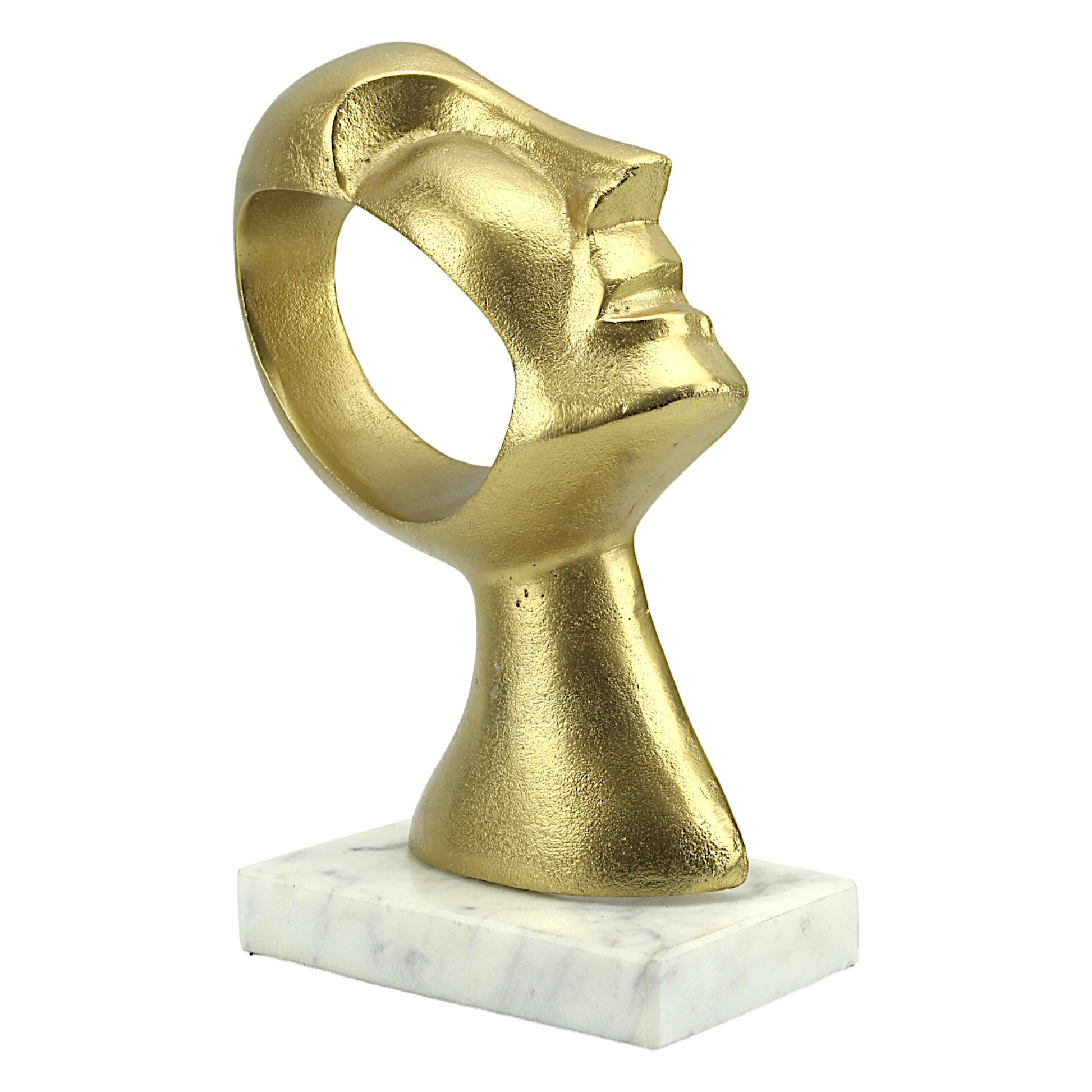 Golden Gaze: Handcrafted Aluminum Human Face Sculpture on Marble Base Ornament