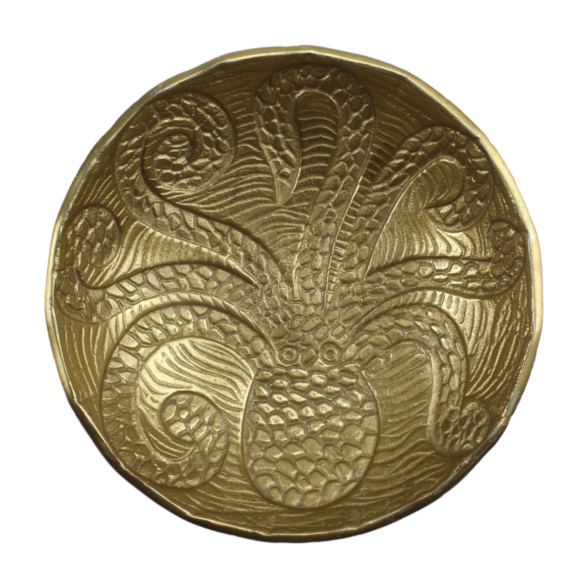 Golden OctoGlam Handcrafted Aluminium Decorative Bowl: Unique Artistry for Home Décor