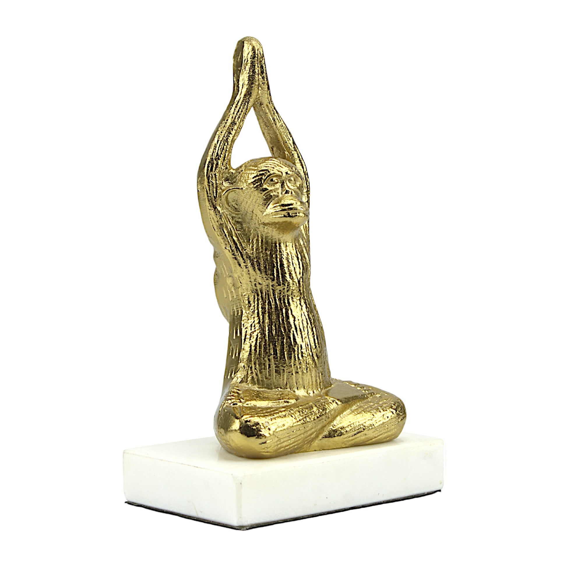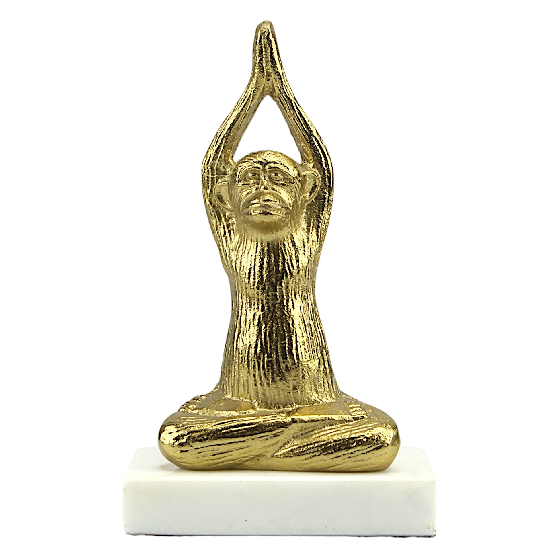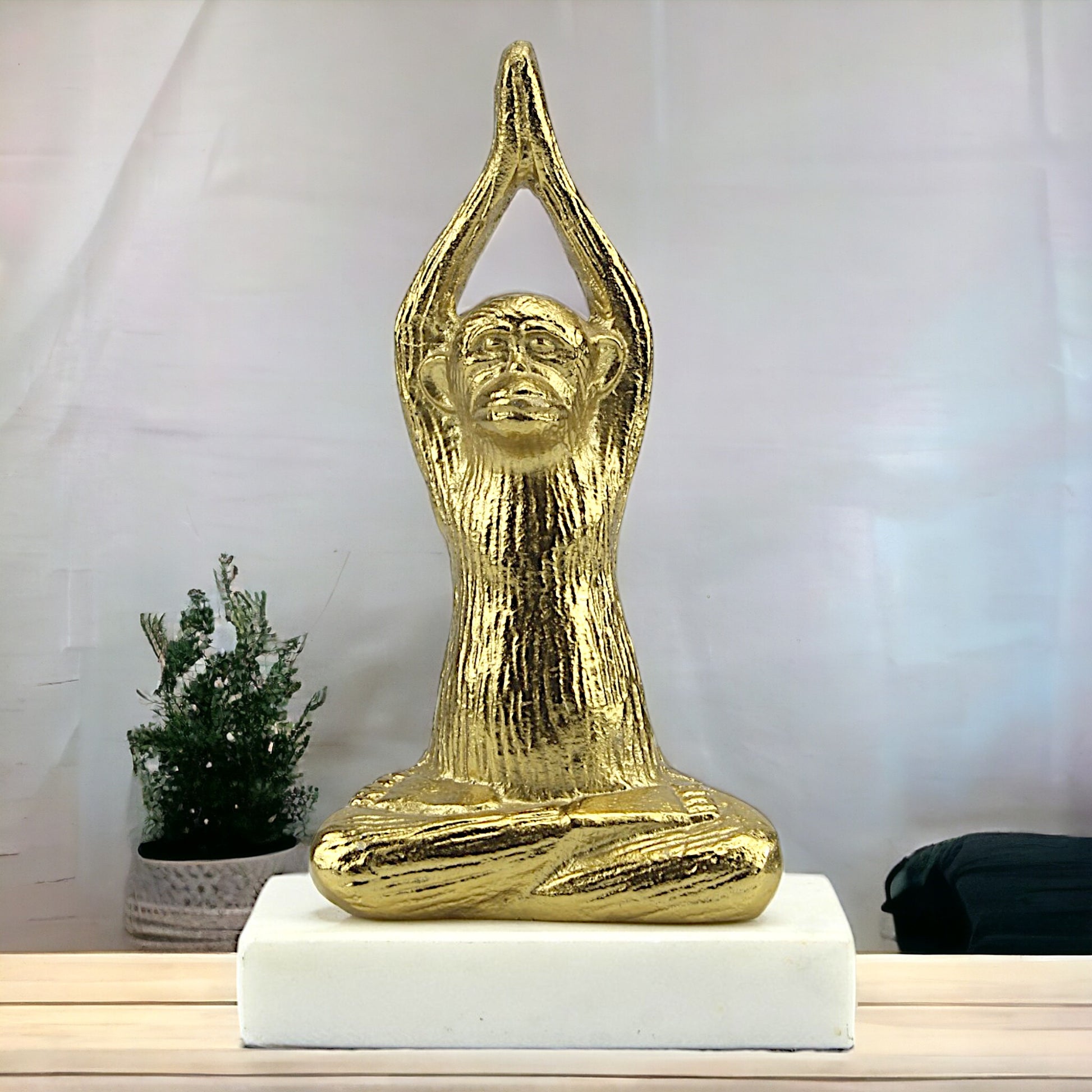 Golden Serenity: Handcrafted Yoga Monkey Sculpture on Marble Base