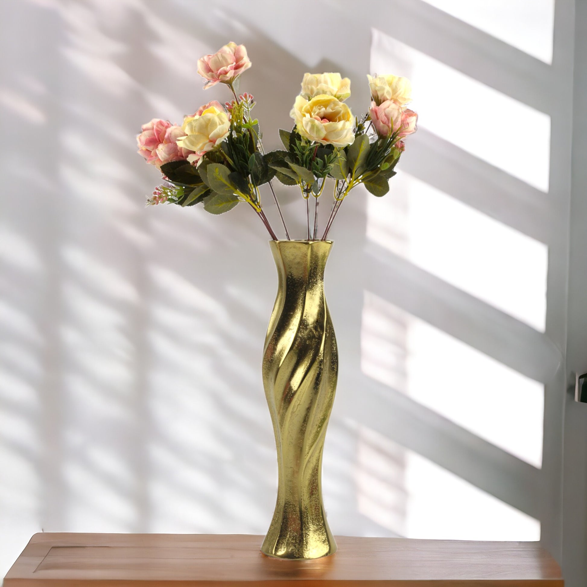 Indulge in timeless elegance with our Handcrafted Golden Aluminium Pillar-Shaped Flower Vase, meticulously designed to elevate your home decor. Each piece is crafted with artisanal precision, adding a touch of sophistication to any space.