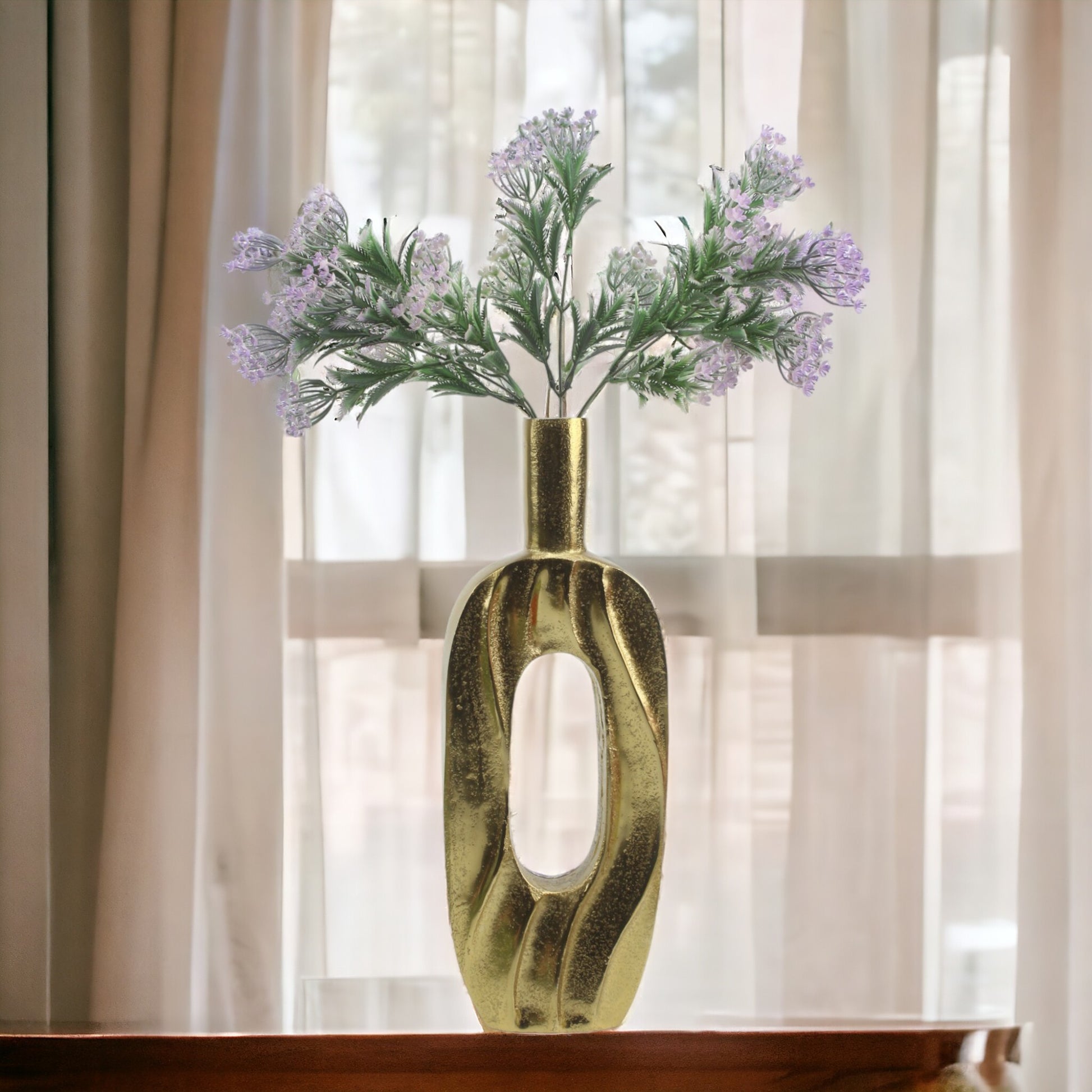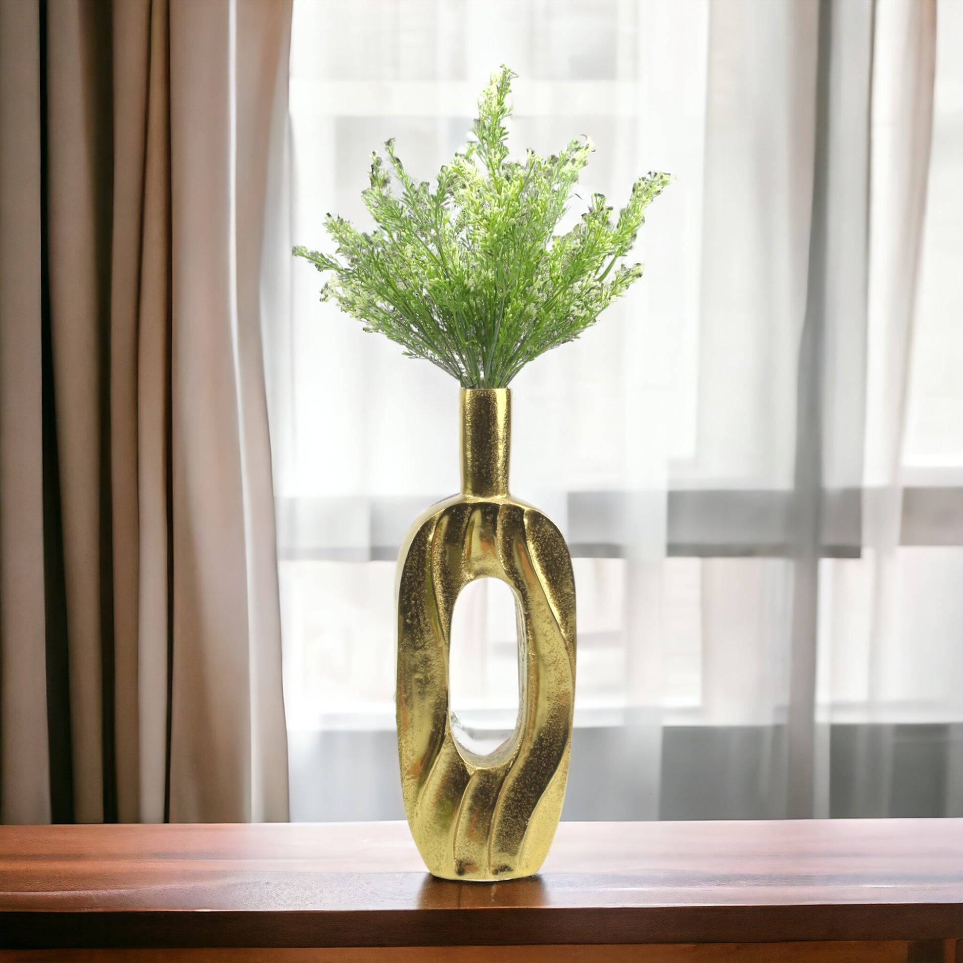 Introducing our handcrafted Golden Aluminium Rectangular Oval-Shaped Flower Vase, a masterpiece of elegance for your home décor. Elevate your living space with this exquisite accent, meticulously crafted to add sophistication to any room.