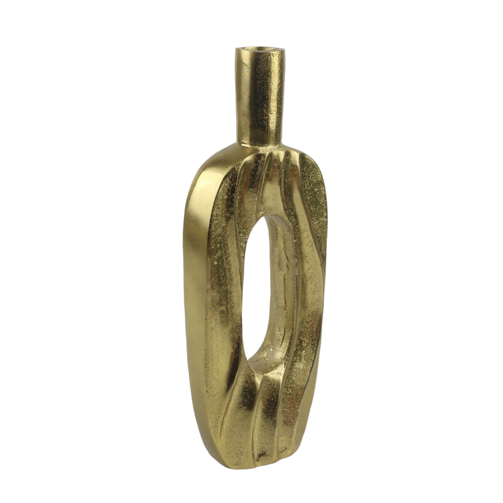 Handcrafted Golden Aluminium Rectangular Oval-Shaped Flower Vase: Exquisite Home Décor Accent