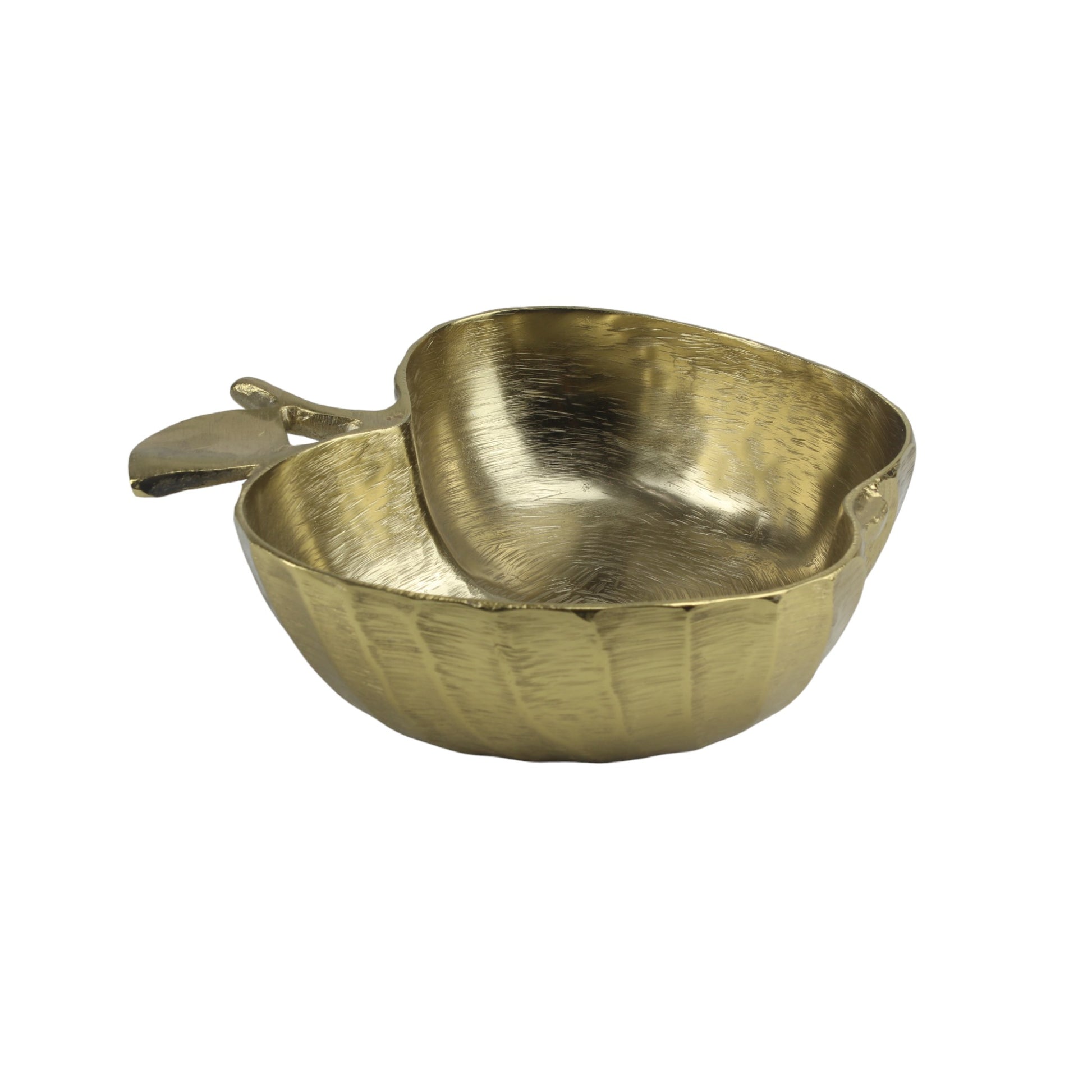 Handcrafted Golden Aluminum Apple Shaped Bowl: Luxe Décor Essential