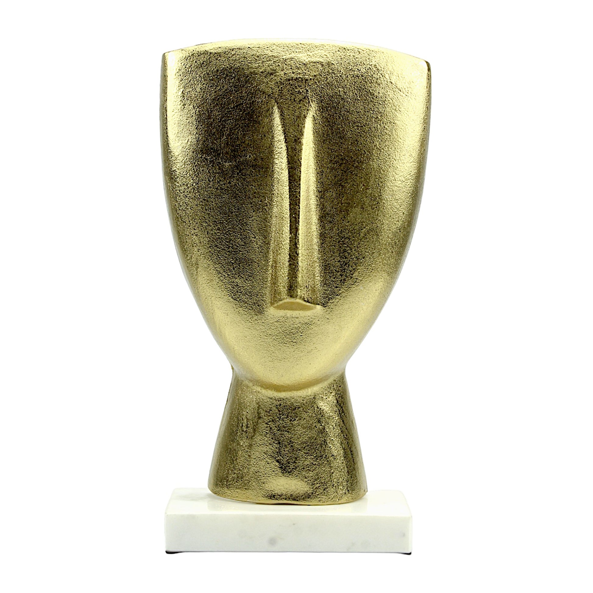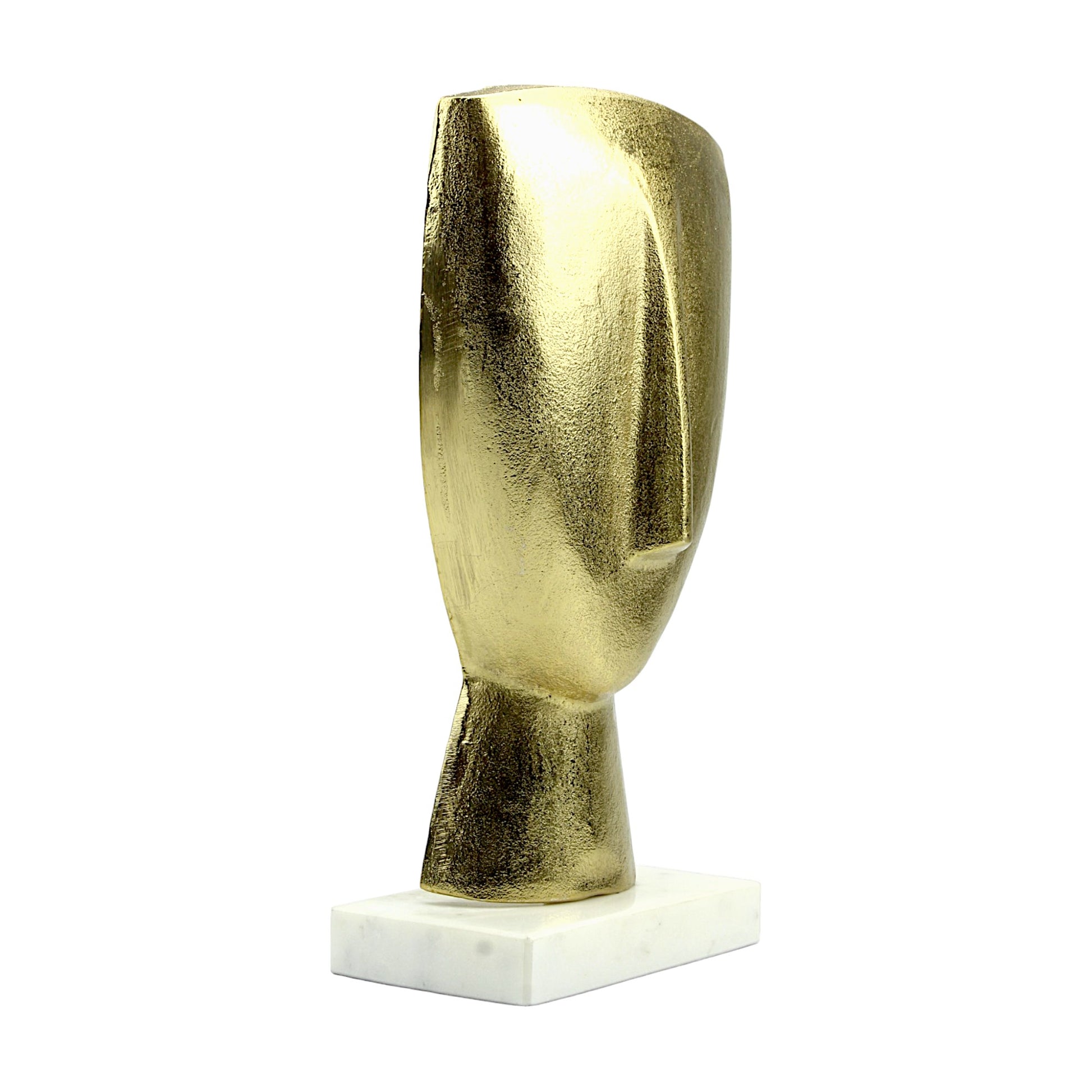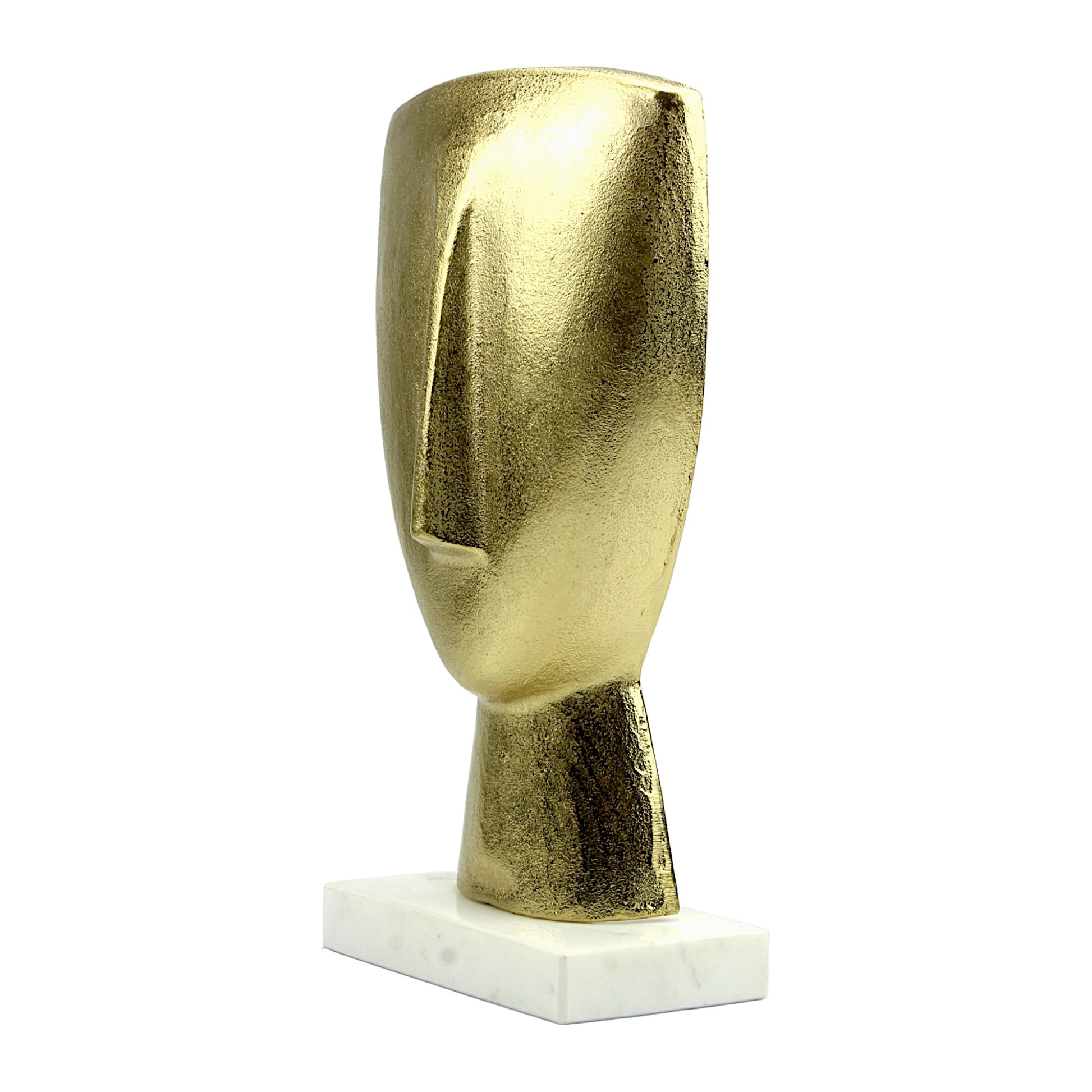 Handcrafted Golden Aluminum Face on Marble Base Sculpture: Unique Ornament for Elegant Décor