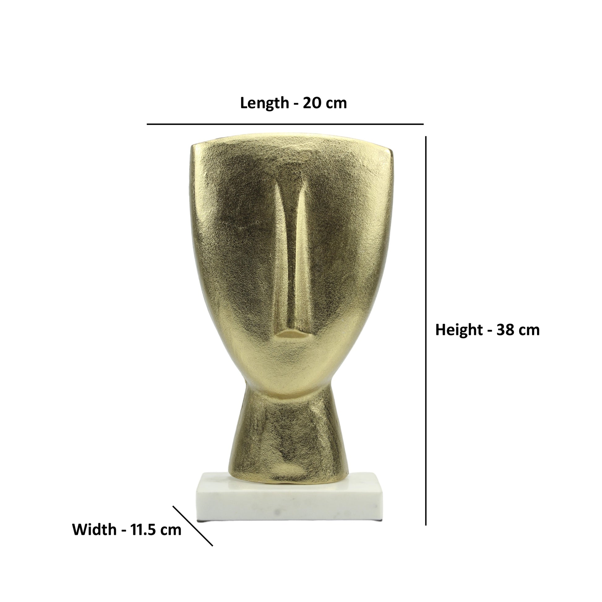 Transform your home decor with the unique beauty of our Handcrafted Golden Aluminum Face on Marble Base Sculpture. Elevate your space with elegance and style today!