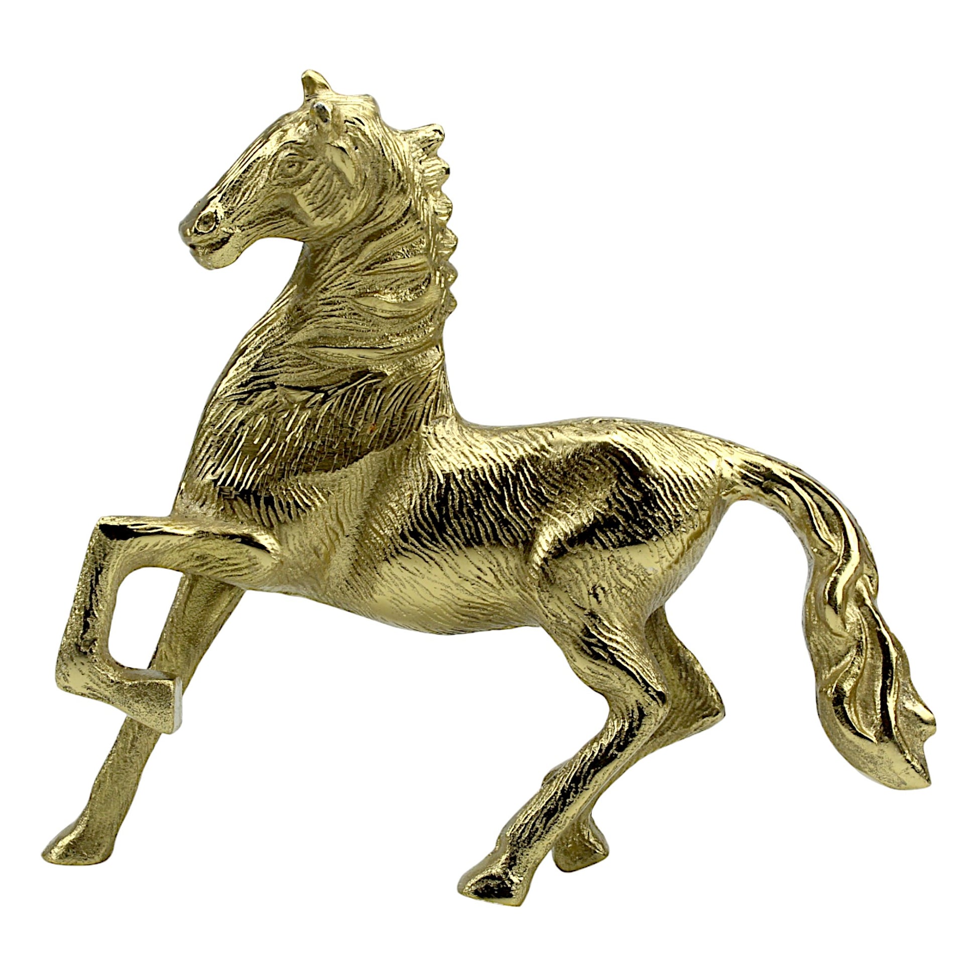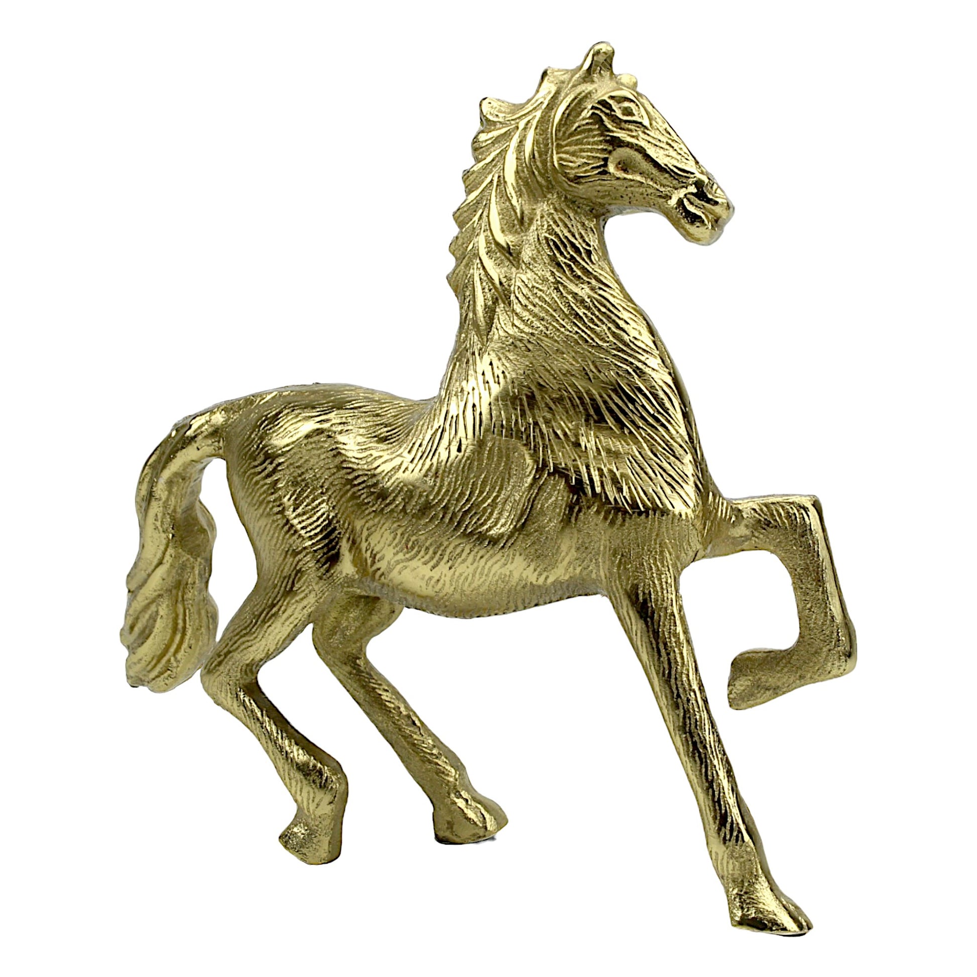 Transform your living space with the majestic elegance of our Handcrafted Golden Aluminum Horse Sculpture Ornament. Shop now and invite the spirit of the noble steed into your home decor.