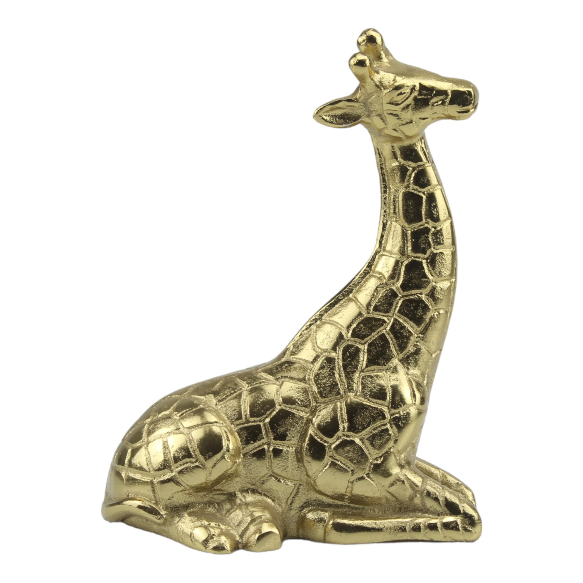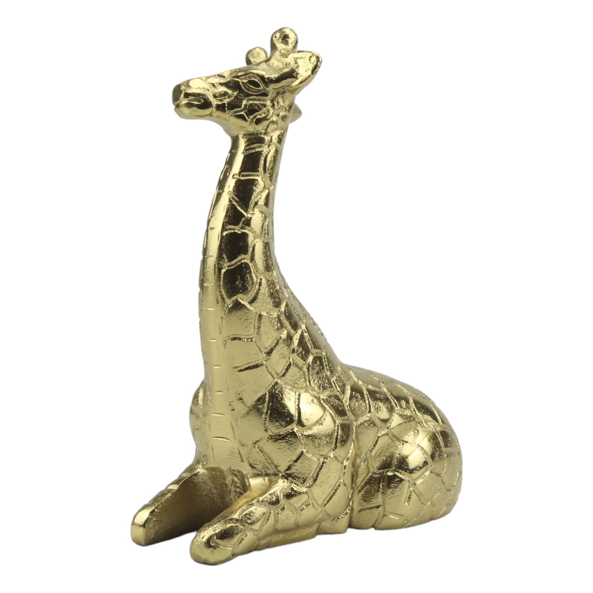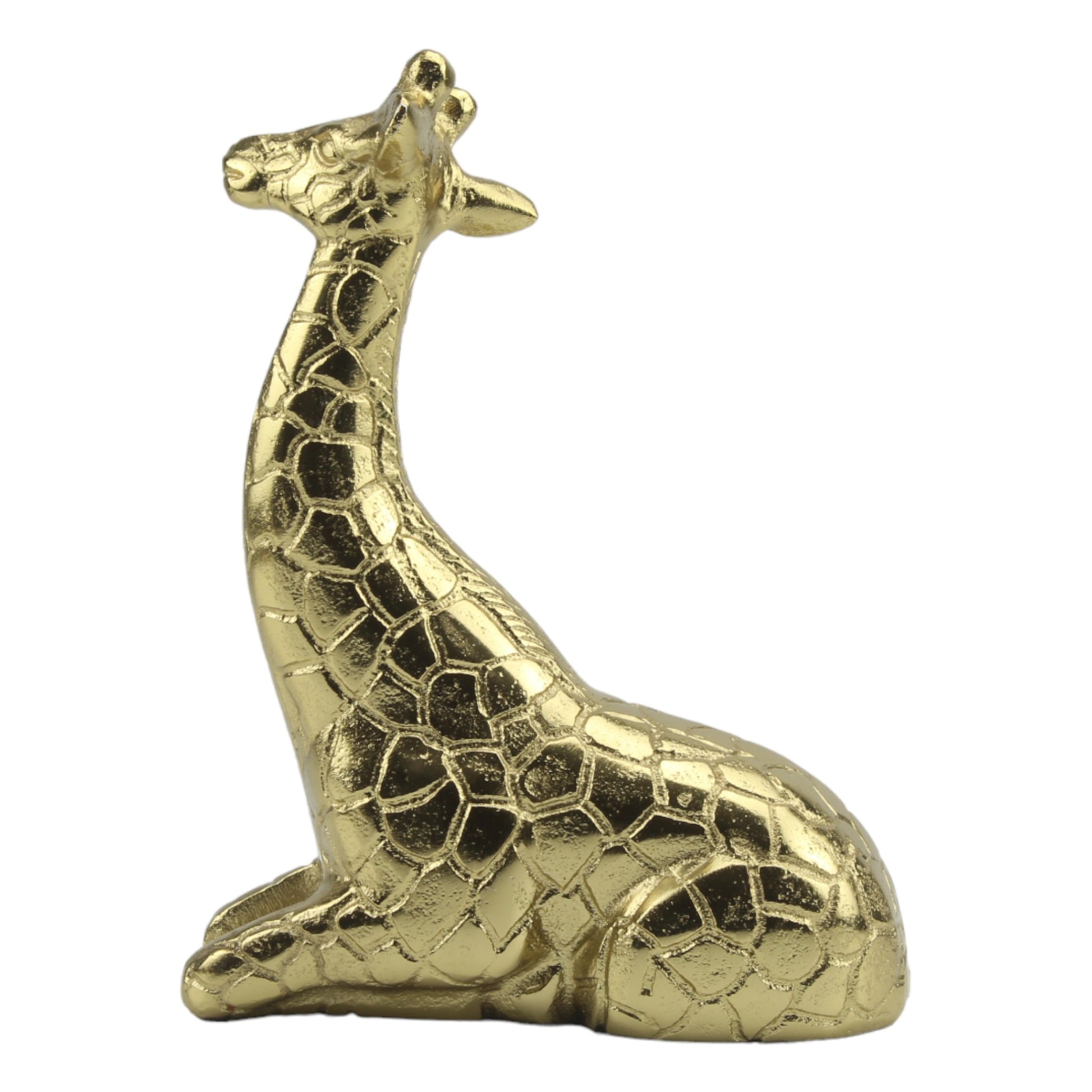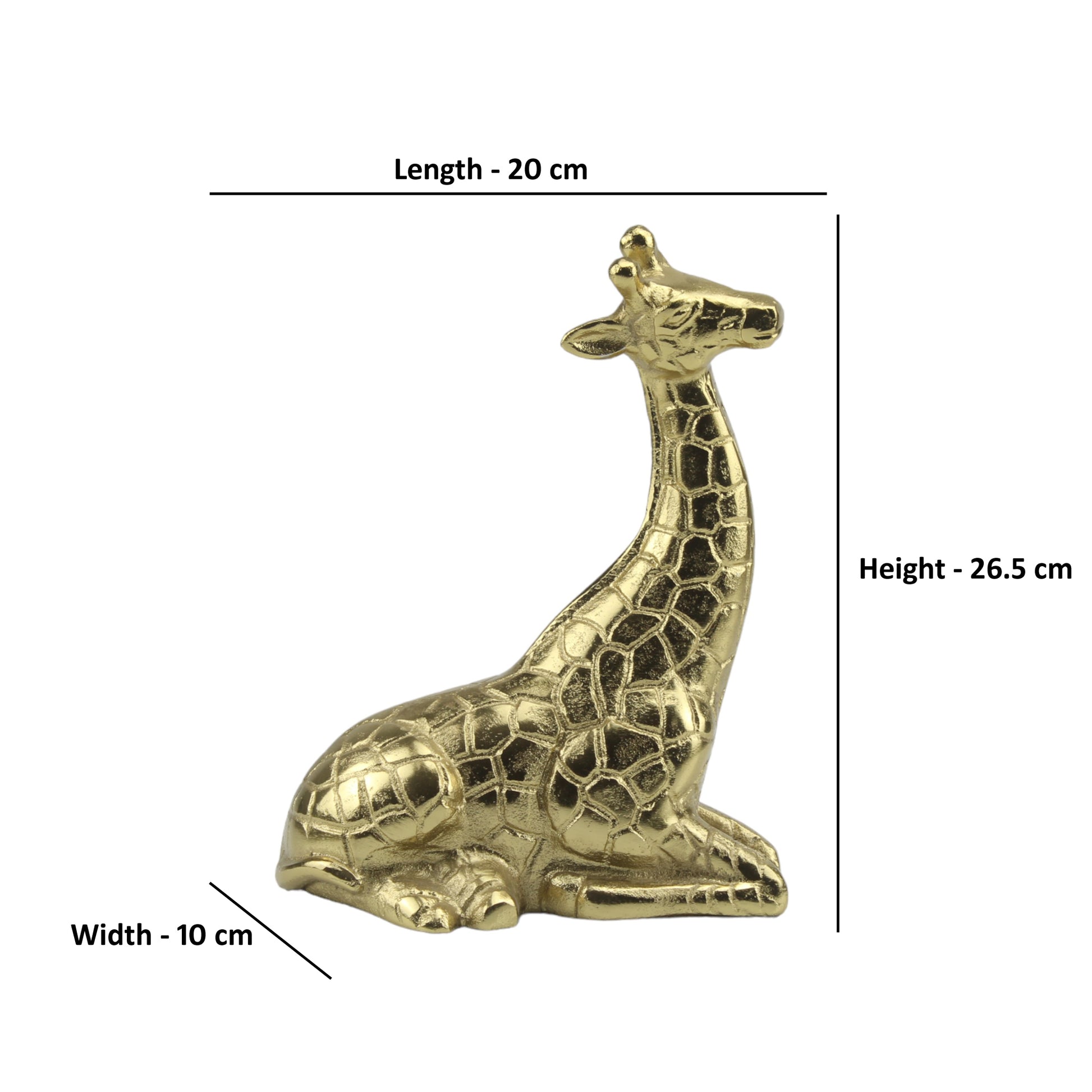 Handcrafted Golden Aluminum Seated Giraffe Decor Sculpture: Elegant Ornamental Accent