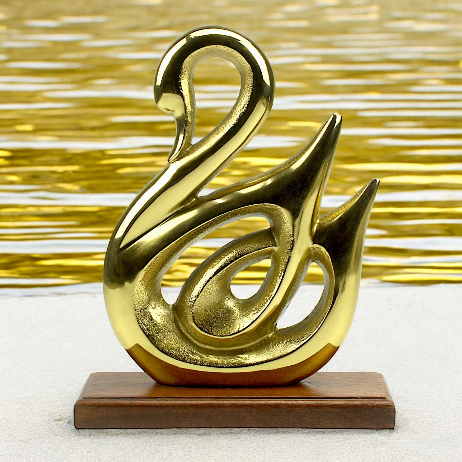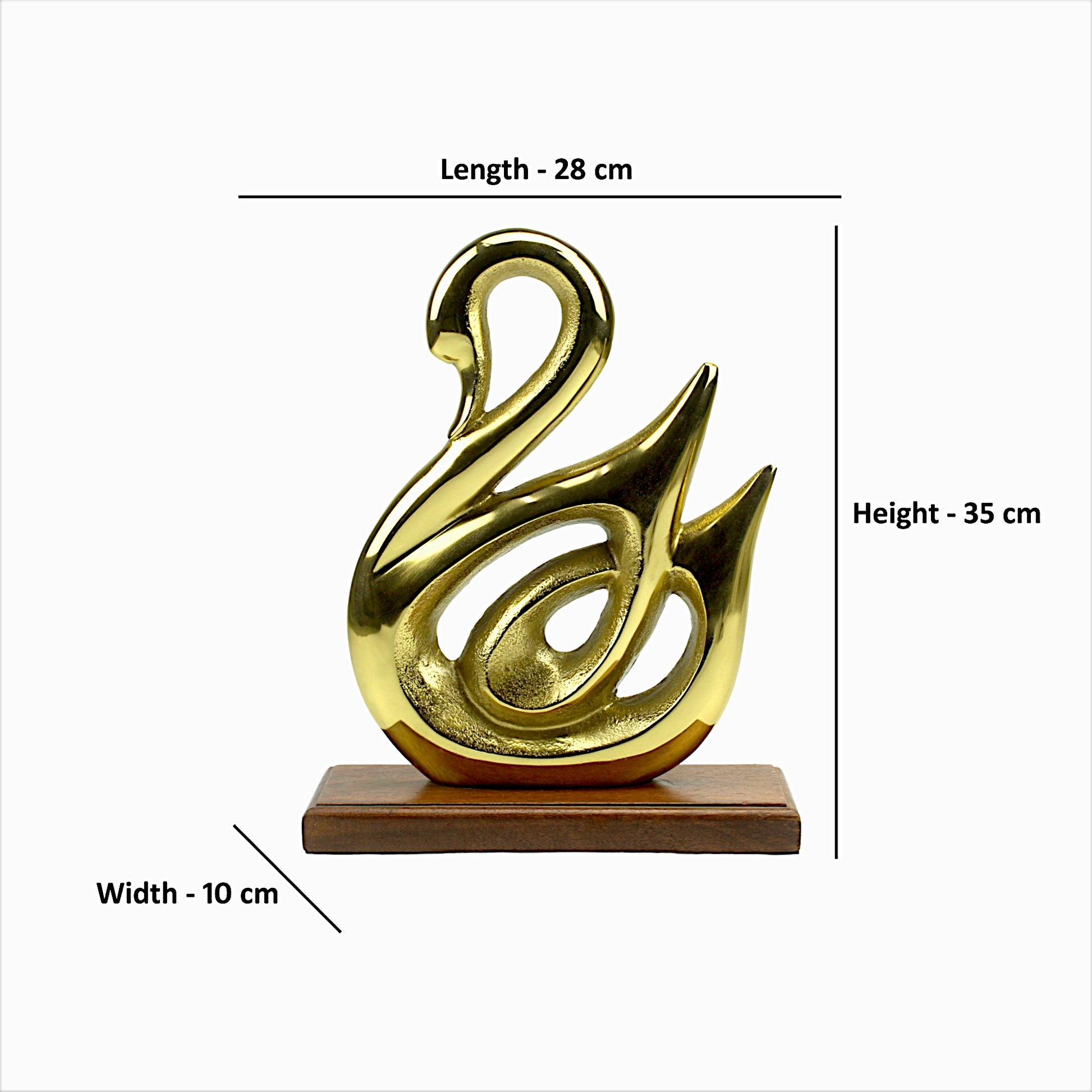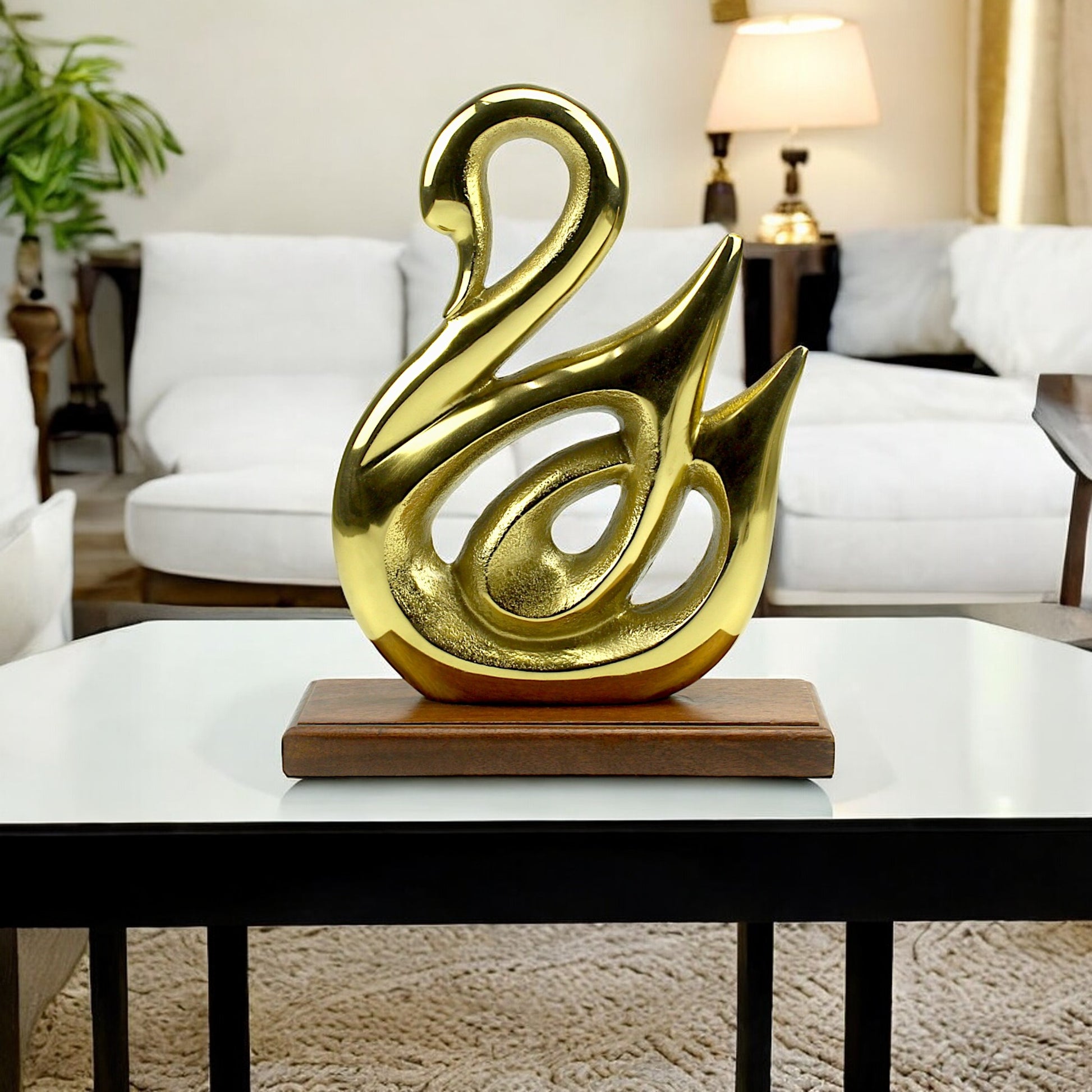 Elevate your home decor with our exquisite Handcrafted Golden Aluminum Swan Sculpture, beautifully poised atop a luxurious wood base. This stunning piece exudes timeless elegance and sophistication, adding a touch of grace to any space.