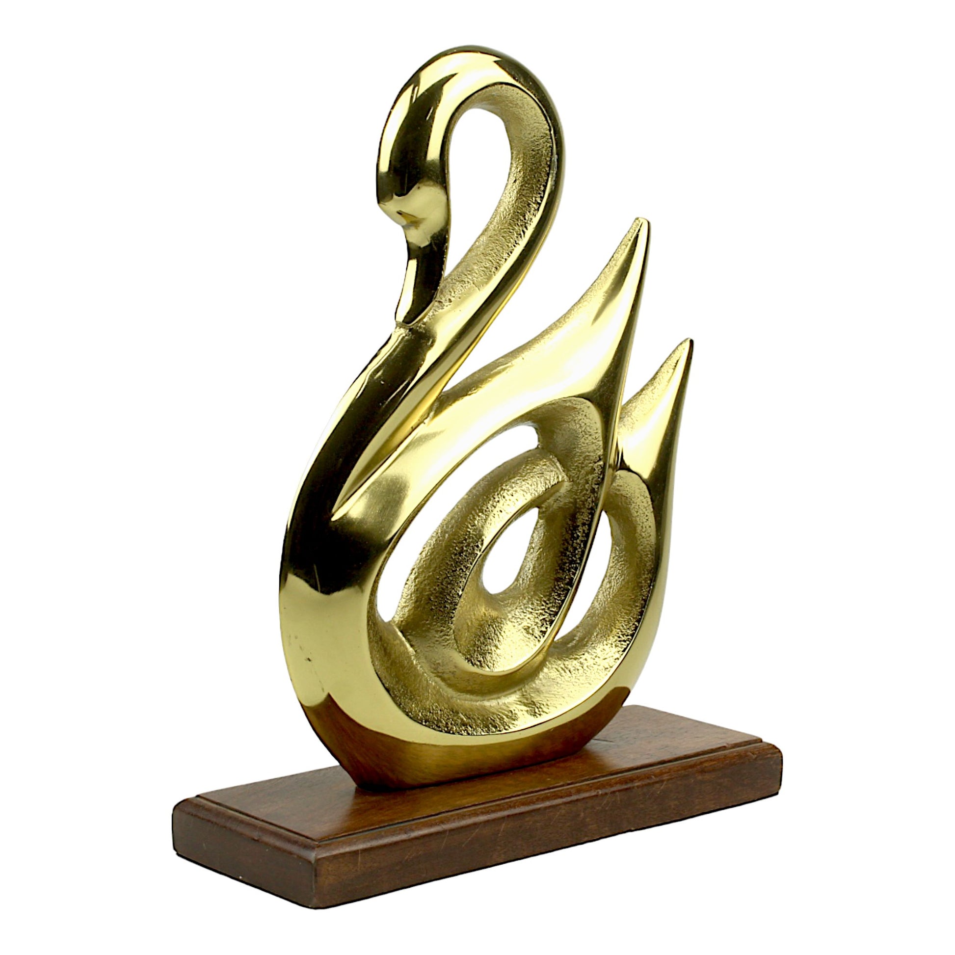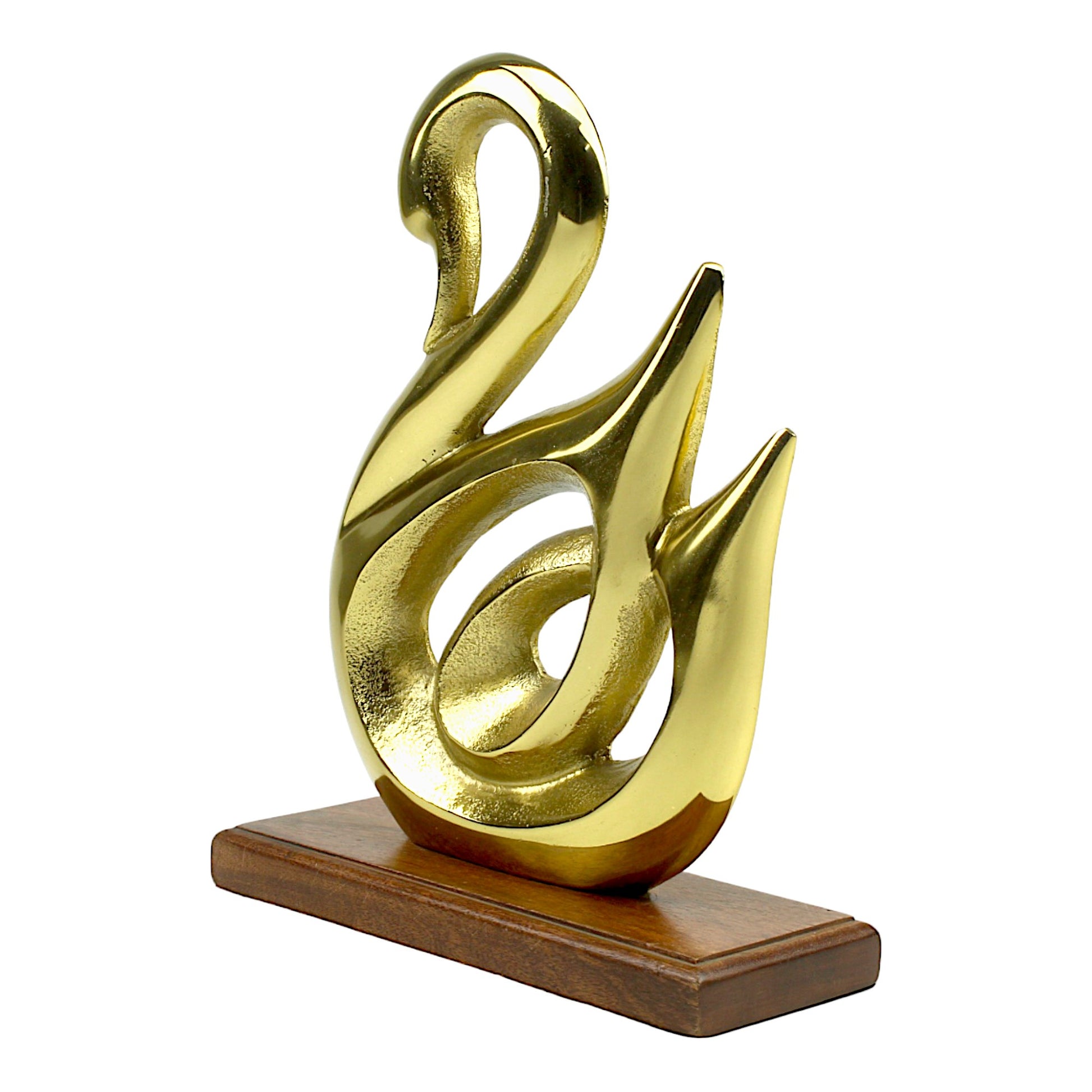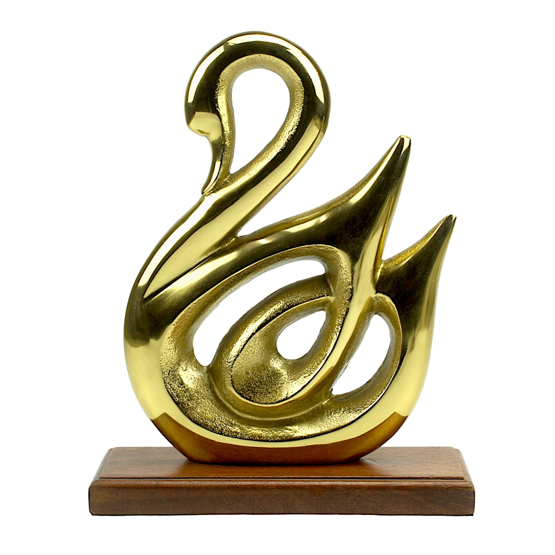 Elevate your home decor with our exquisite Handcrafted Golden Aluminum Swan Sculpture, beautifully poised atop a luxurious wood base. This stunning piece exudes timeless elegance and sophistication, adding a touch of grace to any space.