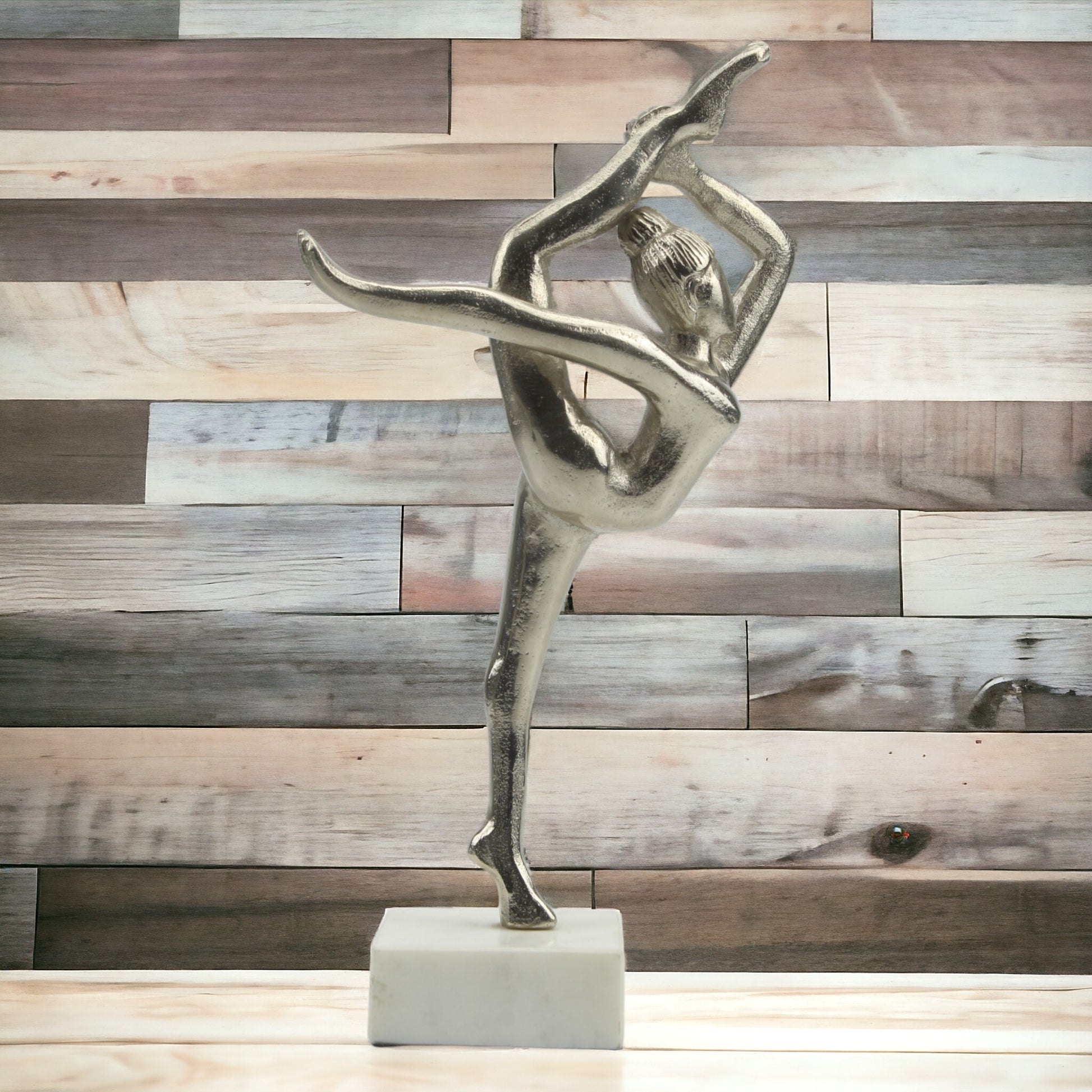 Elevate the tranquility of your wellness spaces with our Handcrafted Silver Aluminum Yoga Lady Sculpture Ornament, a serene decor accent that embodies grace and mindfulness.