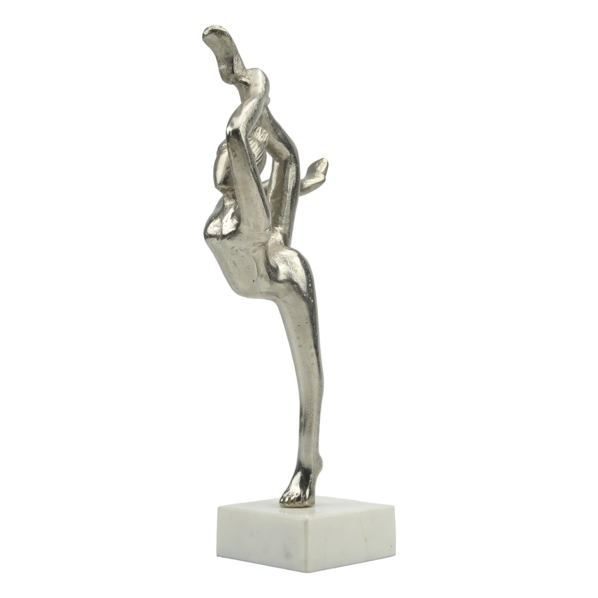 Handcrafted Silver Aluminum Yoga Lady Sculpture Ornament: Serene Decor Accent for Wellness Spaces