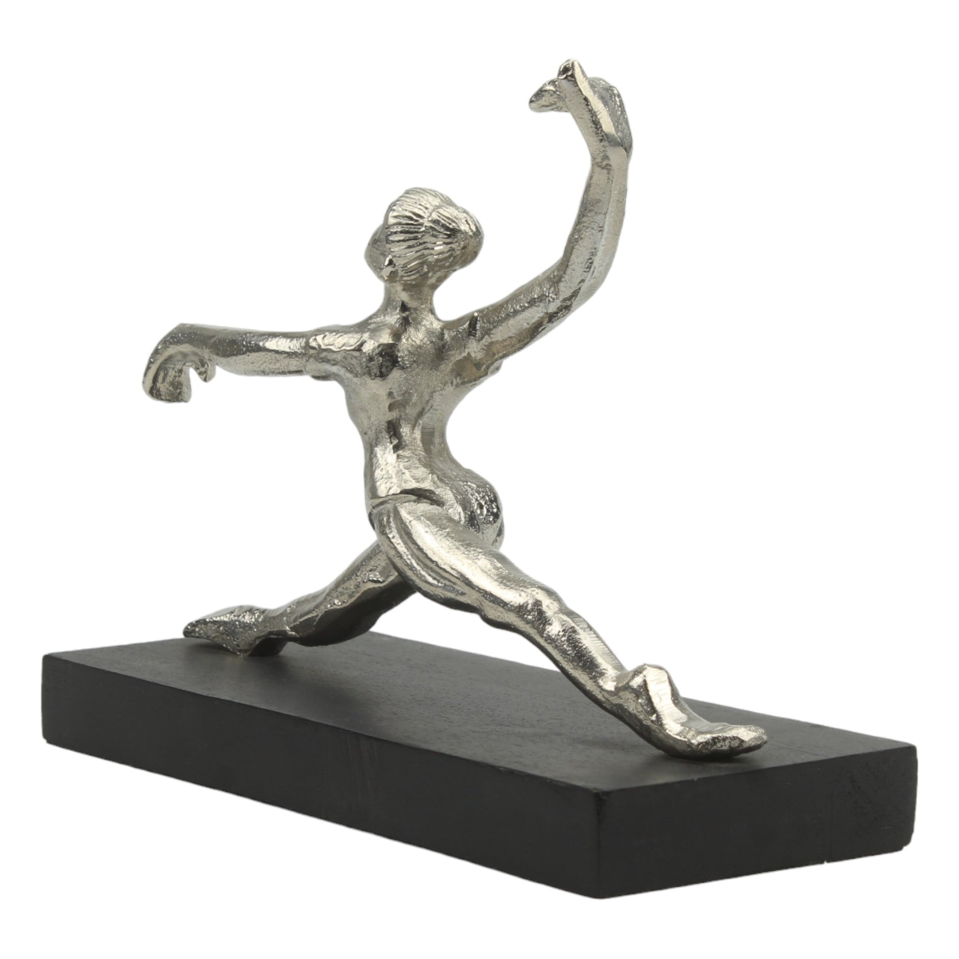Handcrafted Silver Lady Yoga Sculpture: Elegant Ornament on Black Wood Base