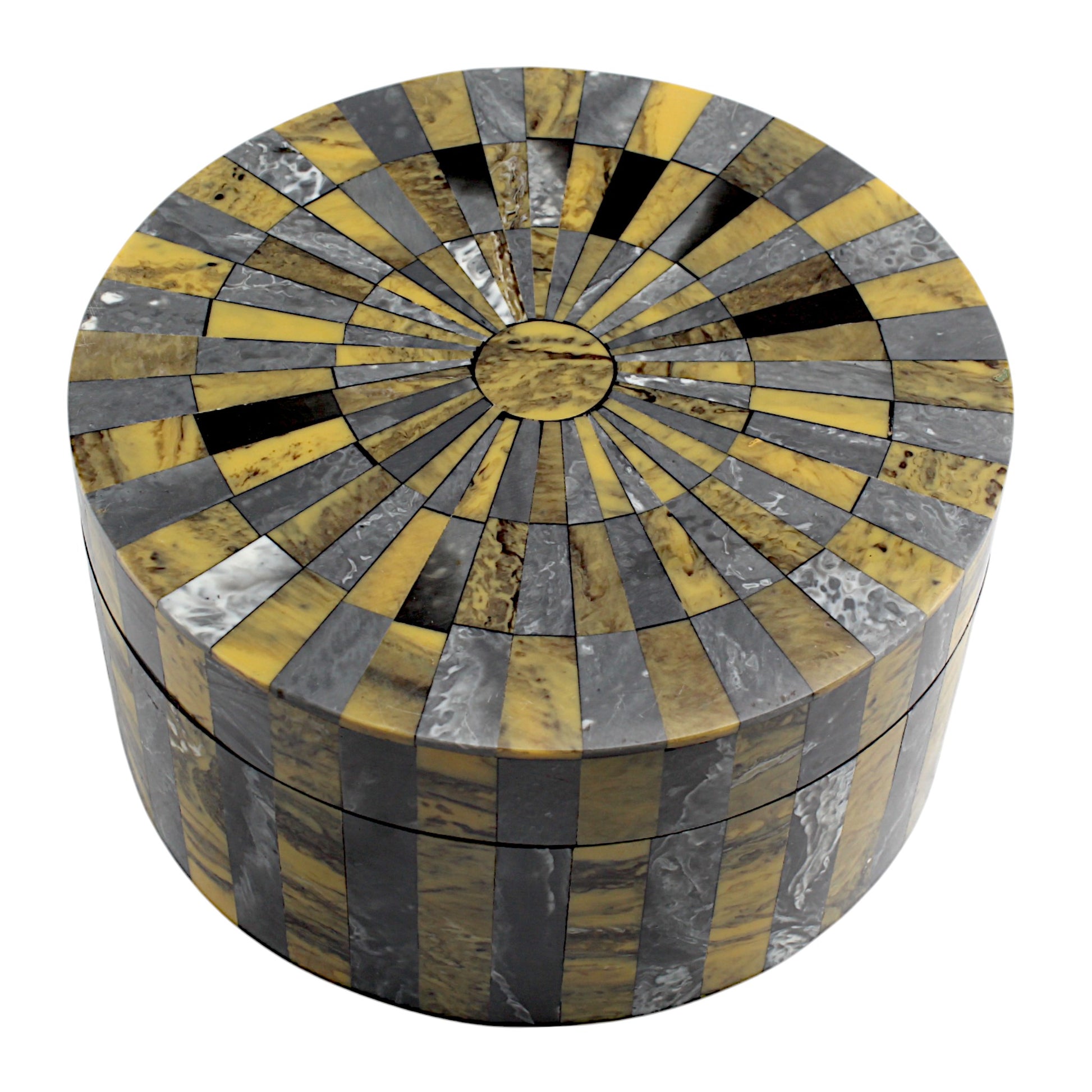 Handmade Black & Brown Bone Trinket Box – Round with Star Contemporary Design, Elegant Storage Solution