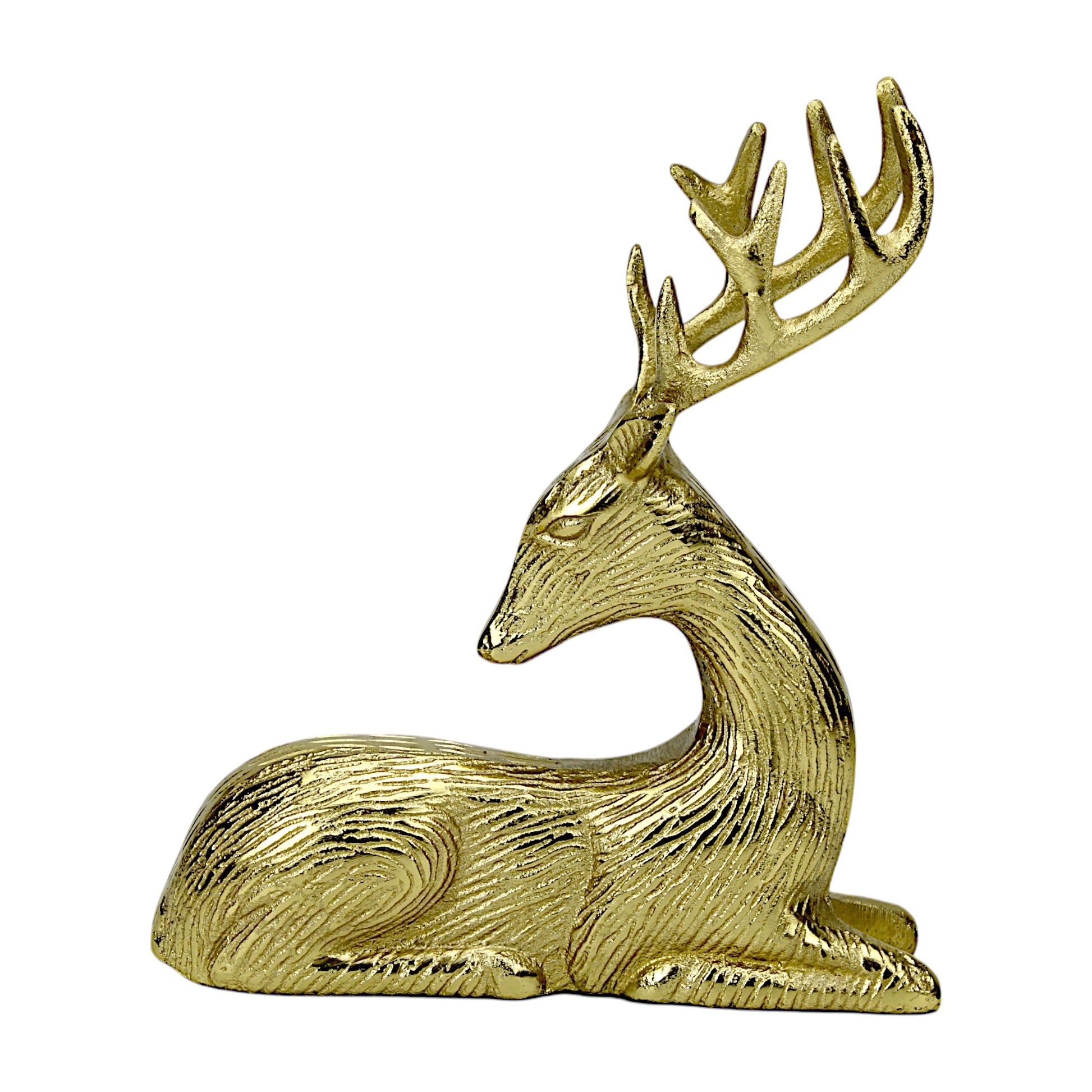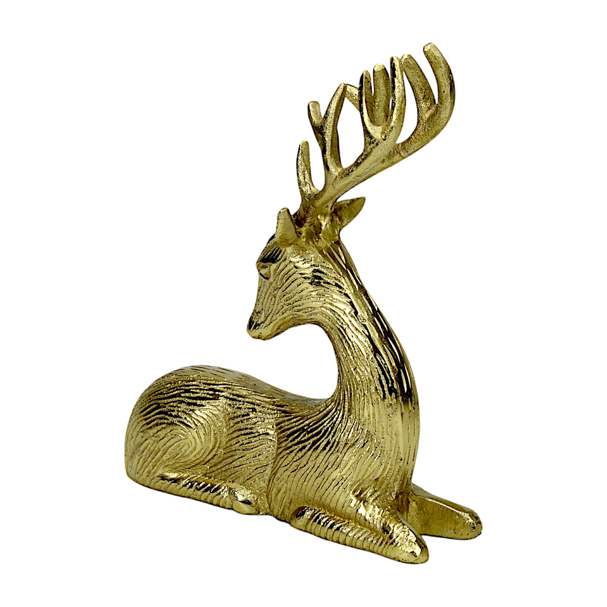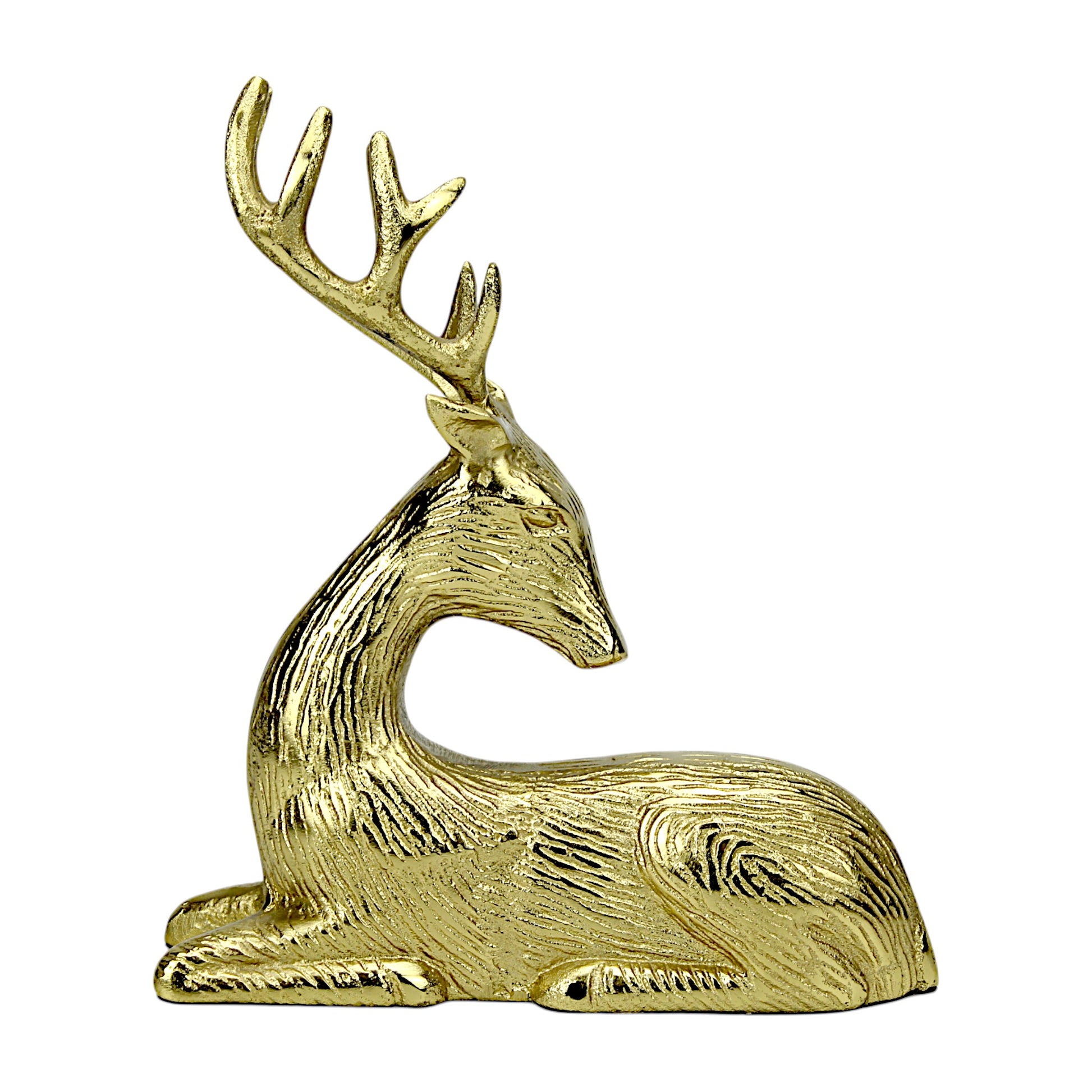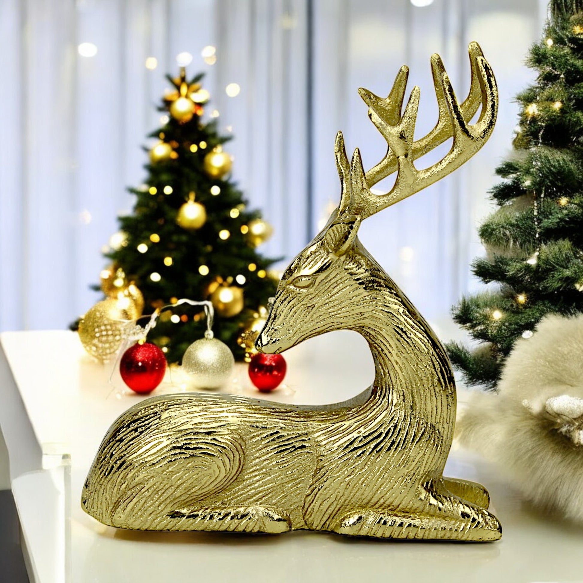Golden Aluminum Handcrafted Sitting Deer – Elegant Christmas & Holiday Decor | Hind Decor
