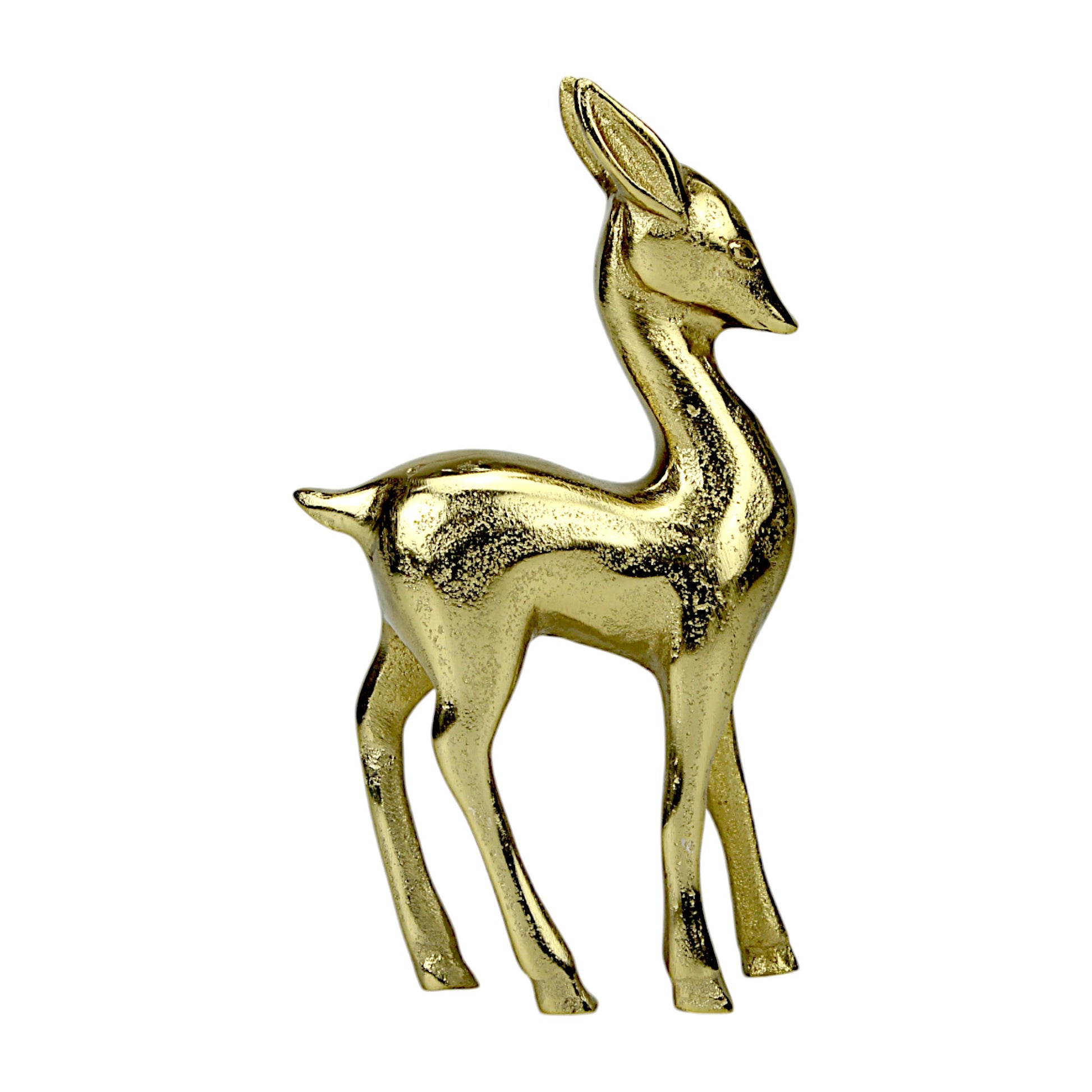 Golden Aluminum Handcrafted Christmas Minimalistic Standing Deer – Elegant Holiday Decor | Hind Decor