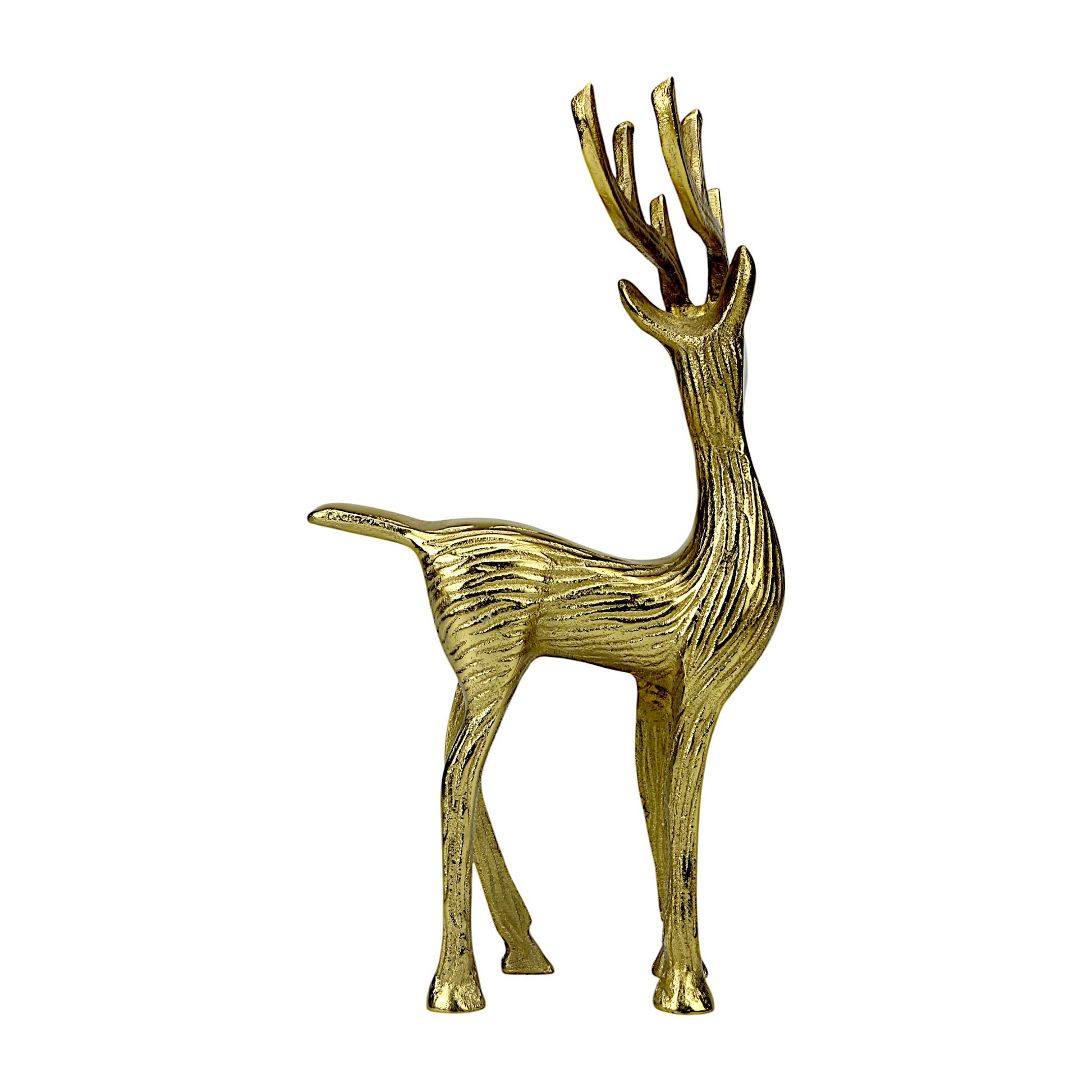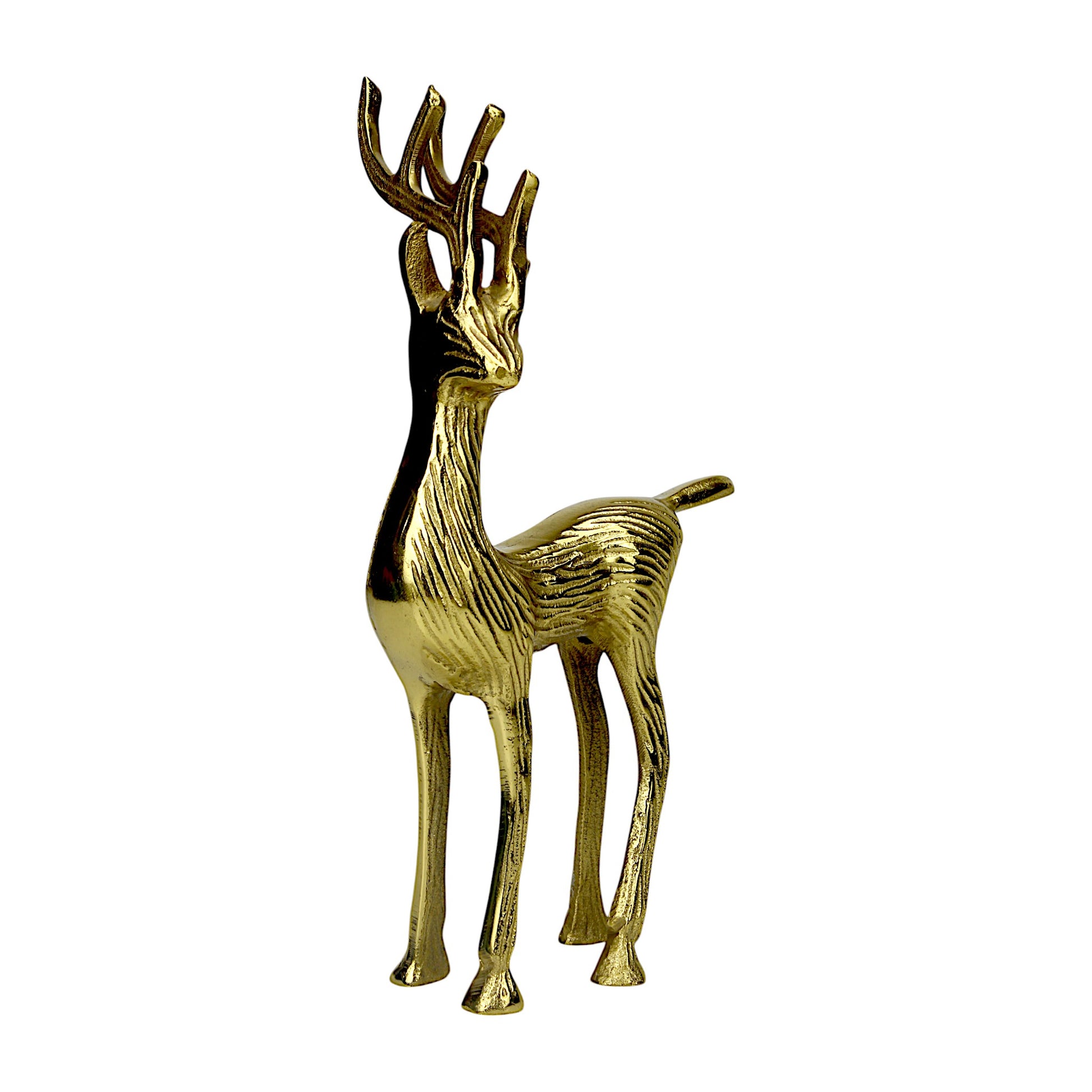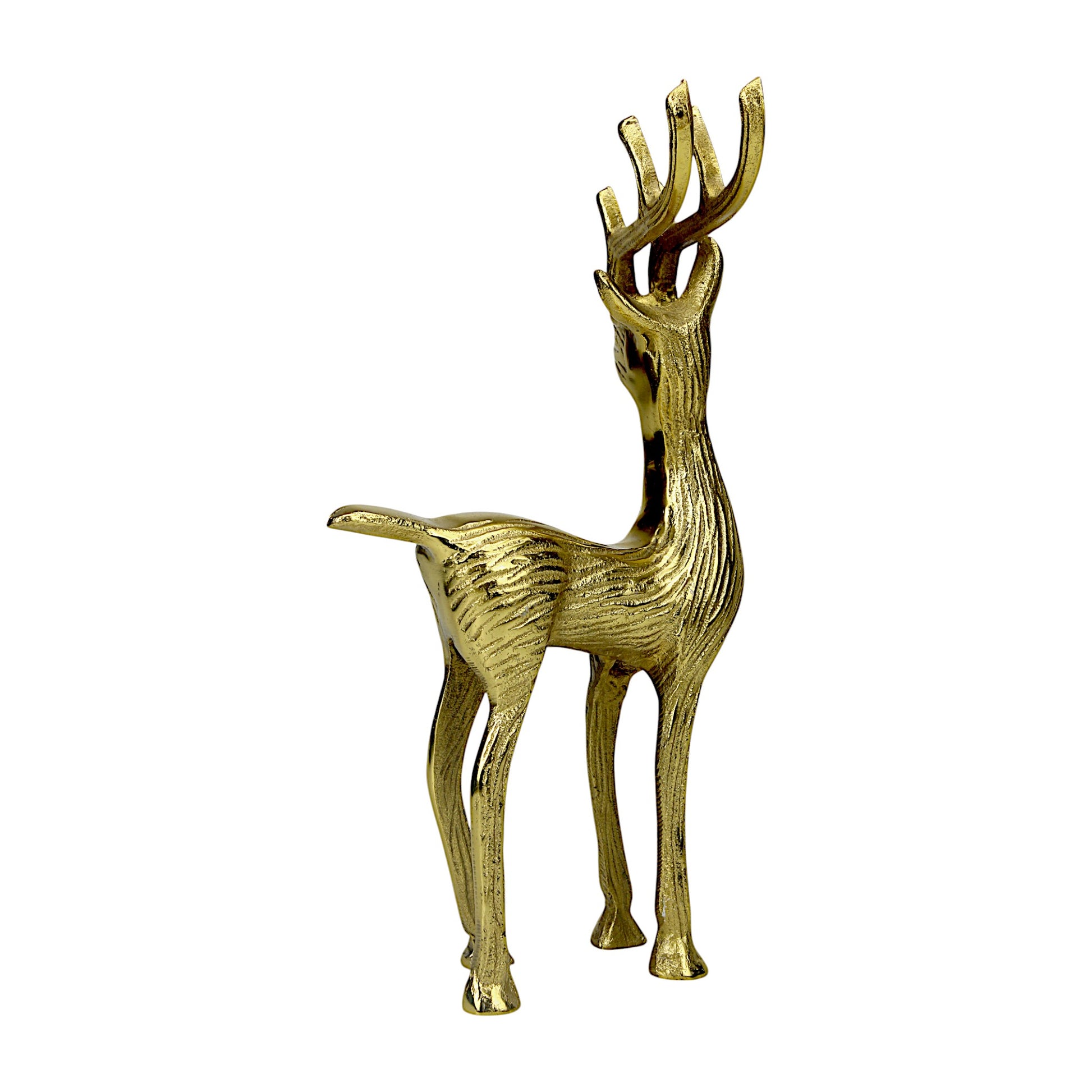 Golden Aluminum Handcrafted Christmas Minimalistic Standing Deer – Elegant Holiday Decor | Hind Decor