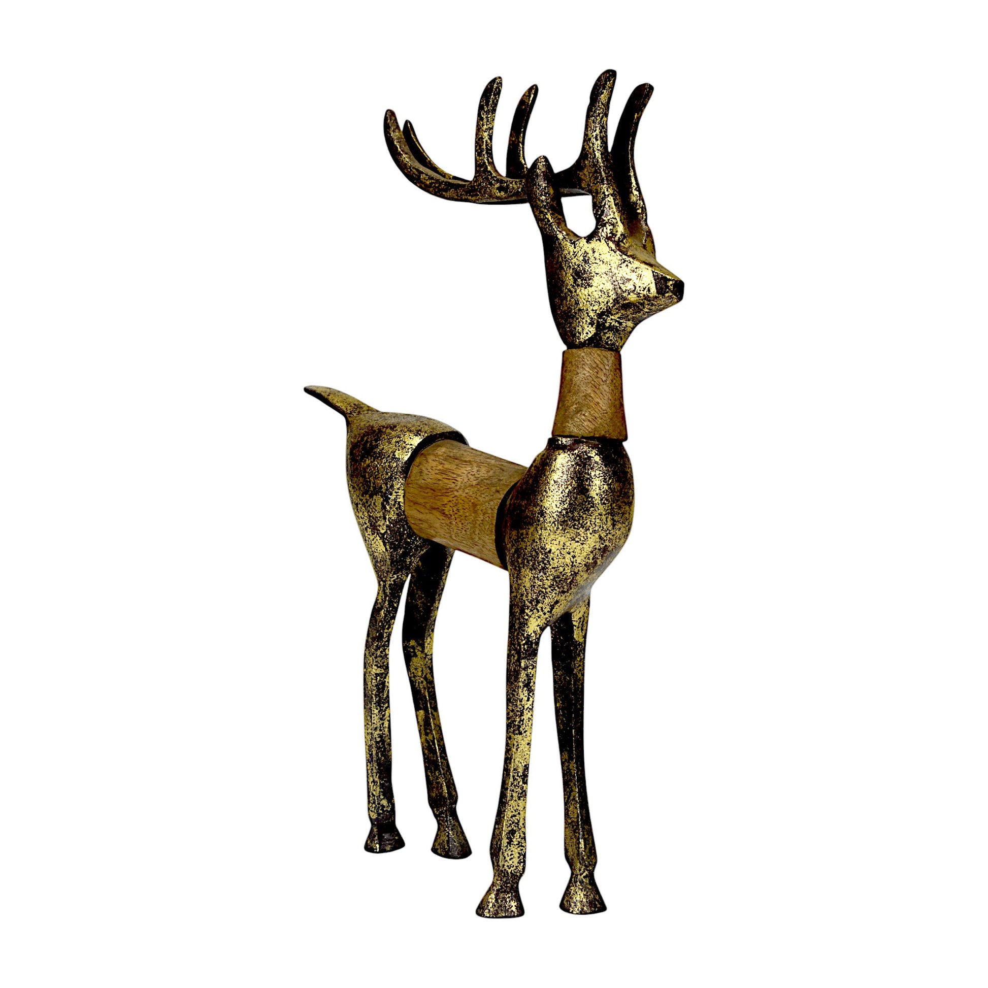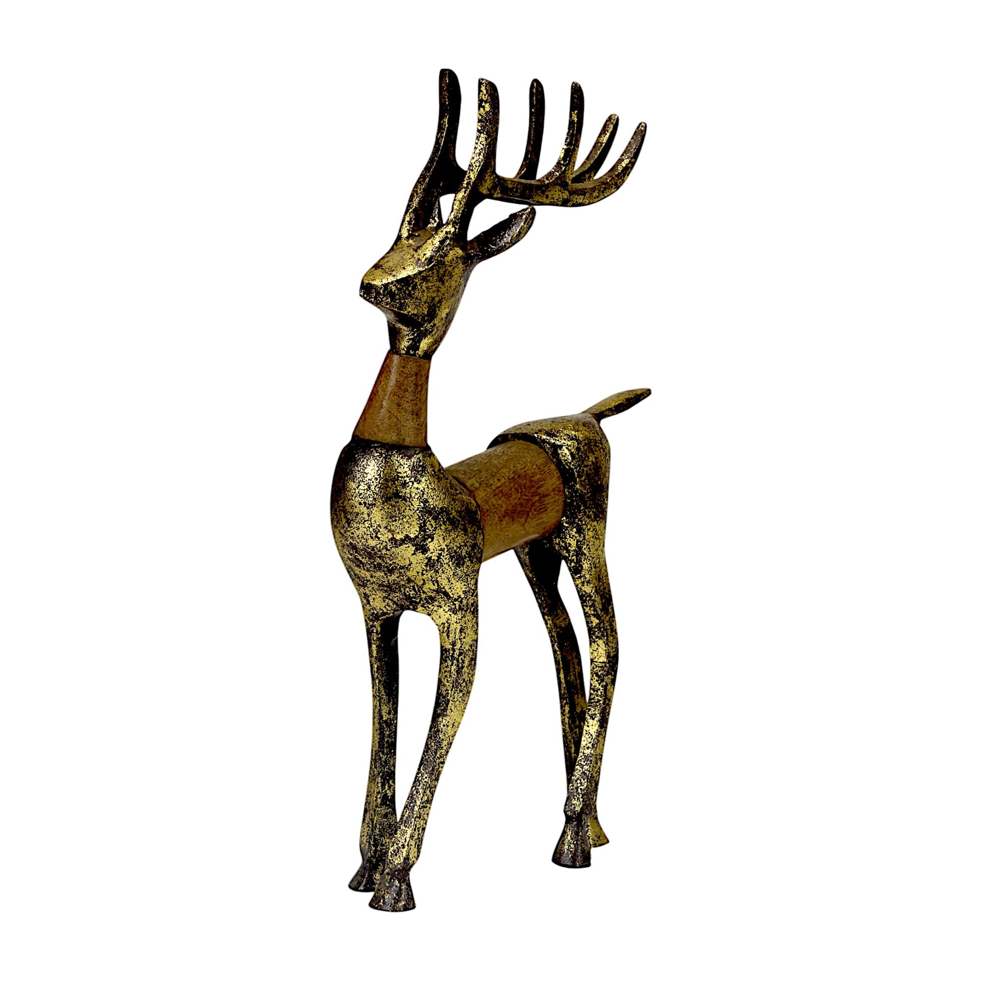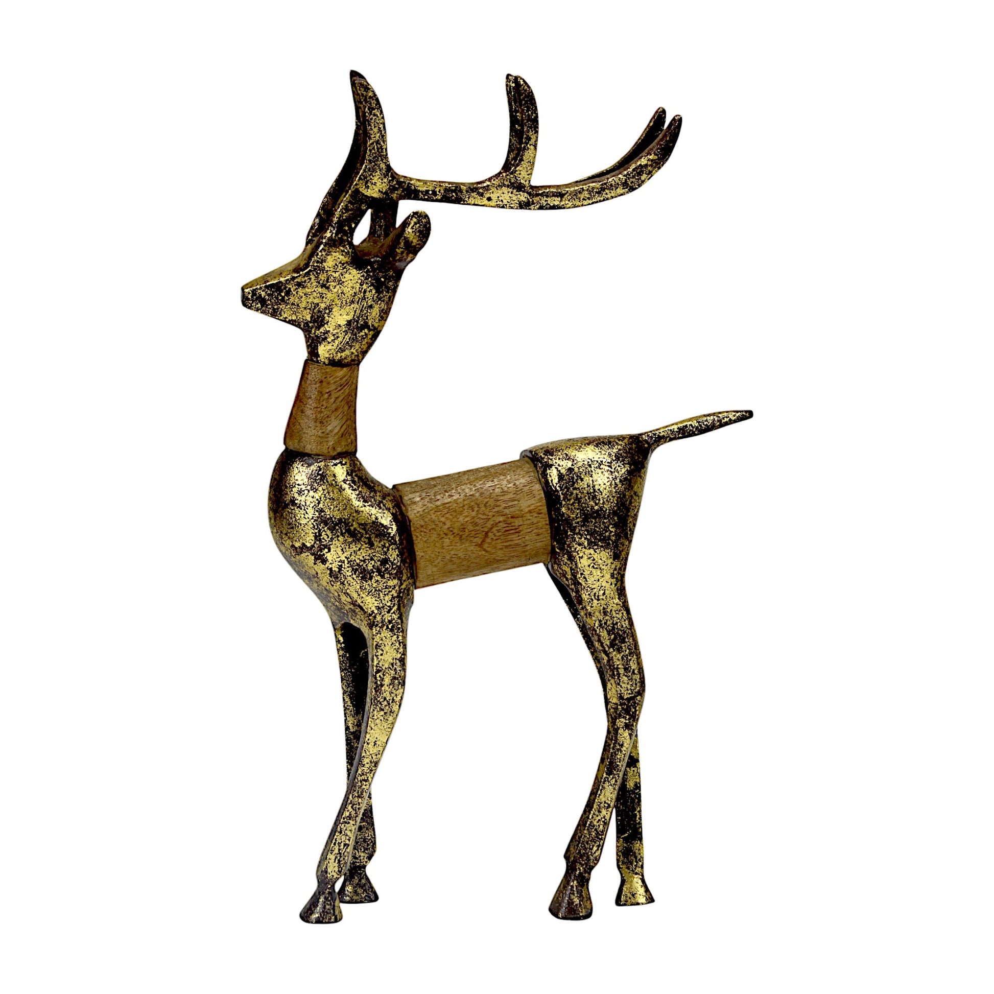 Golden Handcrafted Aluminum Christmas Reindeer with Wooden Finish on Back – Elegant Holiday Decor | Hind Decor