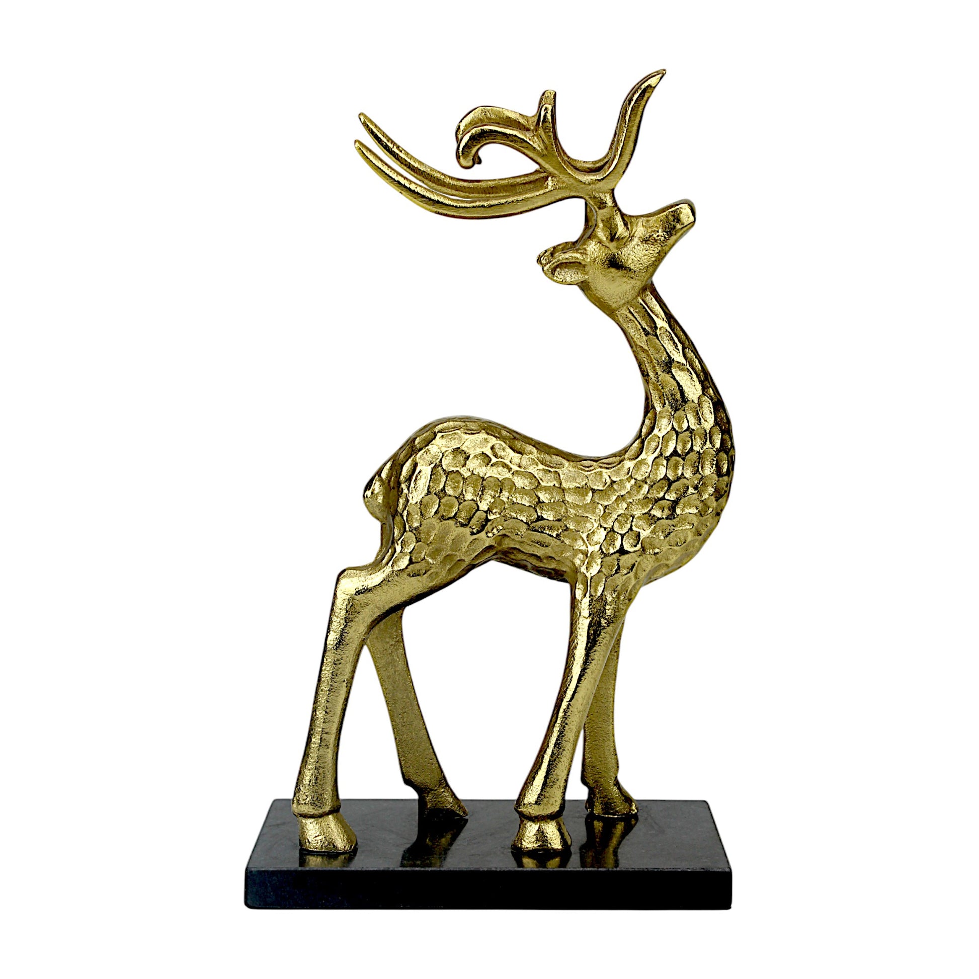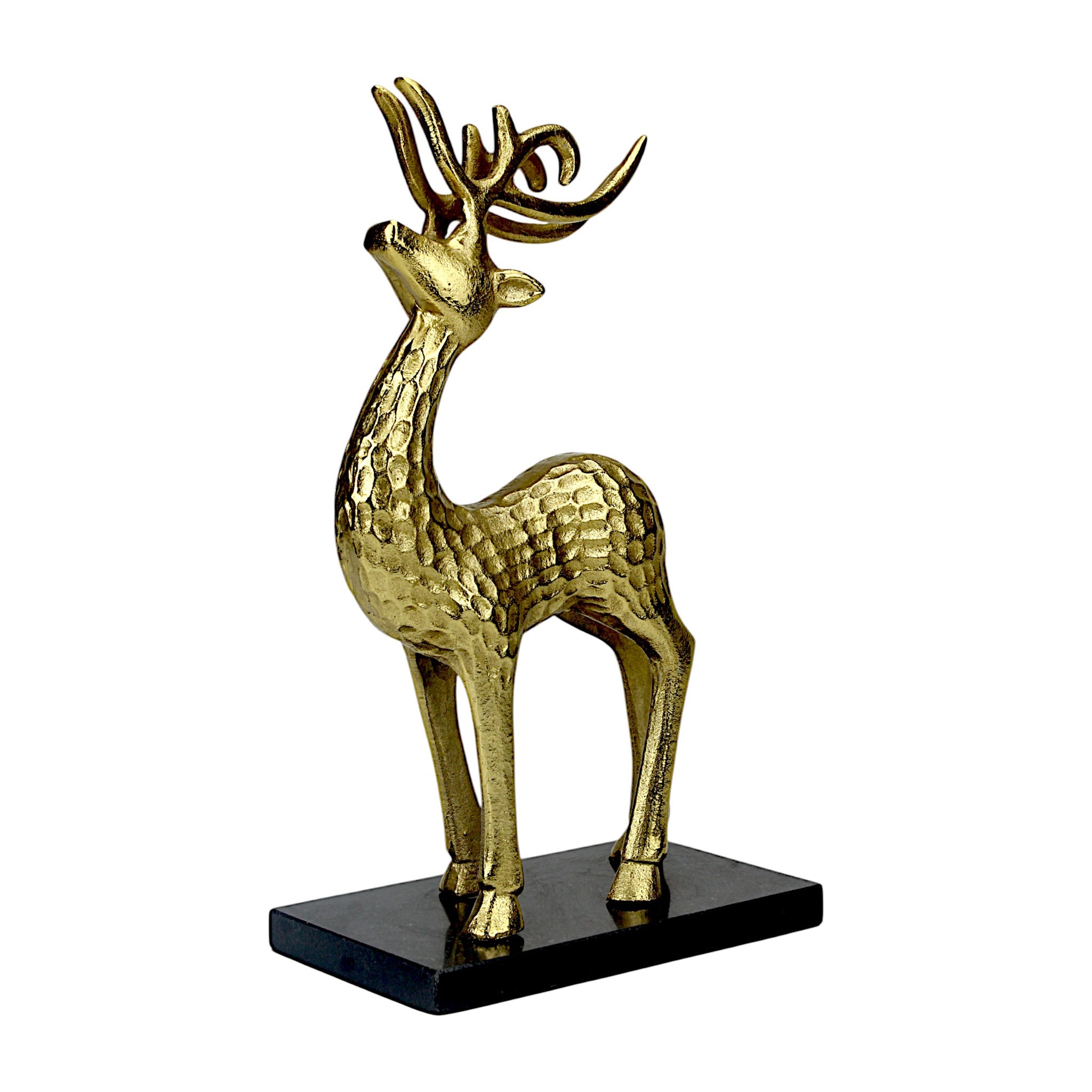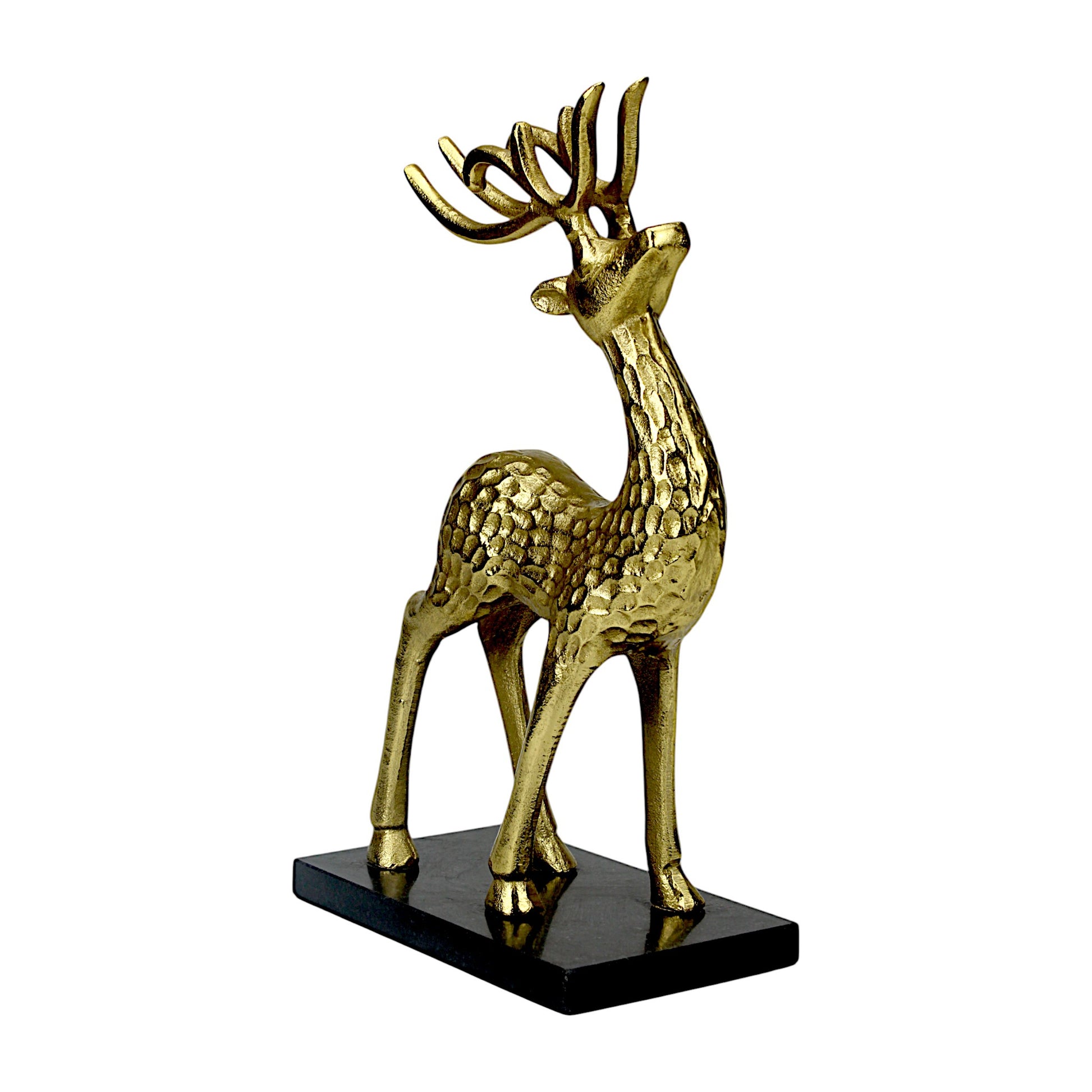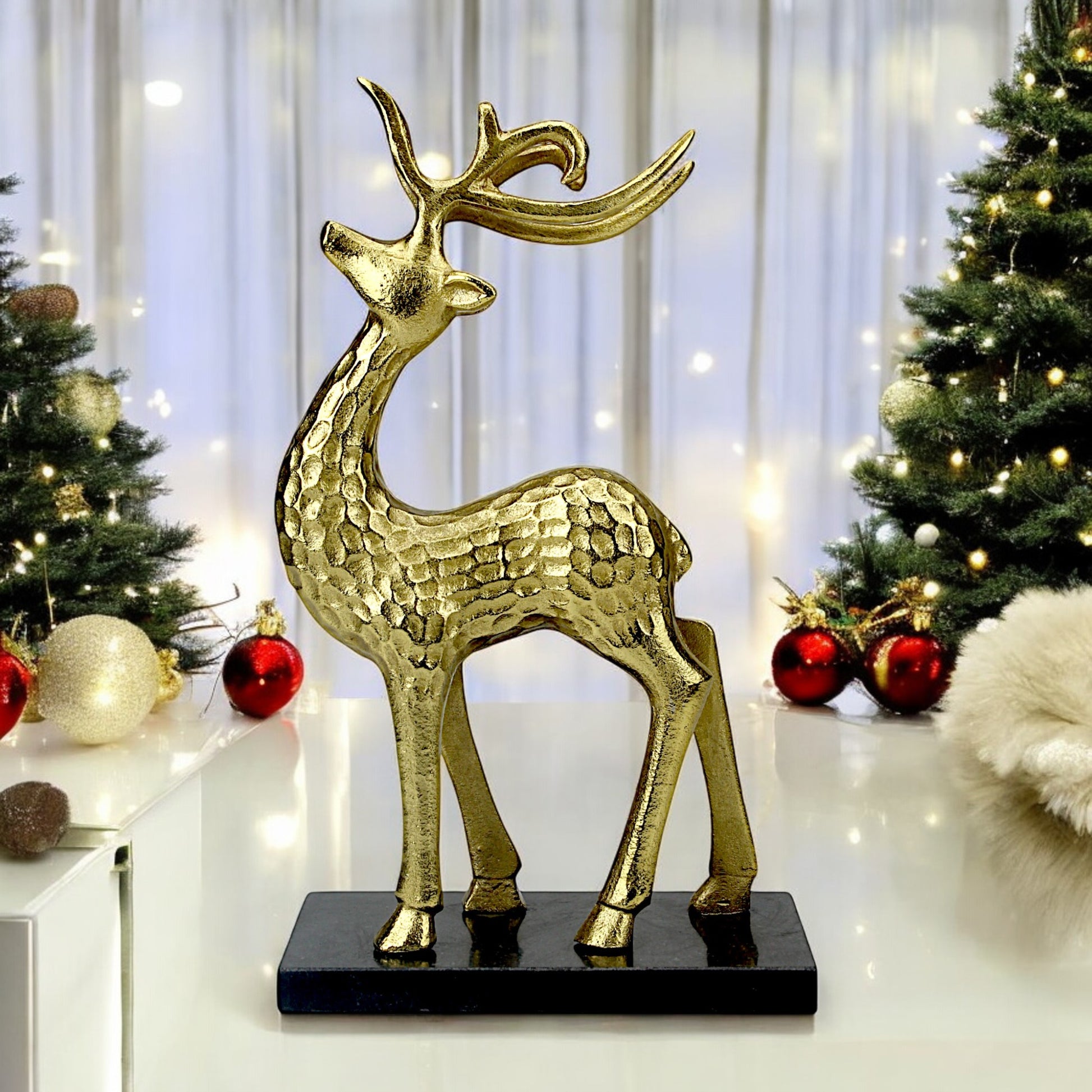 Golden Aluminum Christmas Decorative Standing Deer on Black Base – Elegant Holiday Decor | Hind Decor