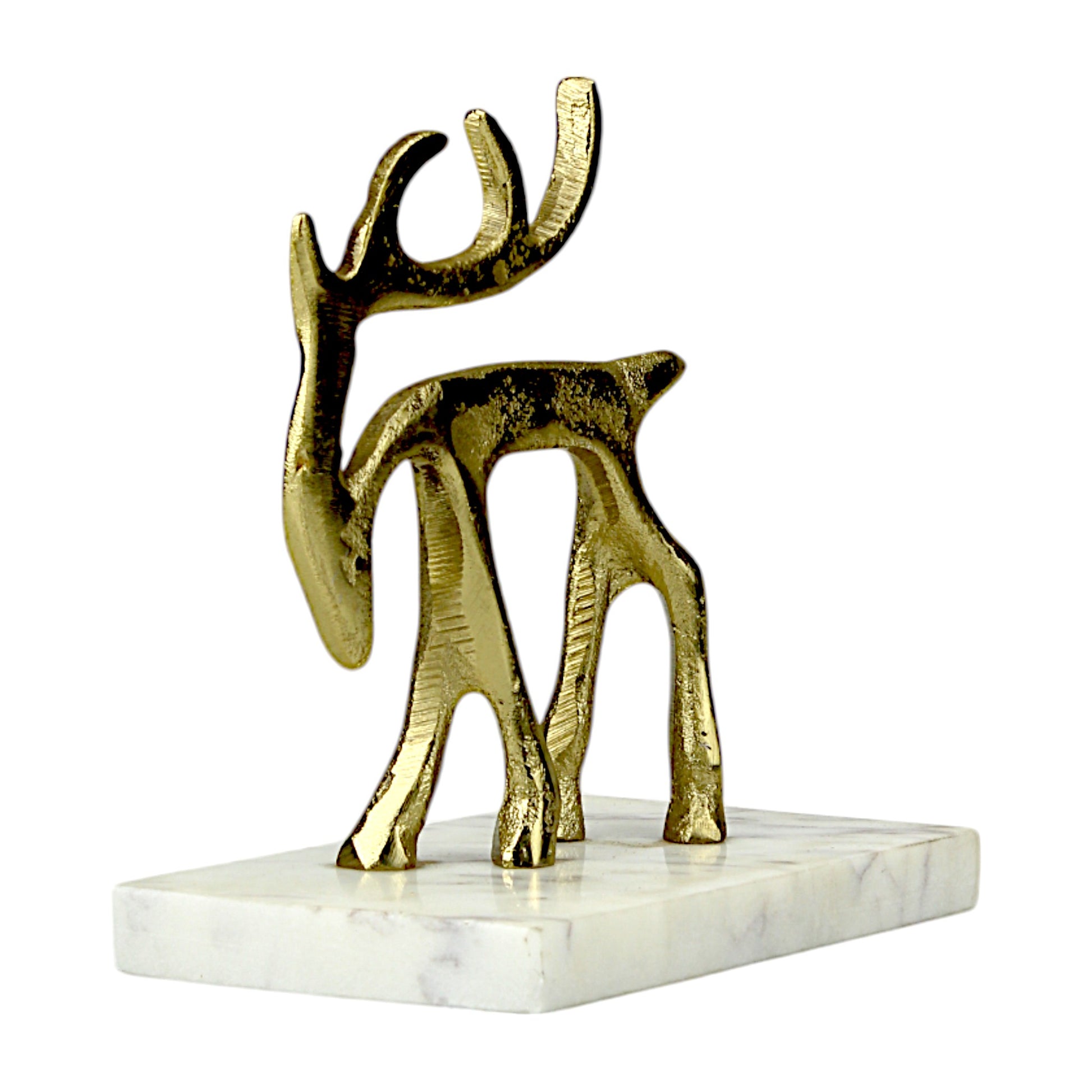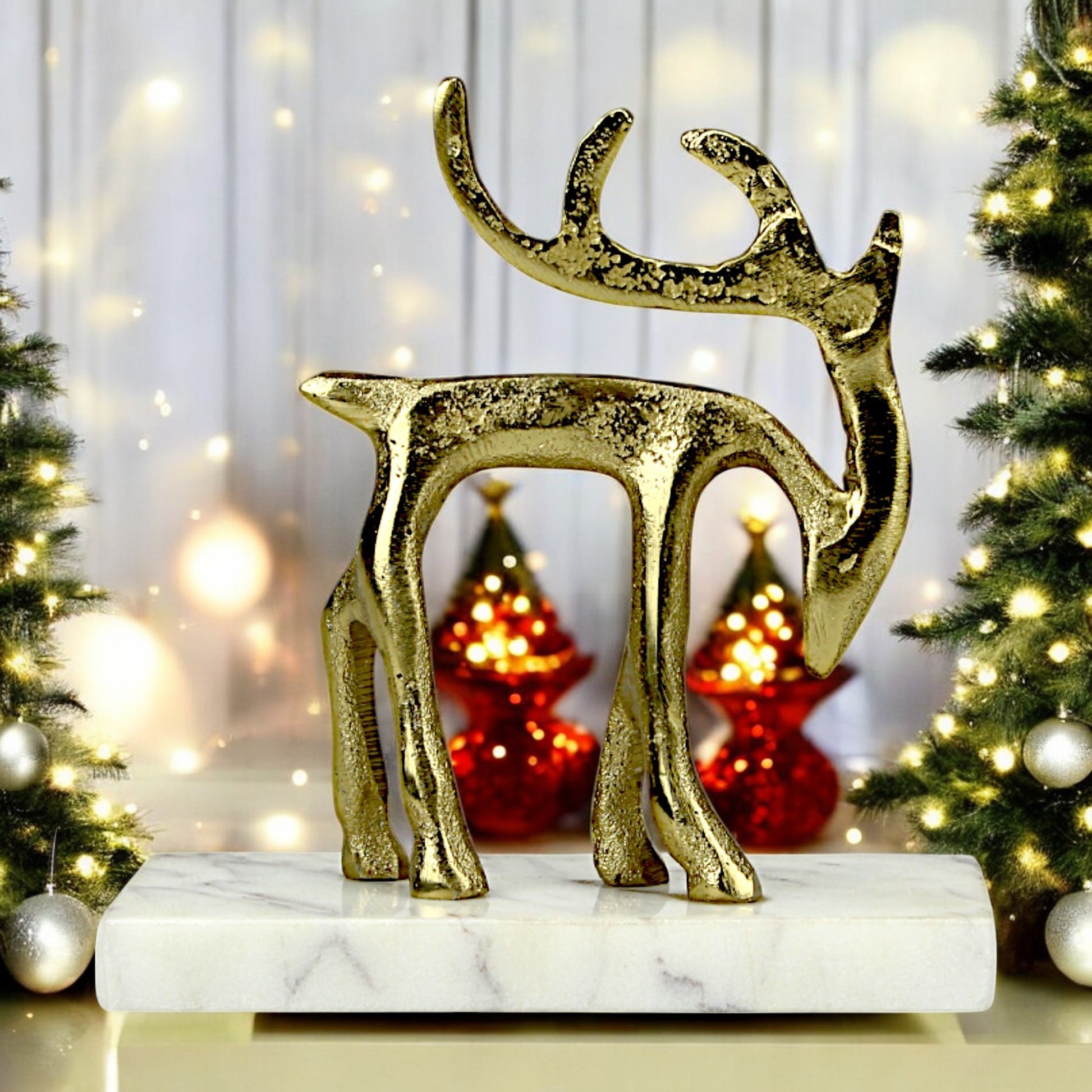 Golden Aluminum Christmas Decorative minimalitic Standing rain Deer on marvel base