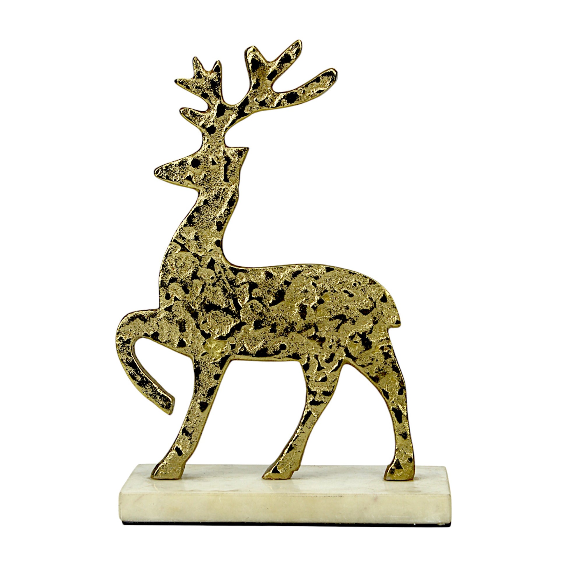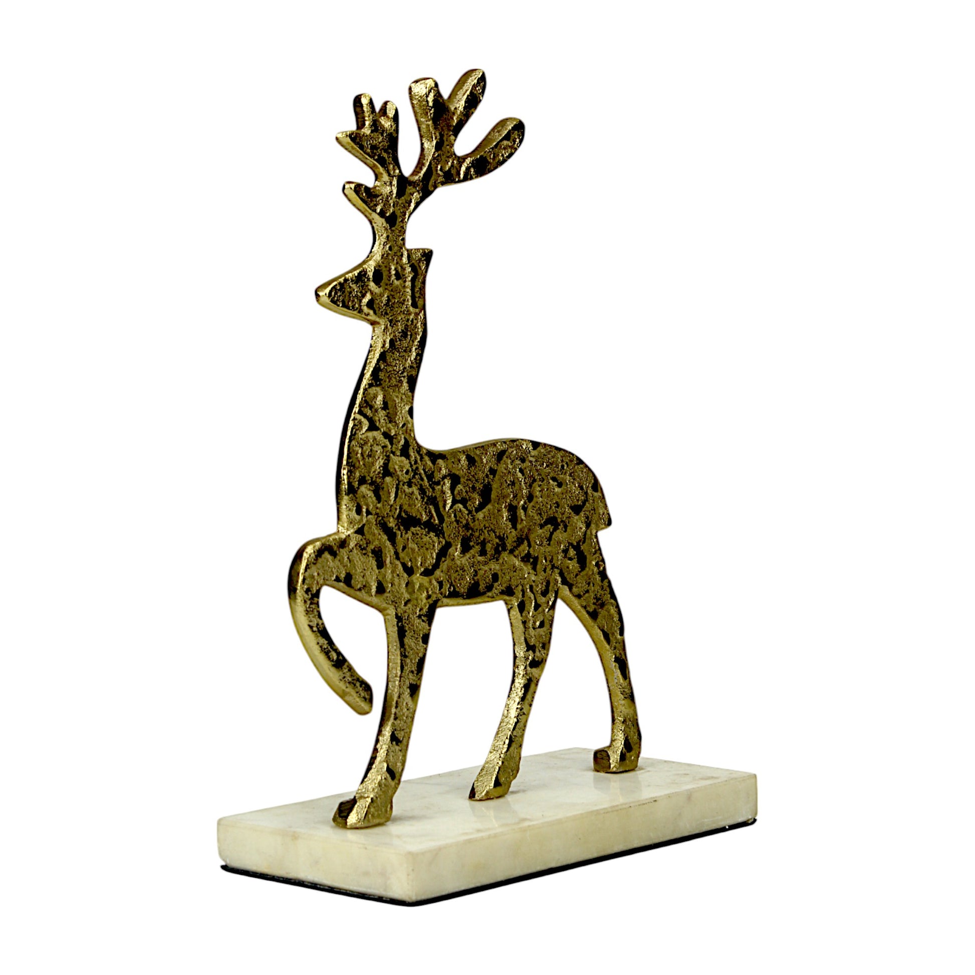 Golden Aluminum Christmas Decorative minimalitic Standing rain Deer on marvel base