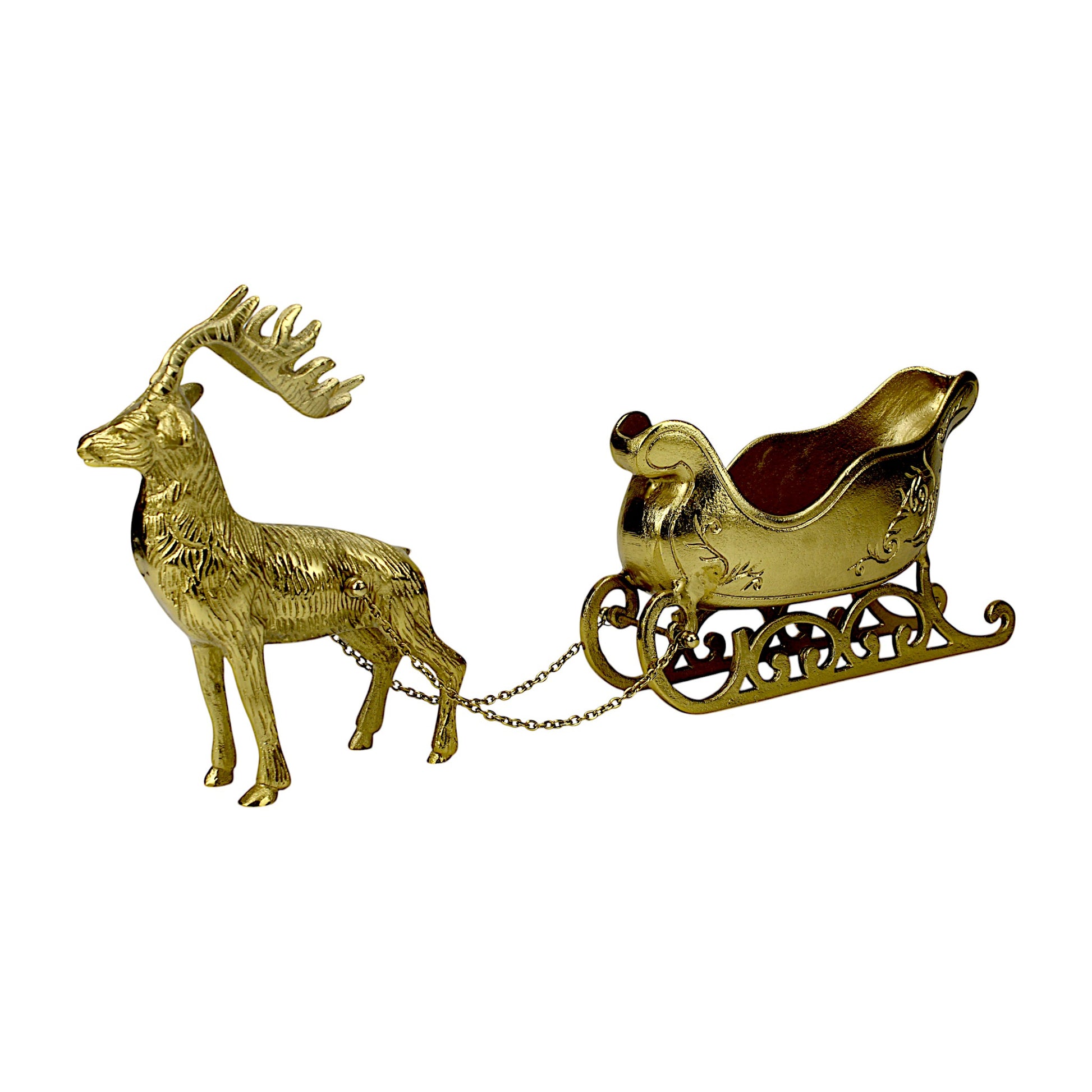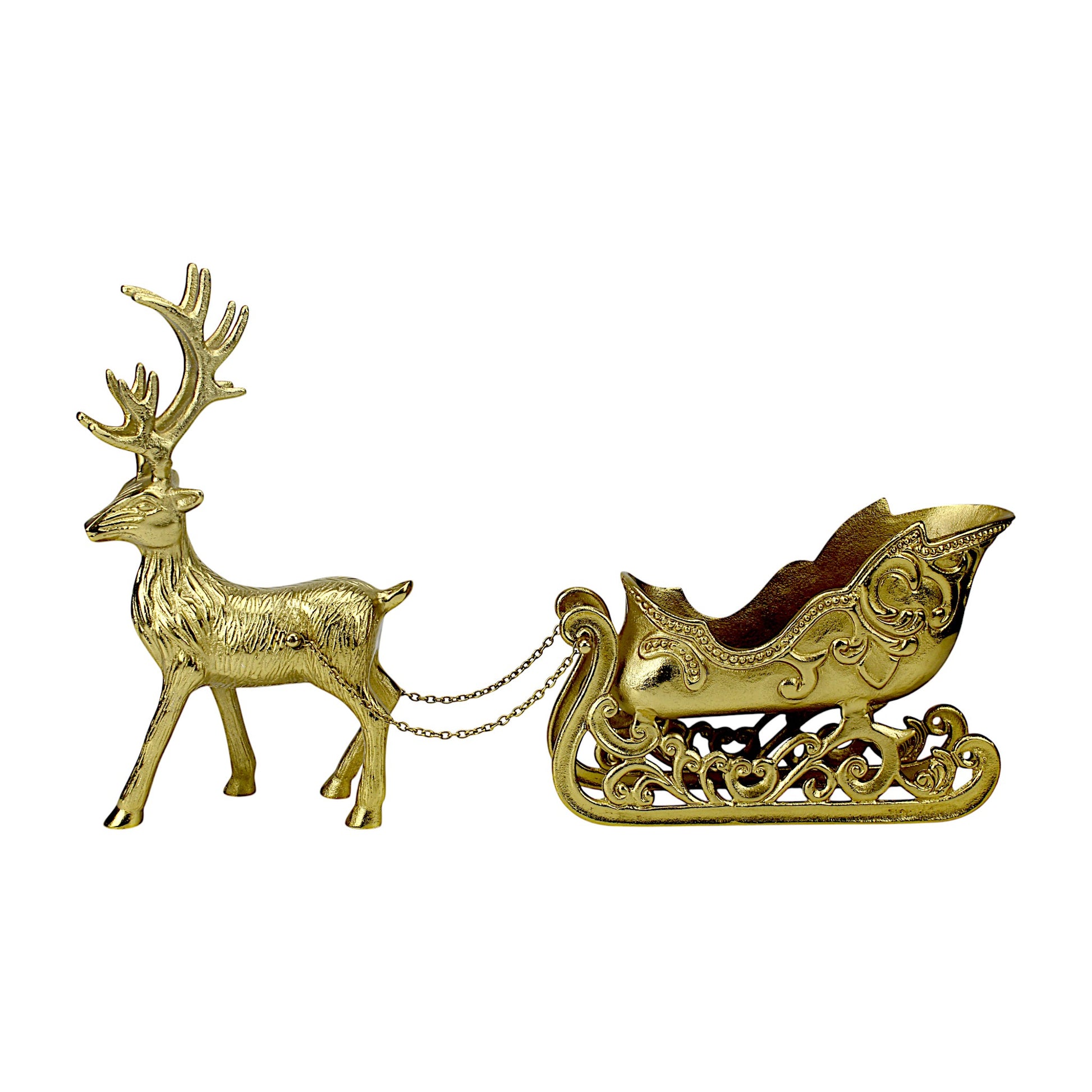 Golden Aluminum Handcrafted Christmas Reindeer with Buggy – Elegant Holiday Decor | Hind Decor