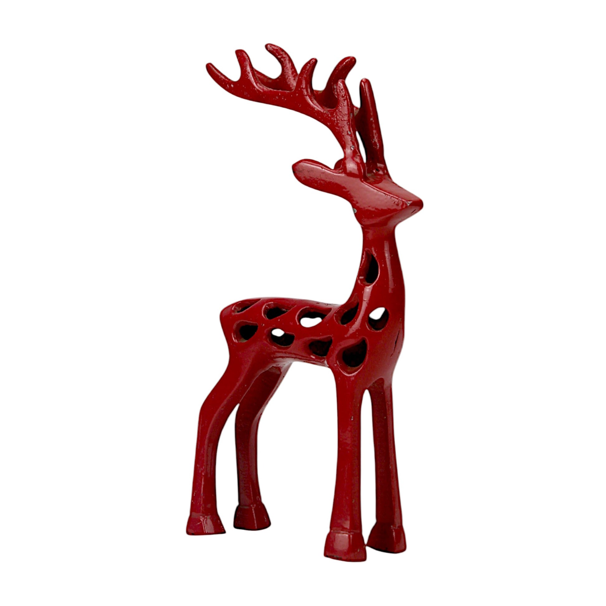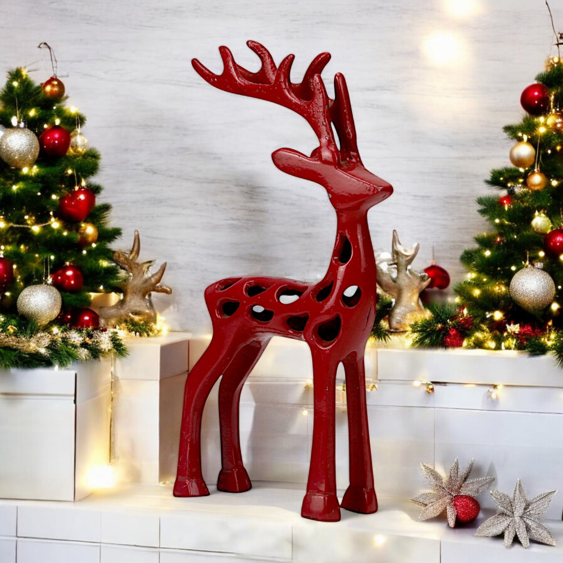 Red Aluminum Handcrafted Reindeer – Elegant Christmas Decor | Hind Decor