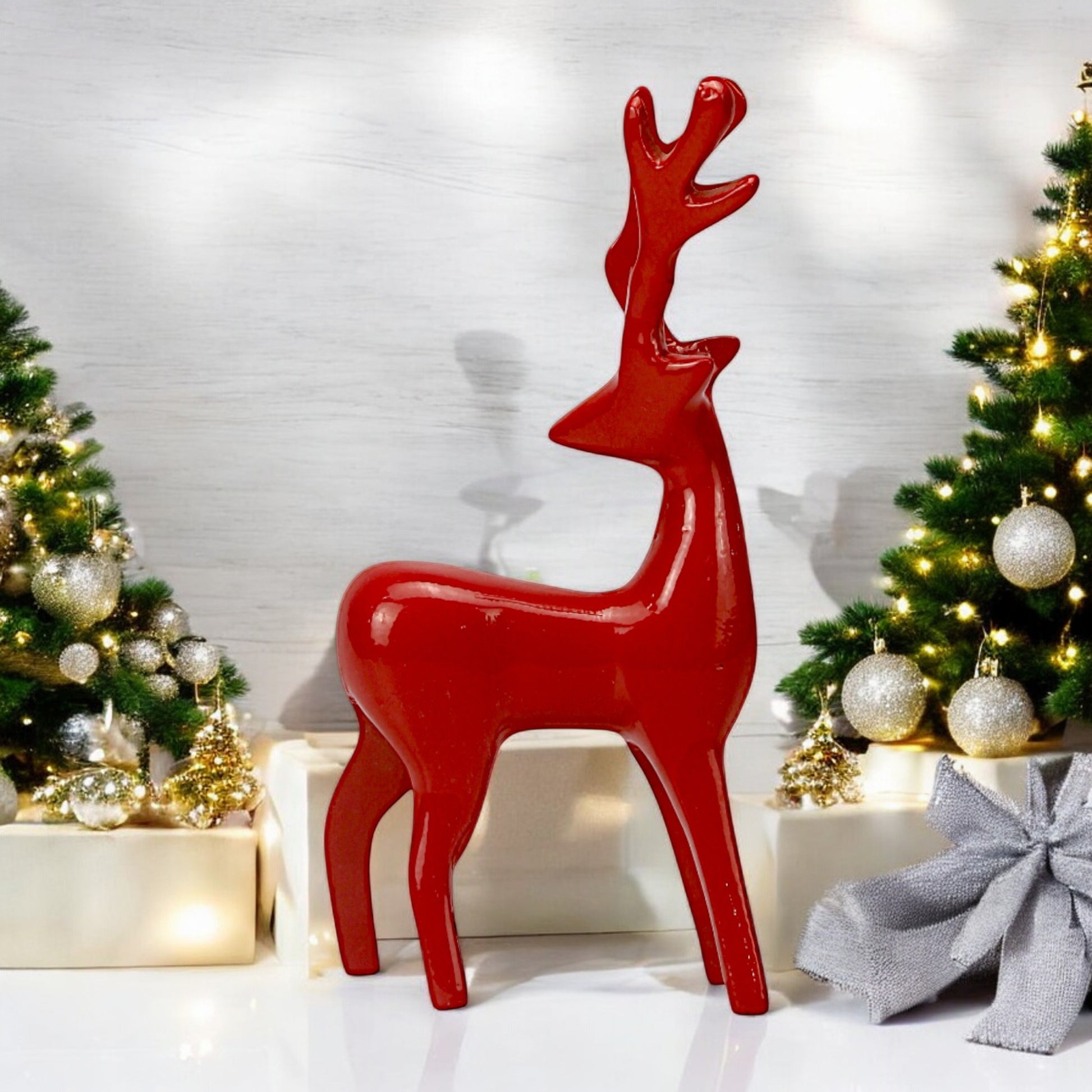 Red Aluminum Handcrafted Reindeer – Elegant Christmas Decor | Hind Decor